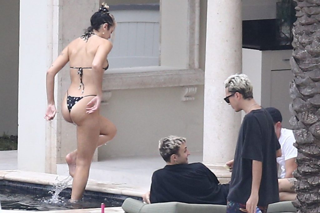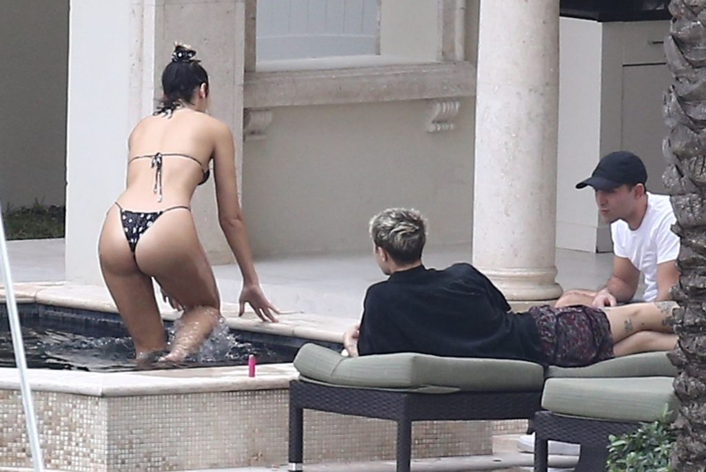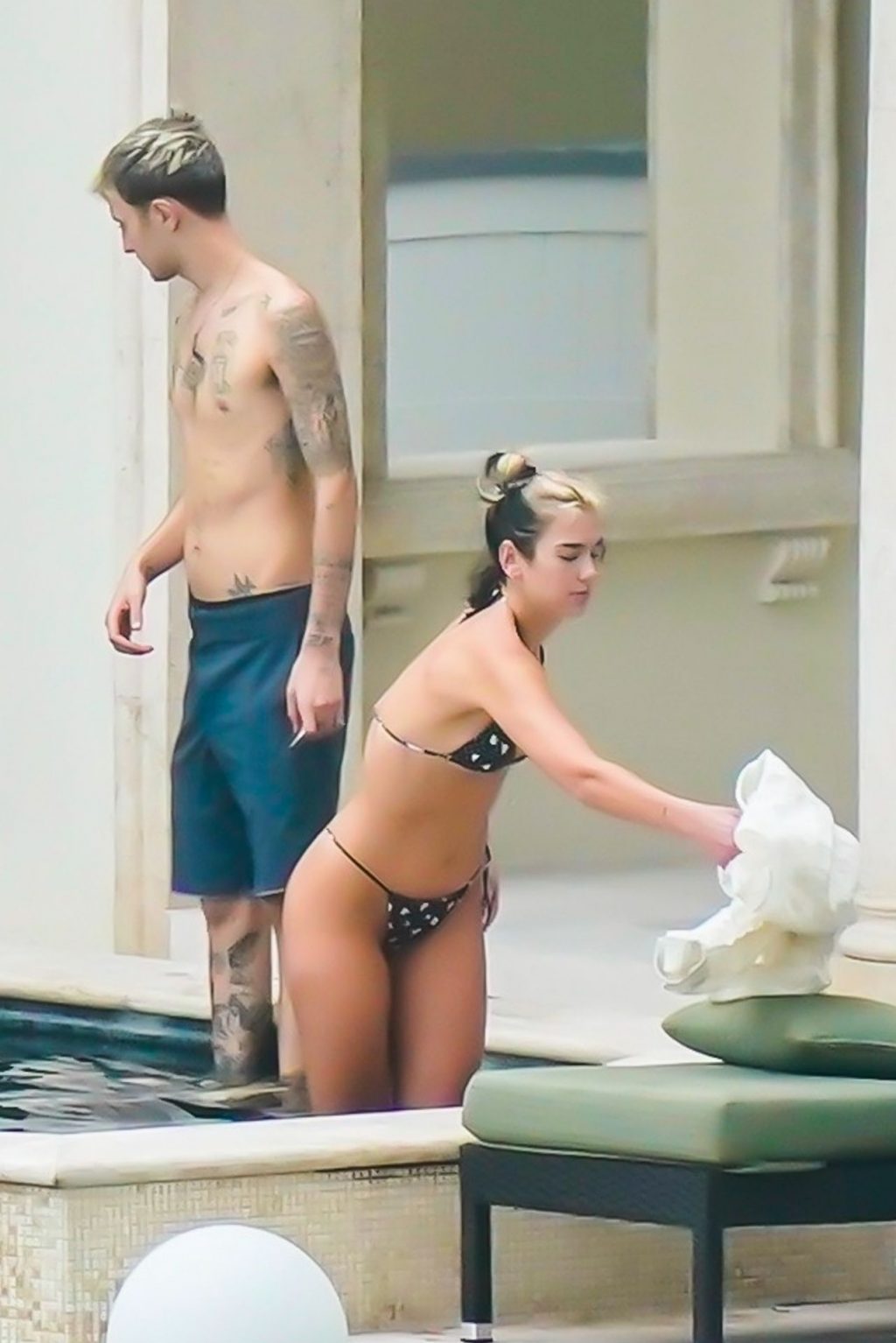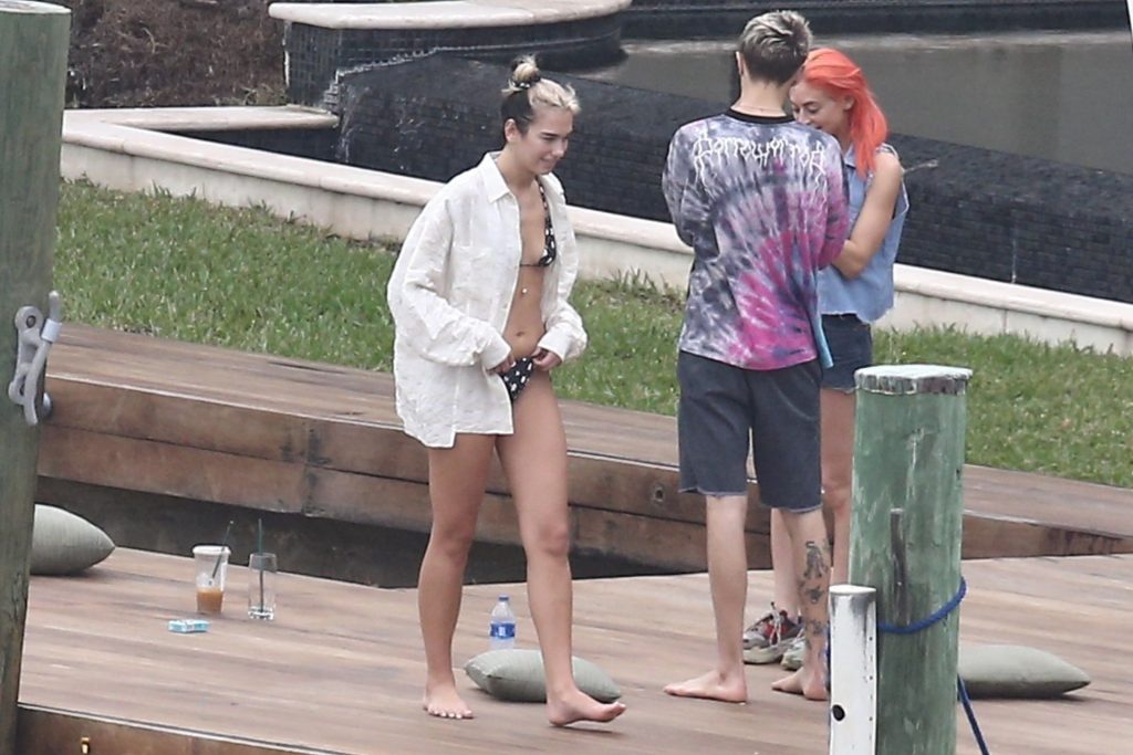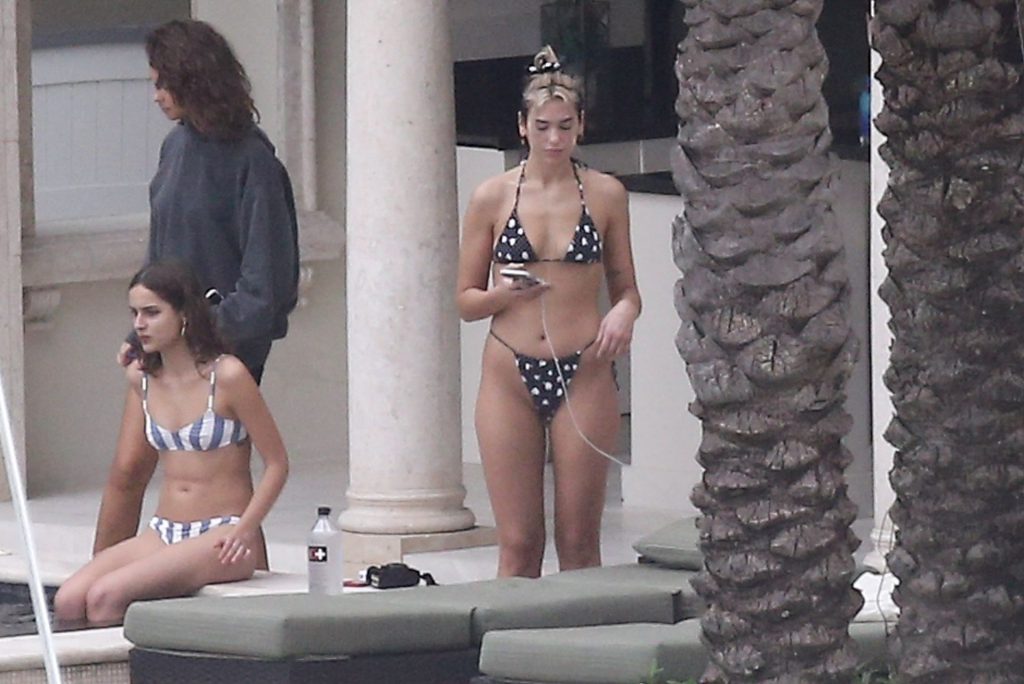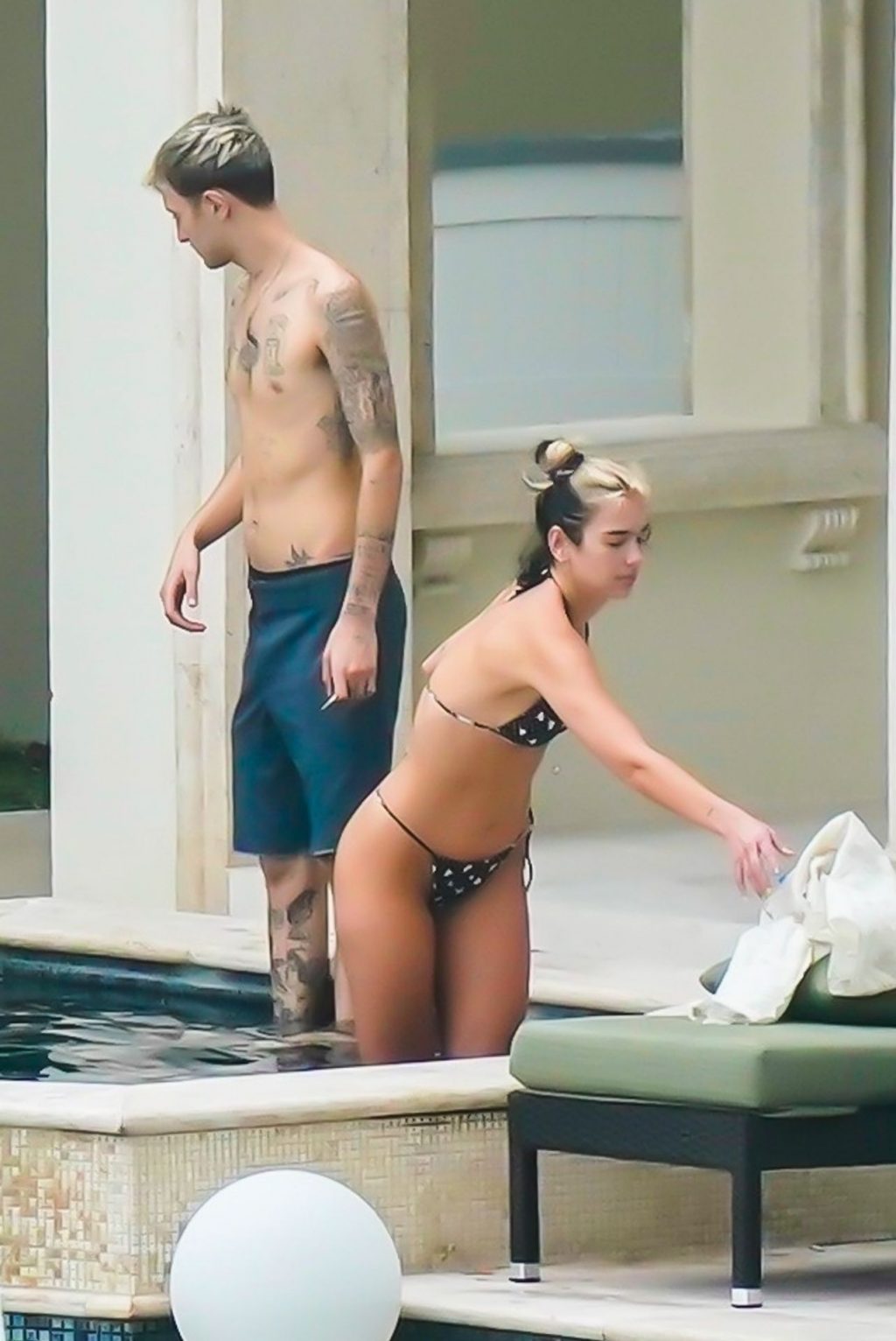 Dua Lipa besa a su novio Anwar Hadid en la piscina en Miami, 30/12/2019. La pareja se ve muy feliz mientras muestran su amor junto a la piscina mientras pasan el rato con amigos.
