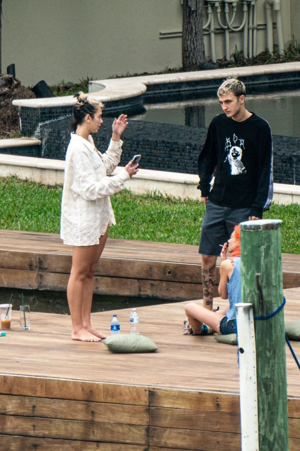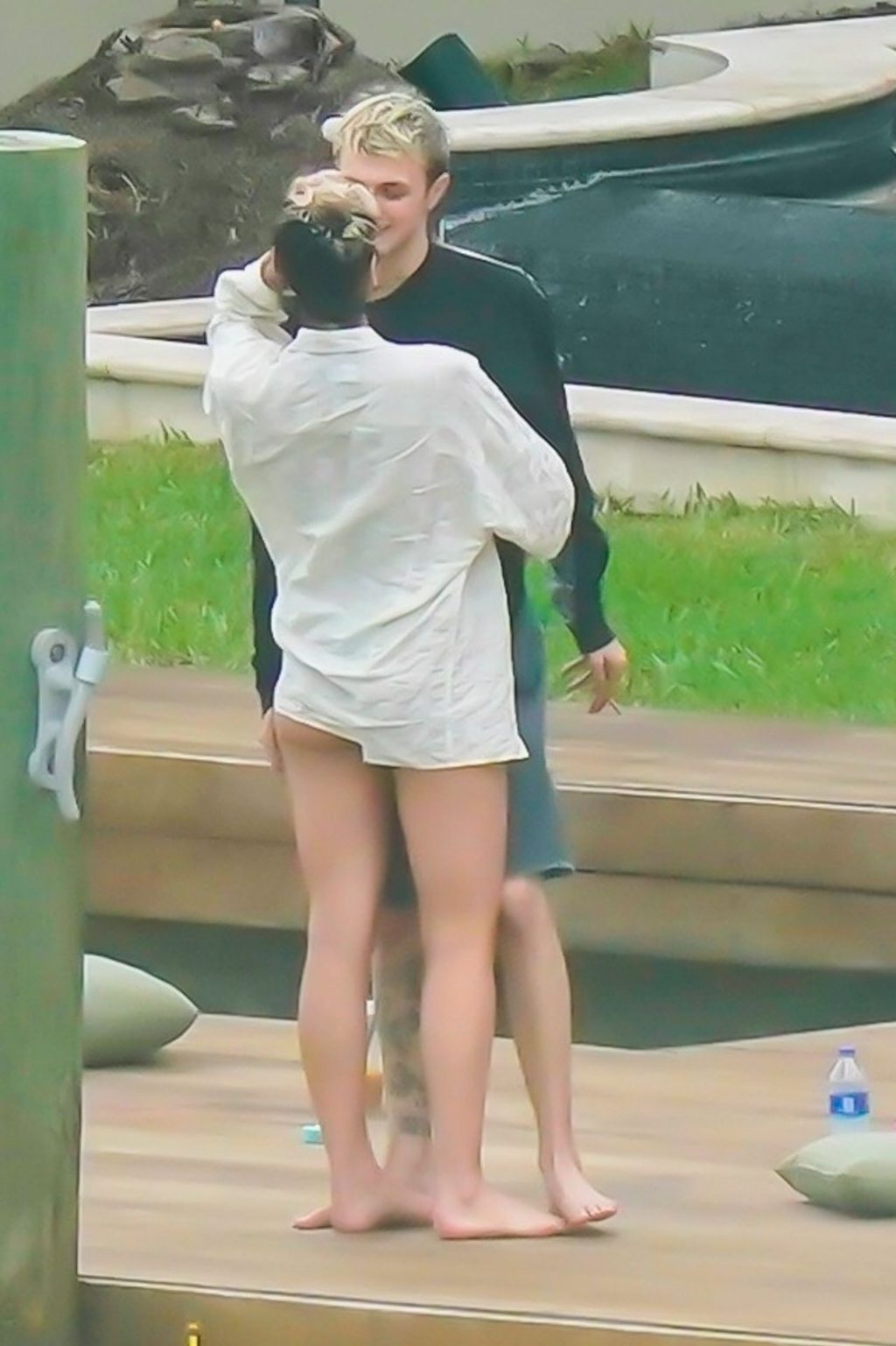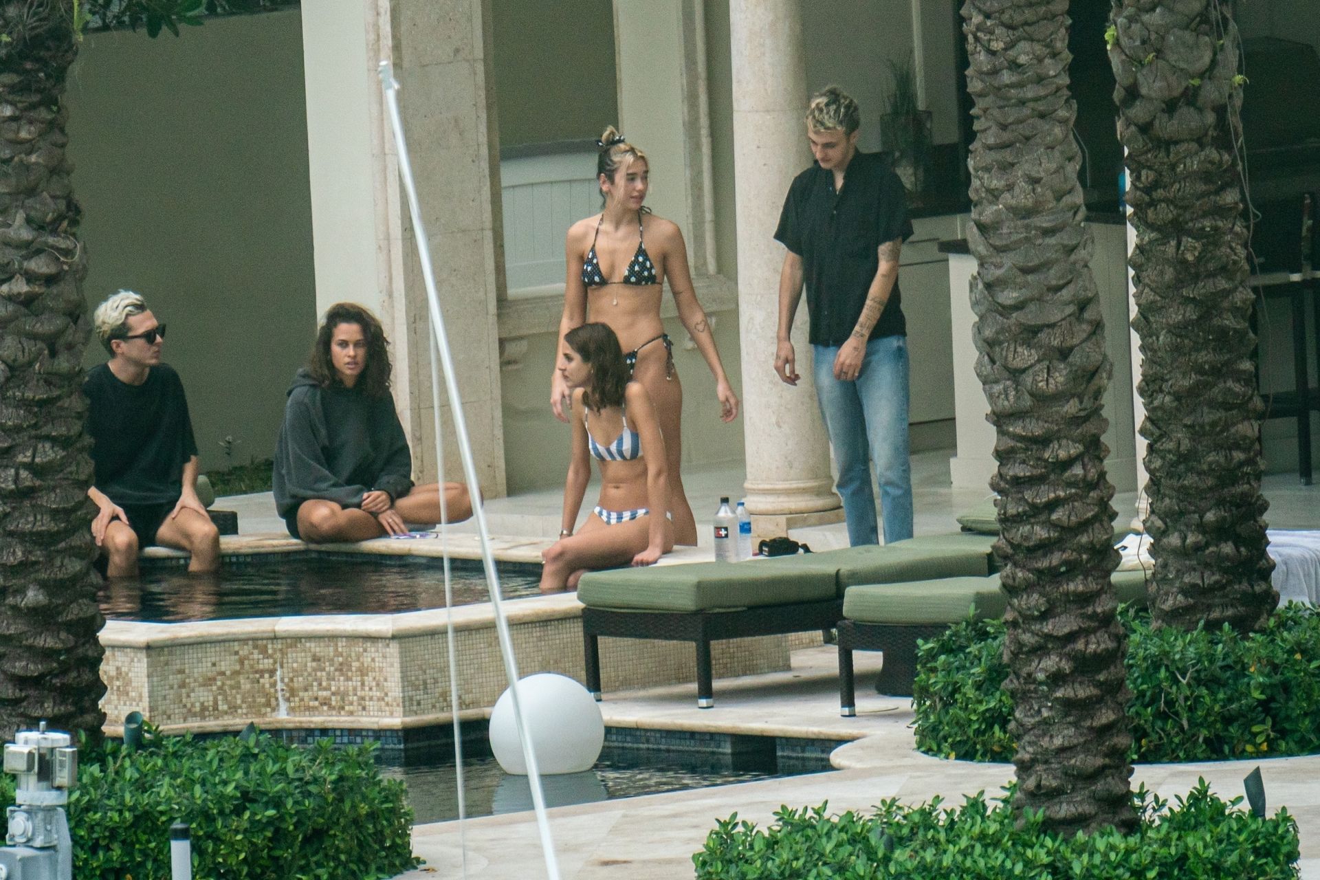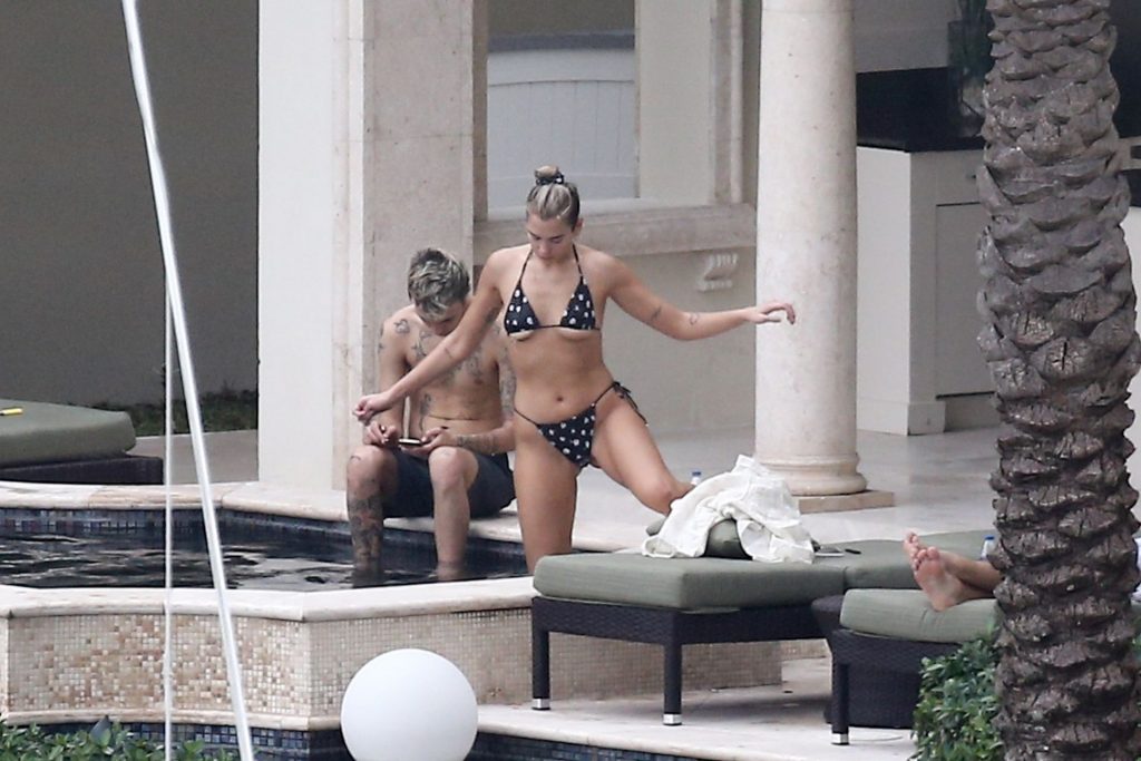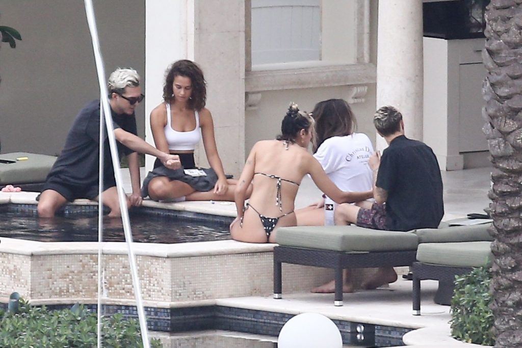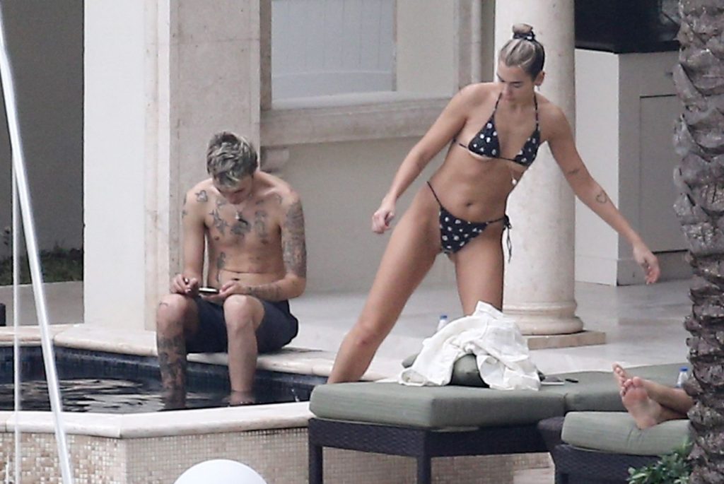 Dua Lipa besa a su novio Anwar Hadid en la piscina en Miami, 30/12/2019. La pareja se ve muy feliz mientras muestran su amor junto a la piscina mientras pasan el rato con amigos.