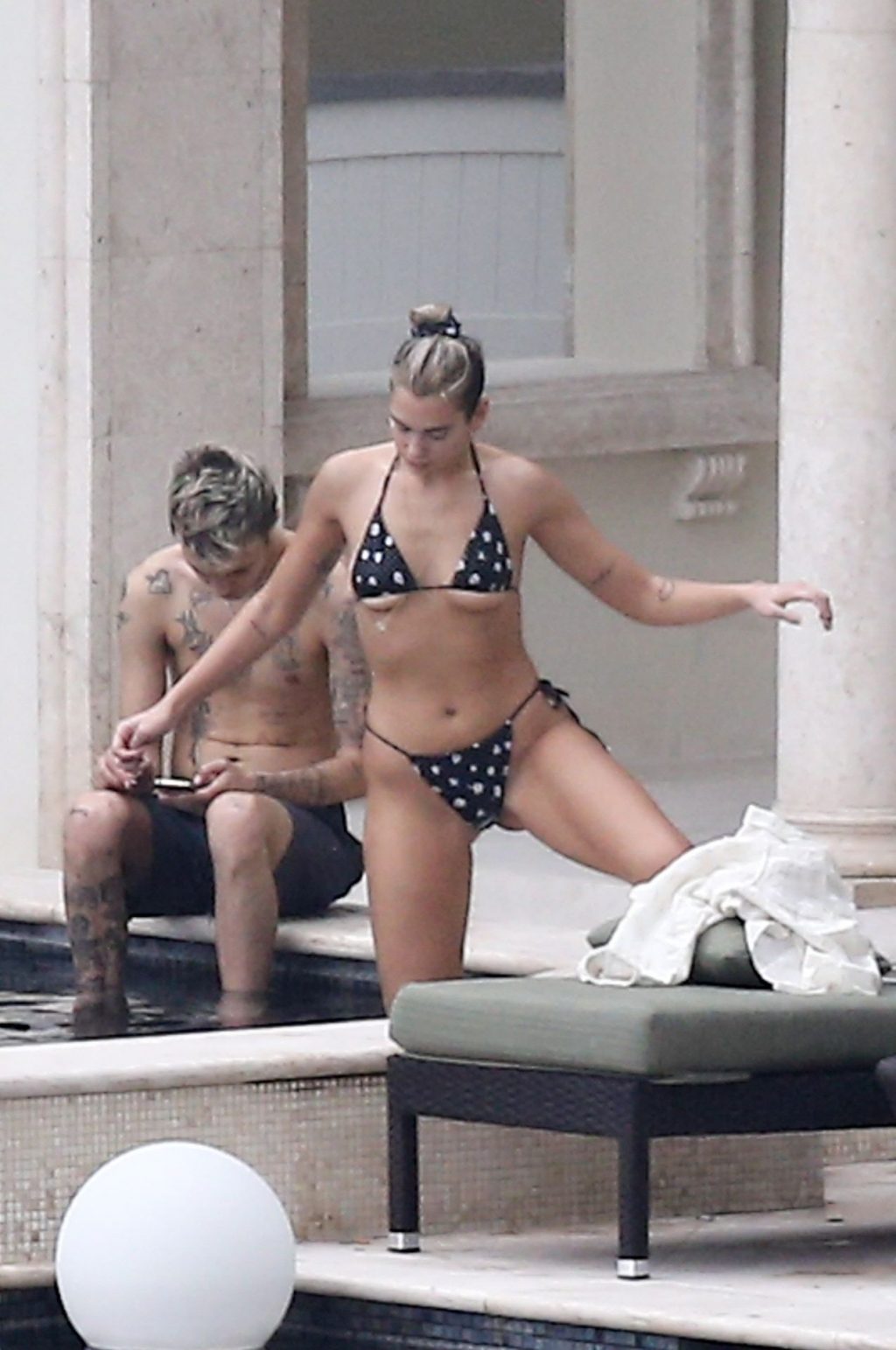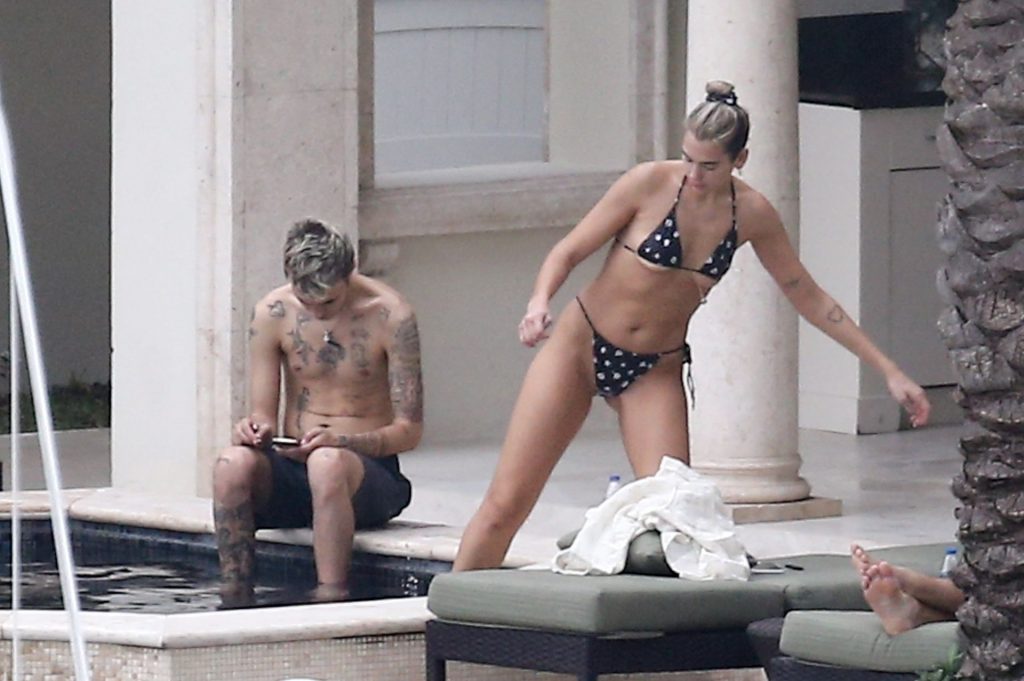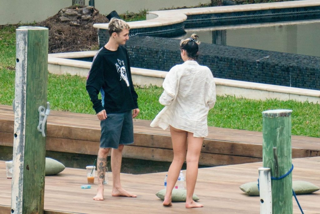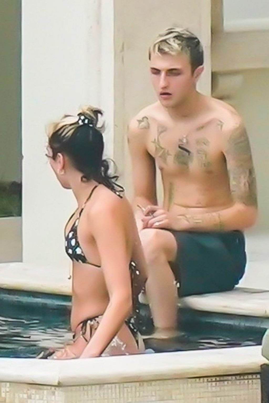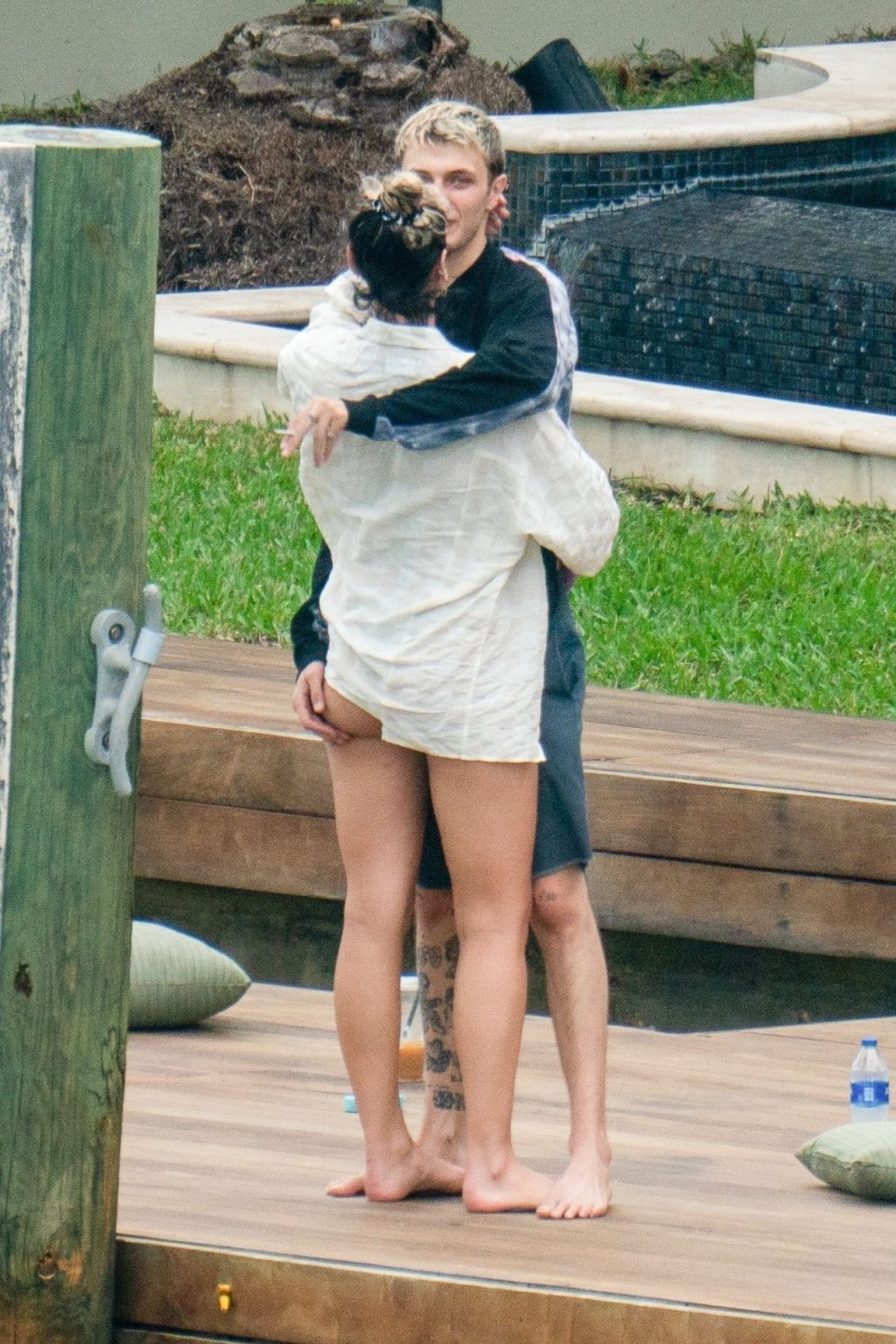 Dua Lipa besa a su novio Anwar Hadid en la piscina en Miami, 30/12/2019. La pareja se ve muy feliz mientras muestran su amor junto a la piscina mientras pasan el rato con amigos.