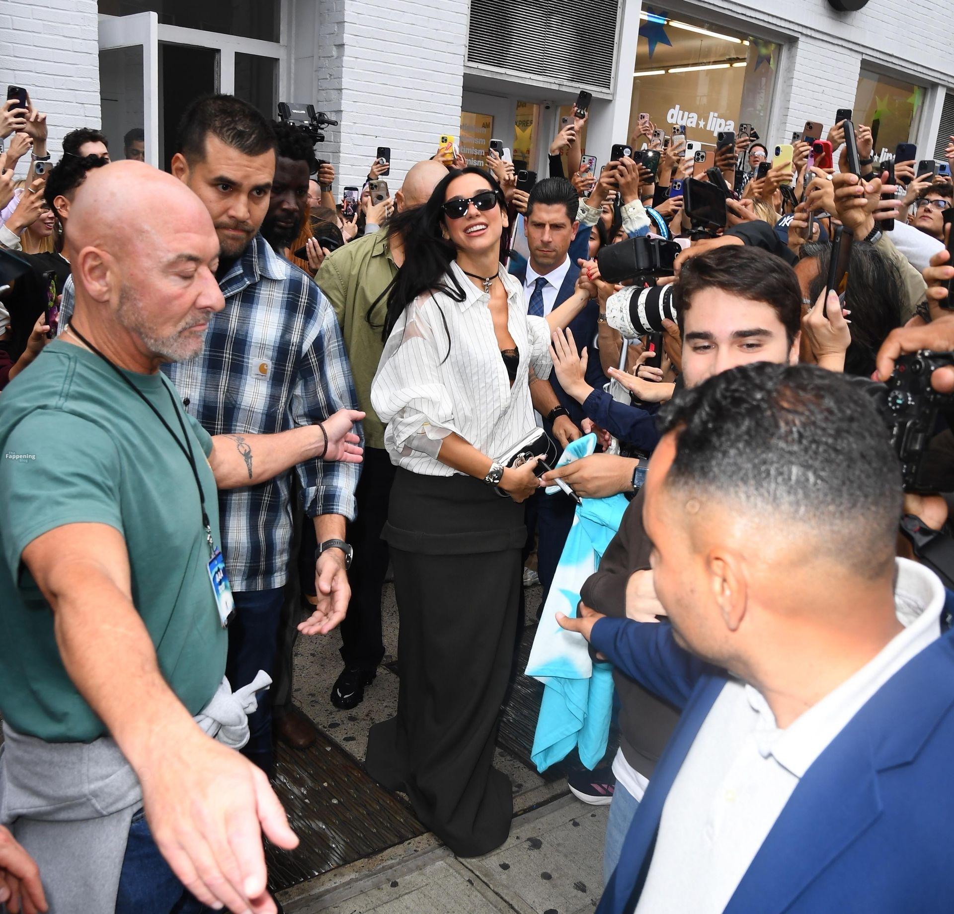 Nueva York, NY La cantante Dua Lipa sonríe mientras llega a su tienda pop-up “Optimismo Radical” en Manhattan.