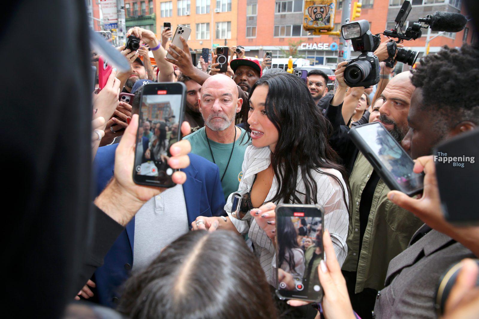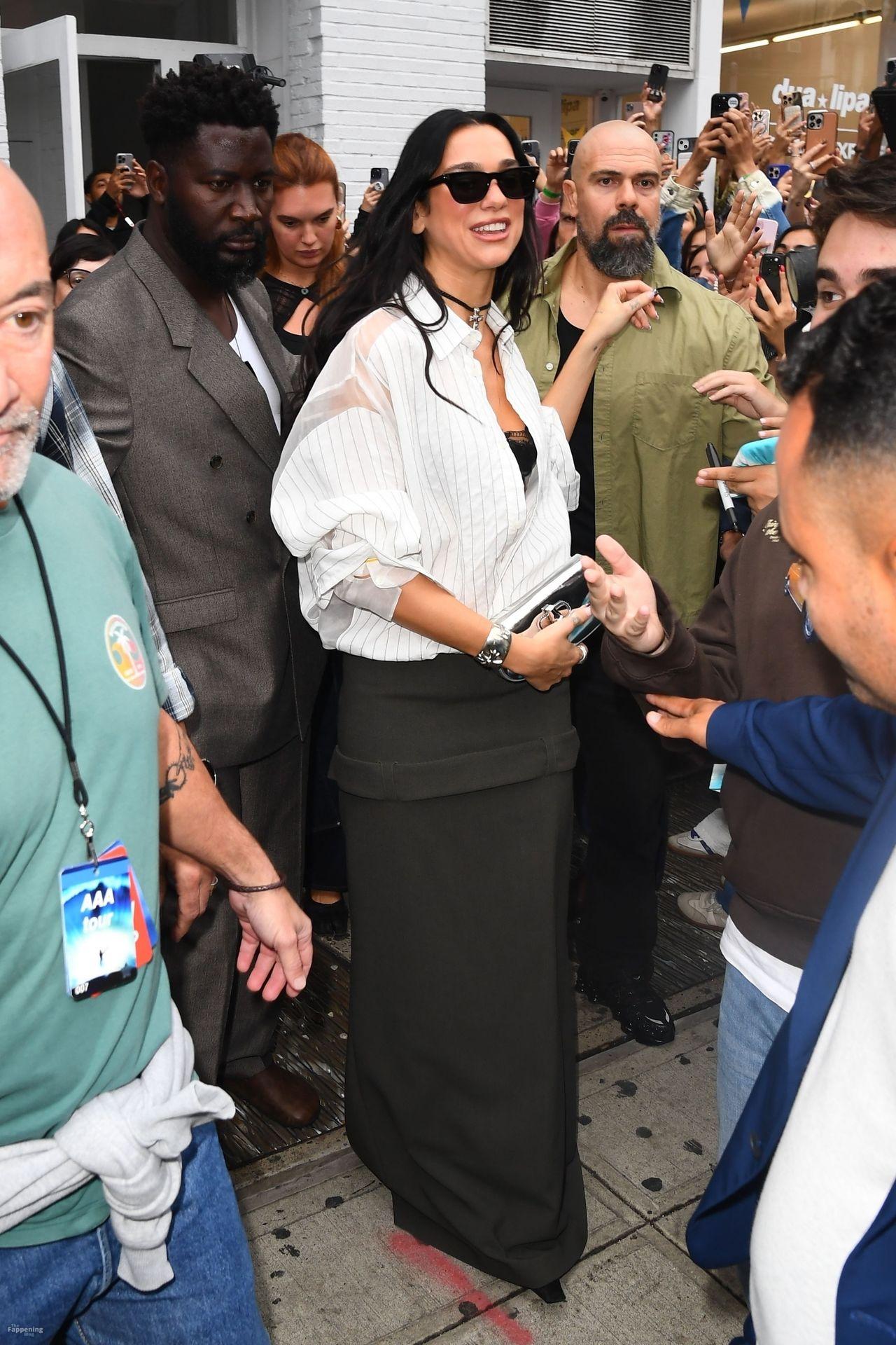 Bra sin, escote a la vista: el atrevido look pop-up de Dua Lipa en NYC dejó a los fans sin palabras y a las cámaras destellando