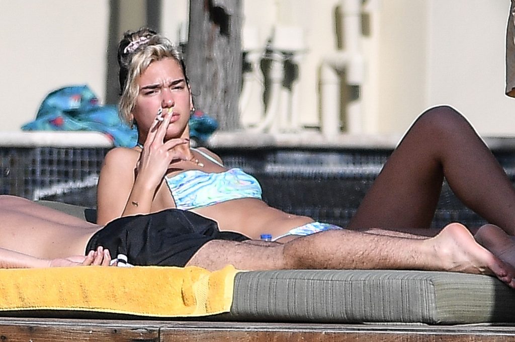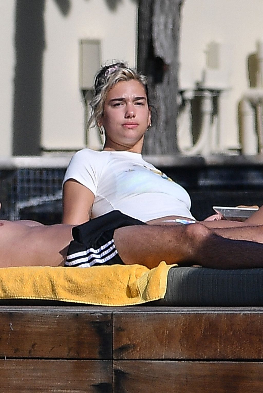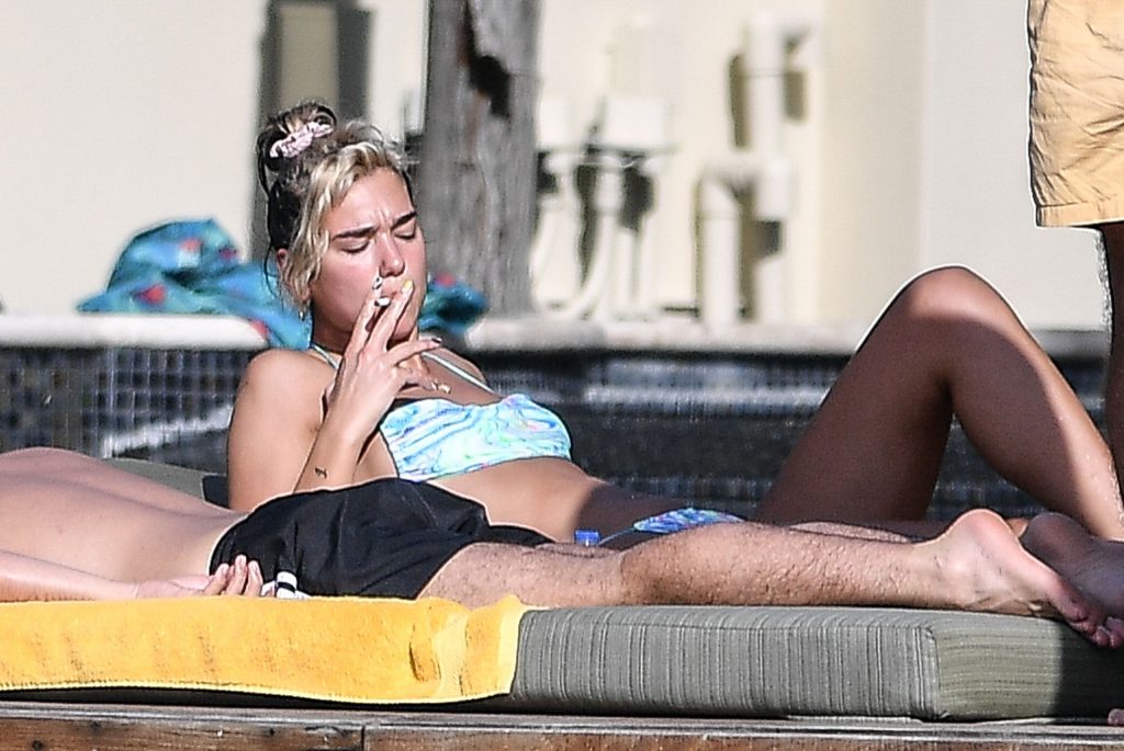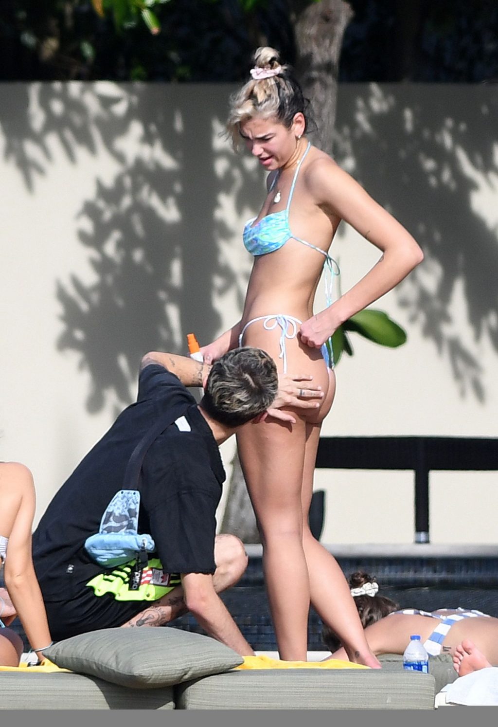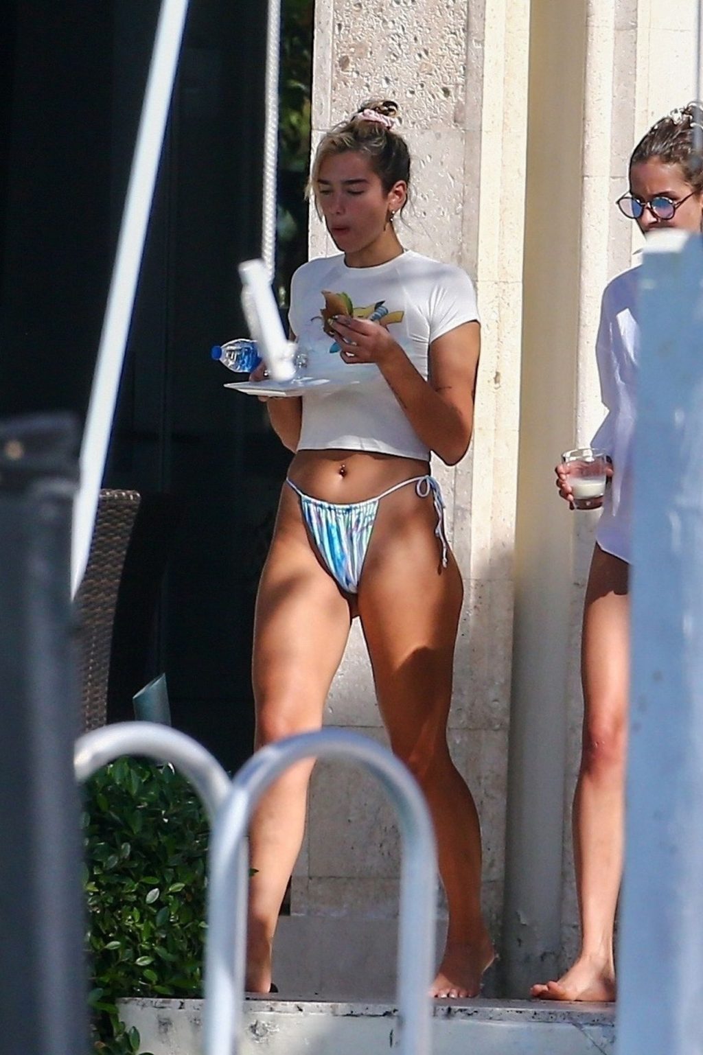 Dua Lipa lleva un bikini diminuto mientras toma el sol con su novio Anwar Hadid en Miami, 01/04/2020. La pareja parece muy enamorada ya que no pueden mantener las manos alejadas el uno del otro mientras se relajan con amigos.