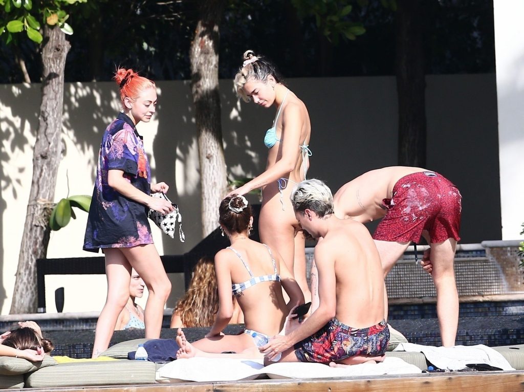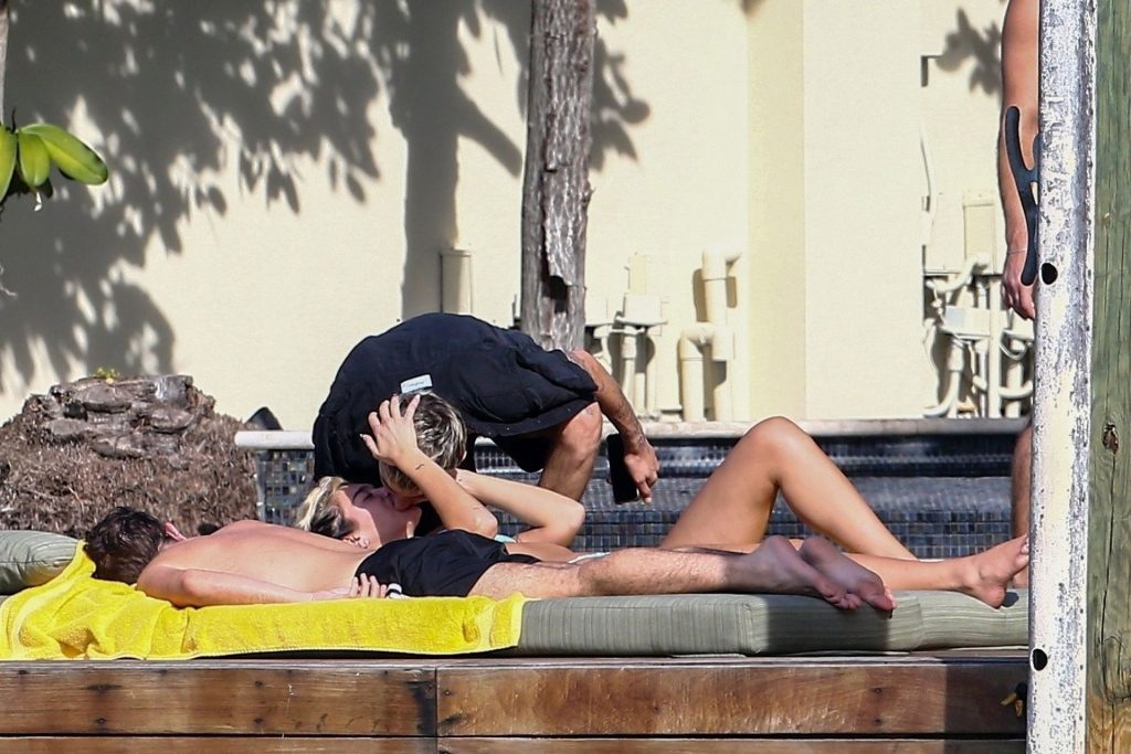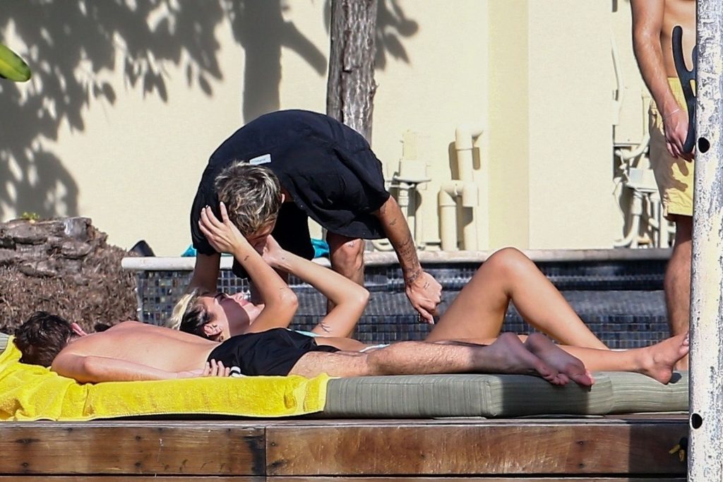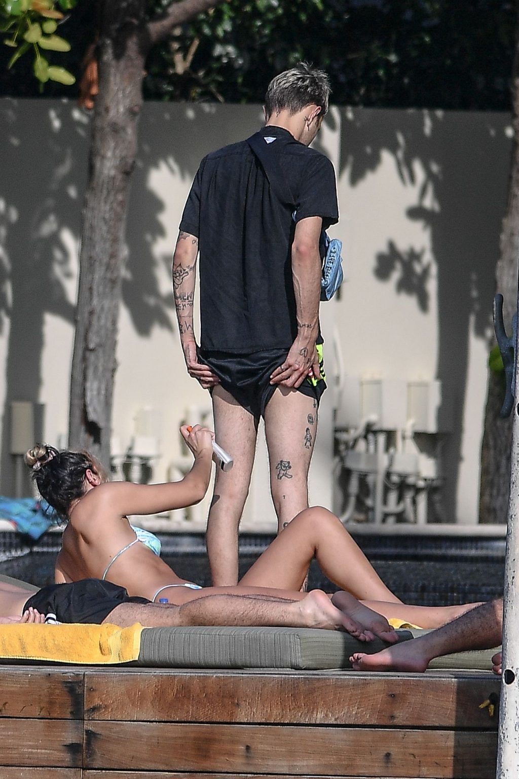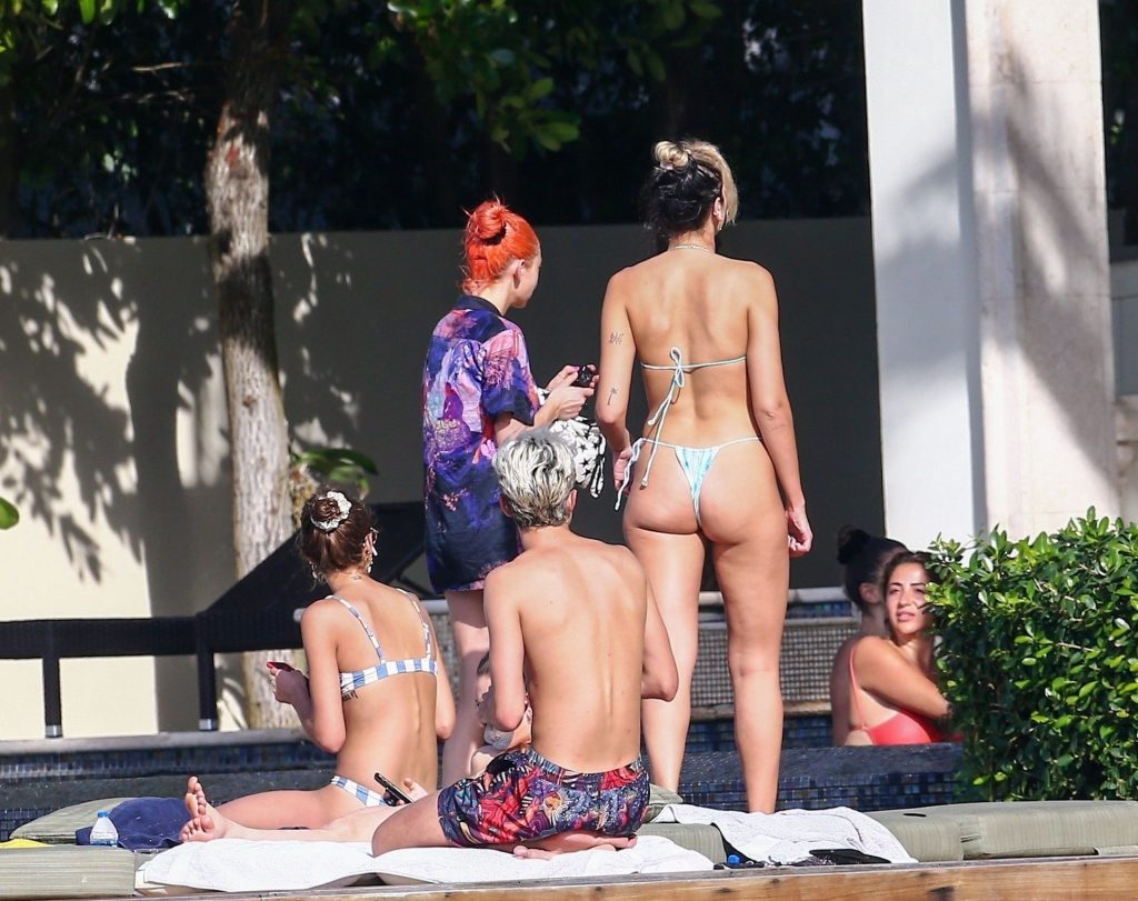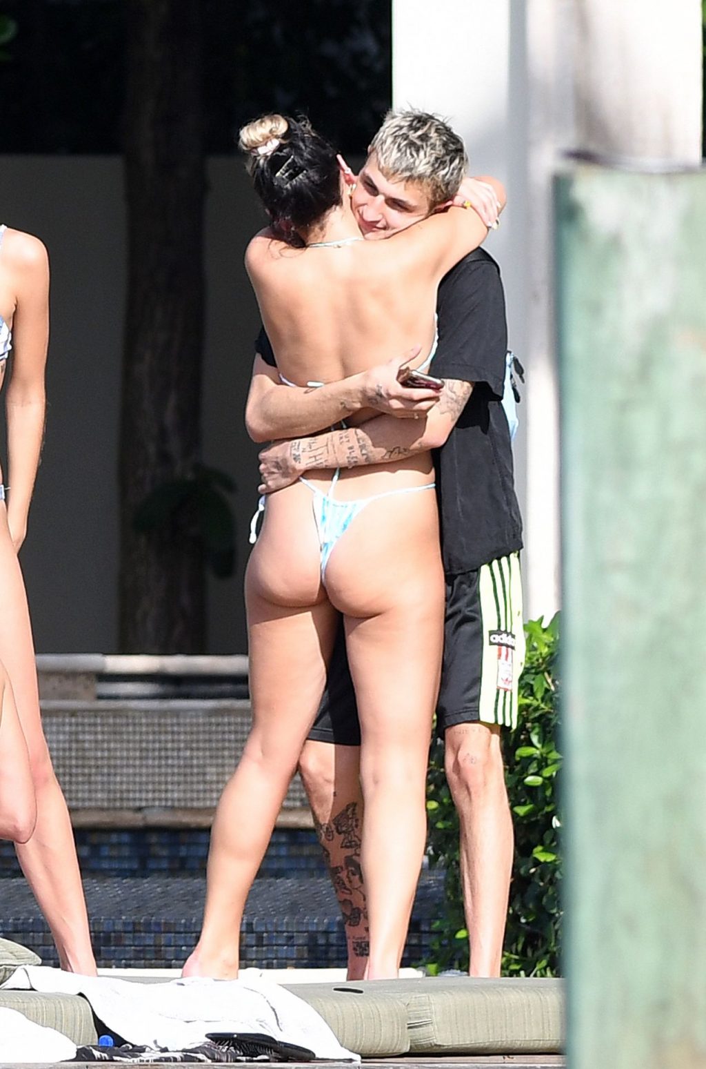 Dua Lipa lleva un bikini diminuto mientras toma el sol con su novio Anwar Hadid en Miami, 01/04/2020. La pareja parece muy enamorada ya que no pueden mantener las manos alejadas el uno del otro mientras se relajan con amigos.