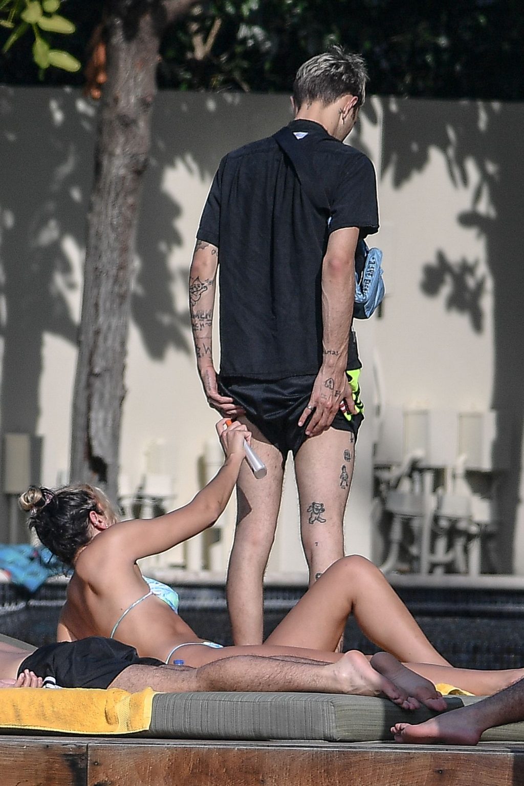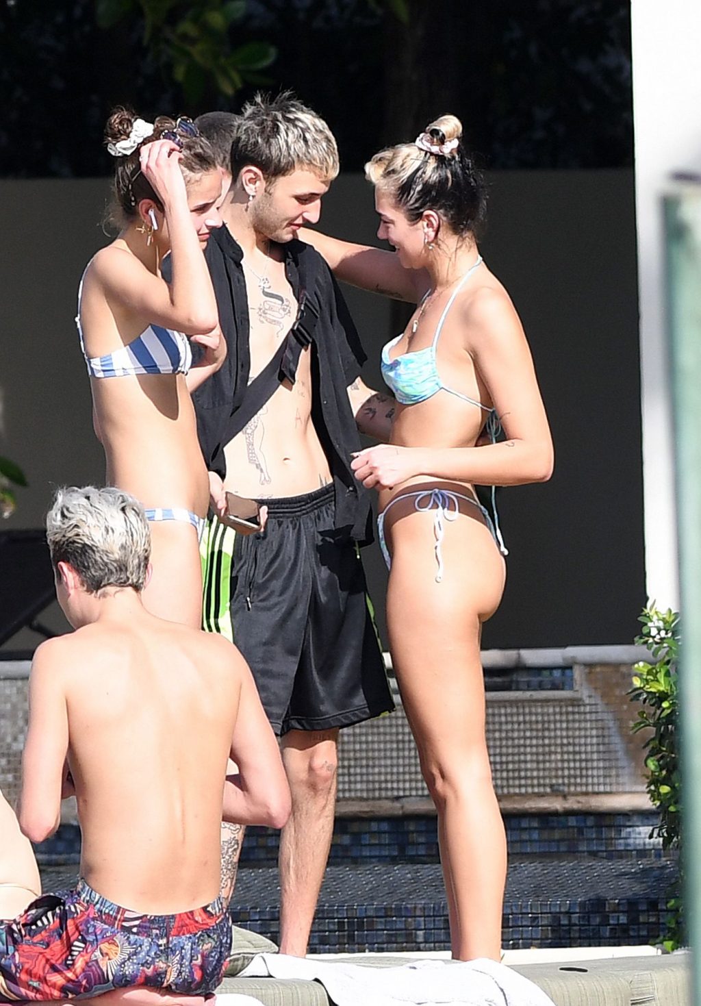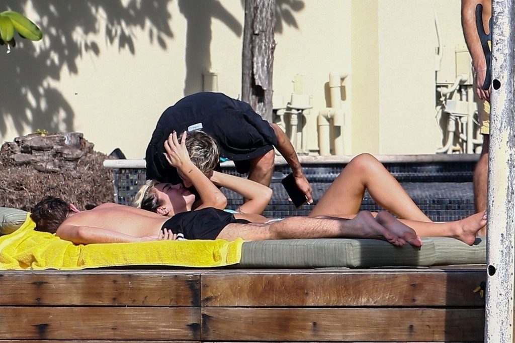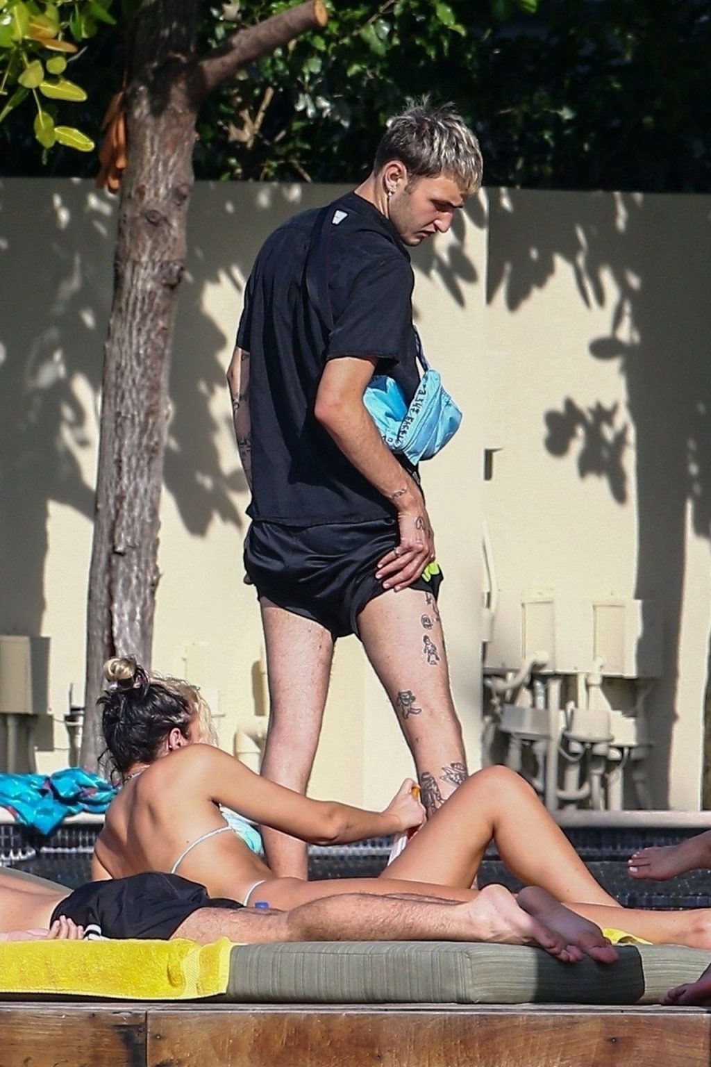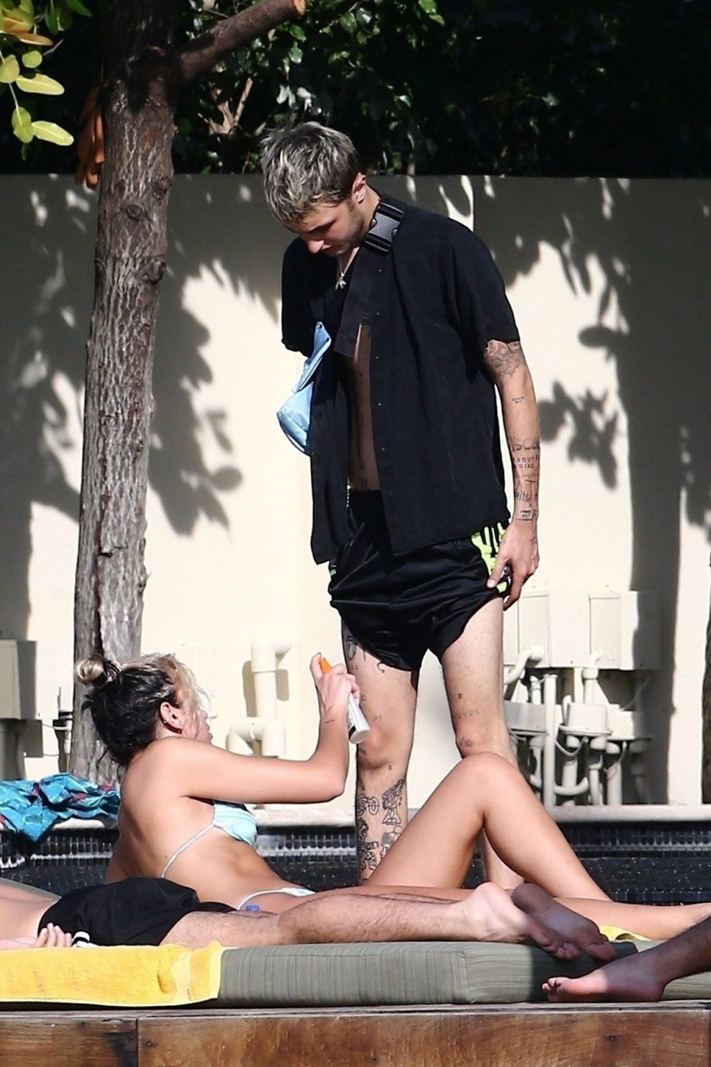 Dua Lipa lleva un bikini diminuto mientras toma el sol con su novio Anwar Hadid en Miami, 01/04/2020. La pareja parece muy enamorada ya que no pueden mantener las manos alejadas el uno del otro mientras se relajan con amigos.