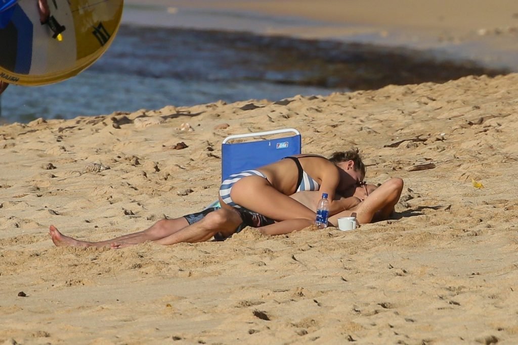 Dylan Penn y Hopper Penn disfrutaron de la playa en Hawái durante sus vacaciones familiares en Oahu, 03/01/2019. Dylan fue vista con un bikini de dos piezas y mostrando afecto con su novio mientras el grupo se relajaba junto a la orilla.