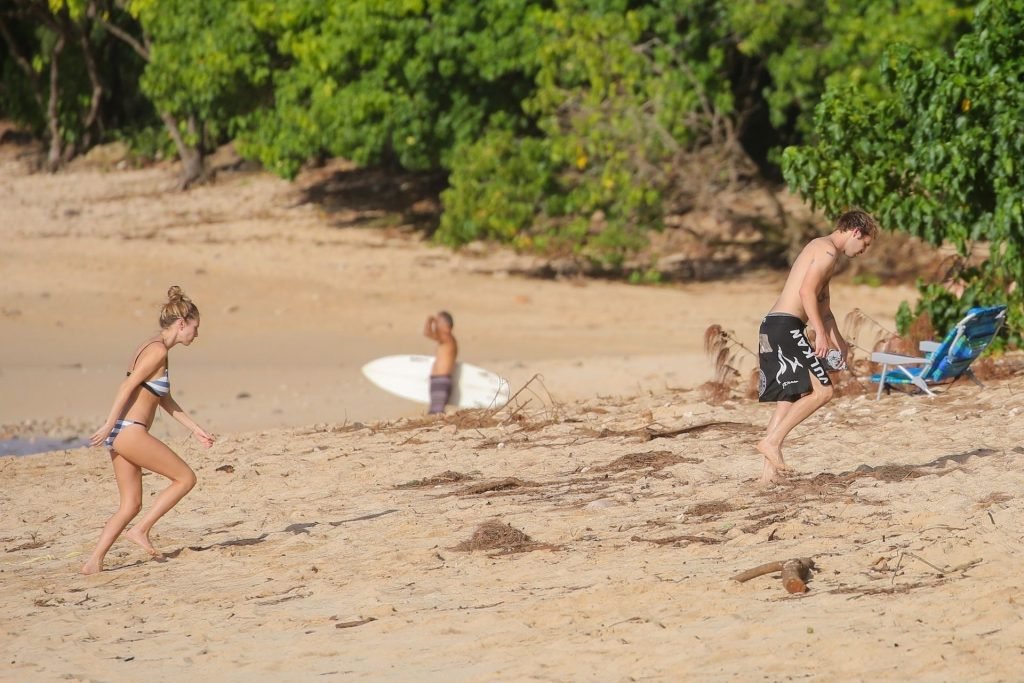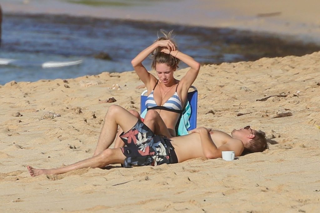 También se le vio jugando y limpiando detrás de un perro al que cuidaba. Hopper dio un paseo por la playa y se reunió con su hermana antes de dirigirse a la mansión frente al mar de su padre tras celebrar el Año Nuevo en el paraíso.
