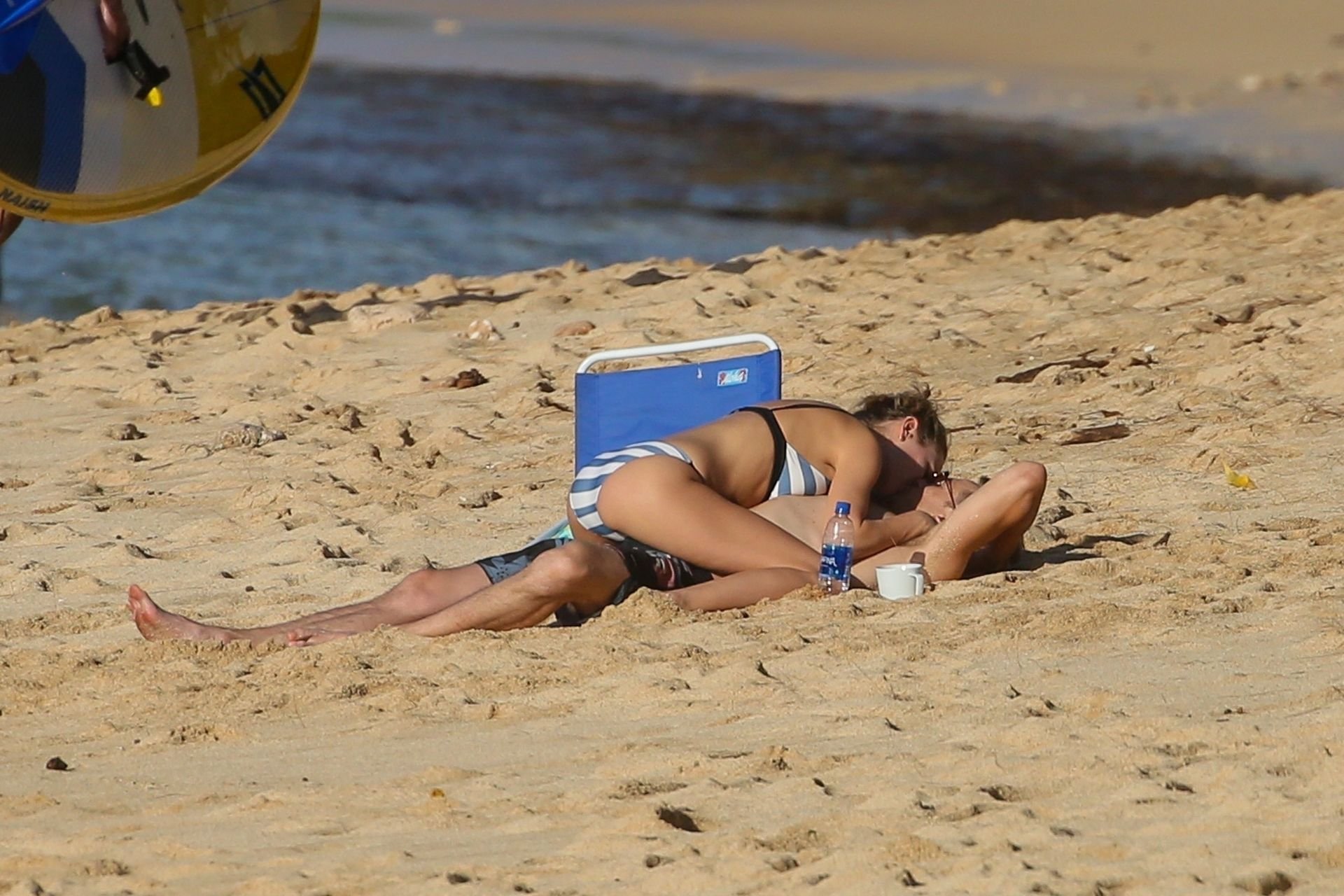Dylan Penn y Hopper Penn disfrutaron de la playa en Hawái durante sus vacaciones familiares en Oahu, 03/01/2019. Dylan fue vista con un bikini de dos piezas y mostrando afecto con su novio mientras el grupo se relajaba junto a la orilla.