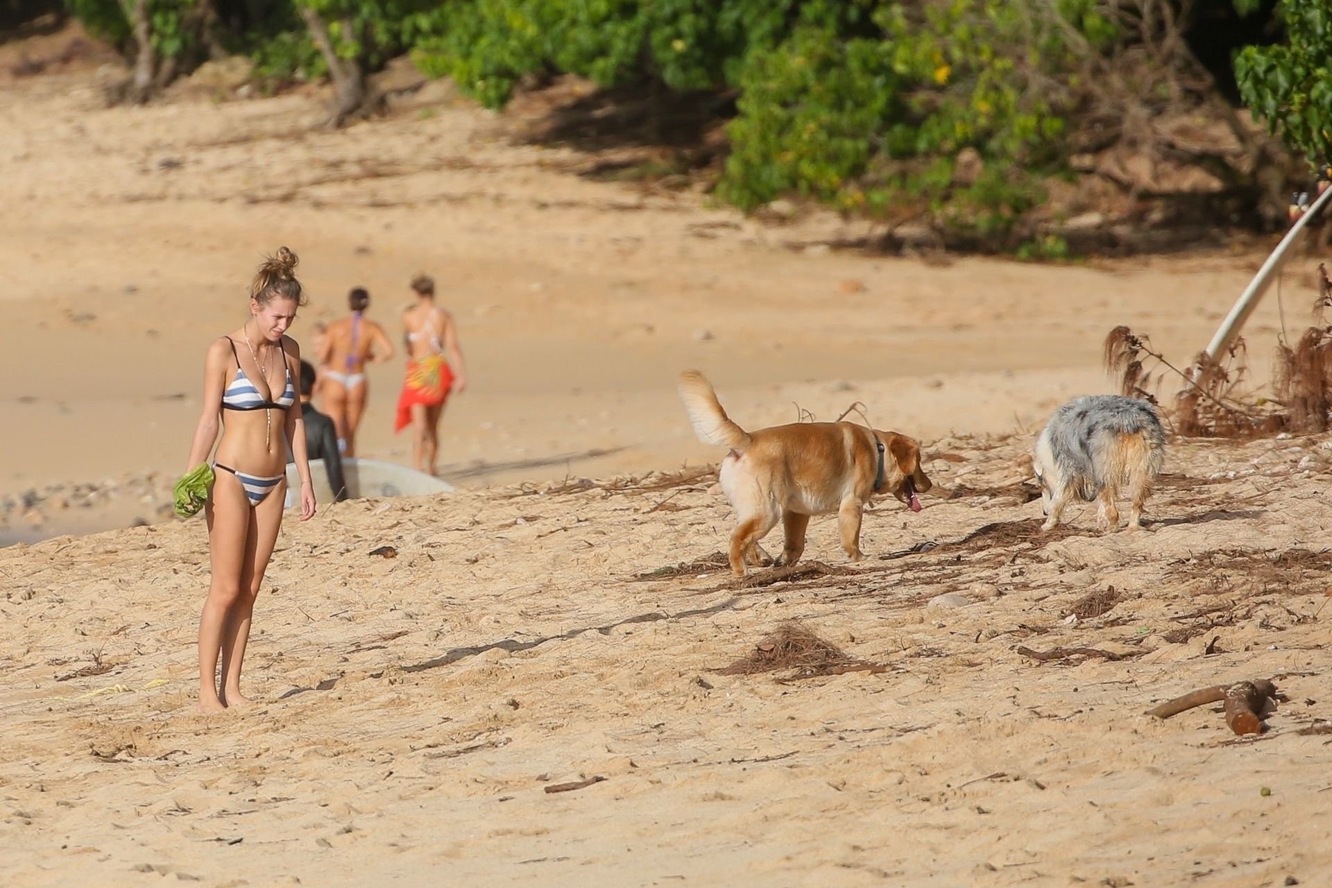 También se le vio jugando y limpiando detrás de un perro al que cuidaba. Hopper dio un paseo por la playa y se reunió con su hermana antes de dirigirse a la mansión frente al mar de su padre tras celebrar el Año Nuevo en el paraíso.