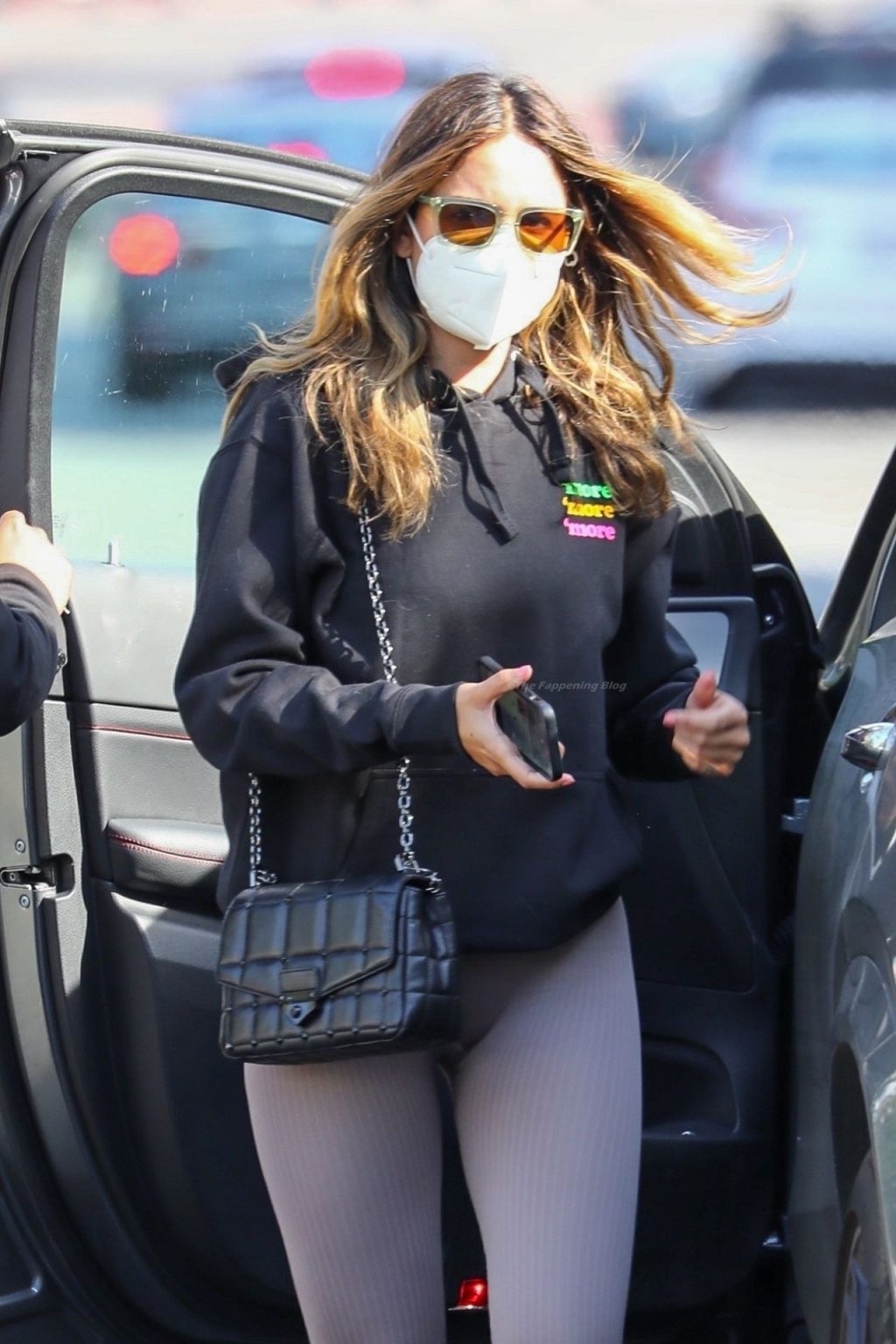La belleza morena Eiza Gonzalez deja su vehículo con el valet mientras llega para un almuerzo tardío en San Vicente Bungalows, 27/04/2021.