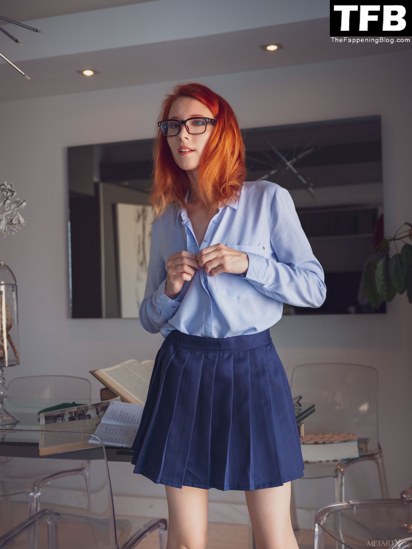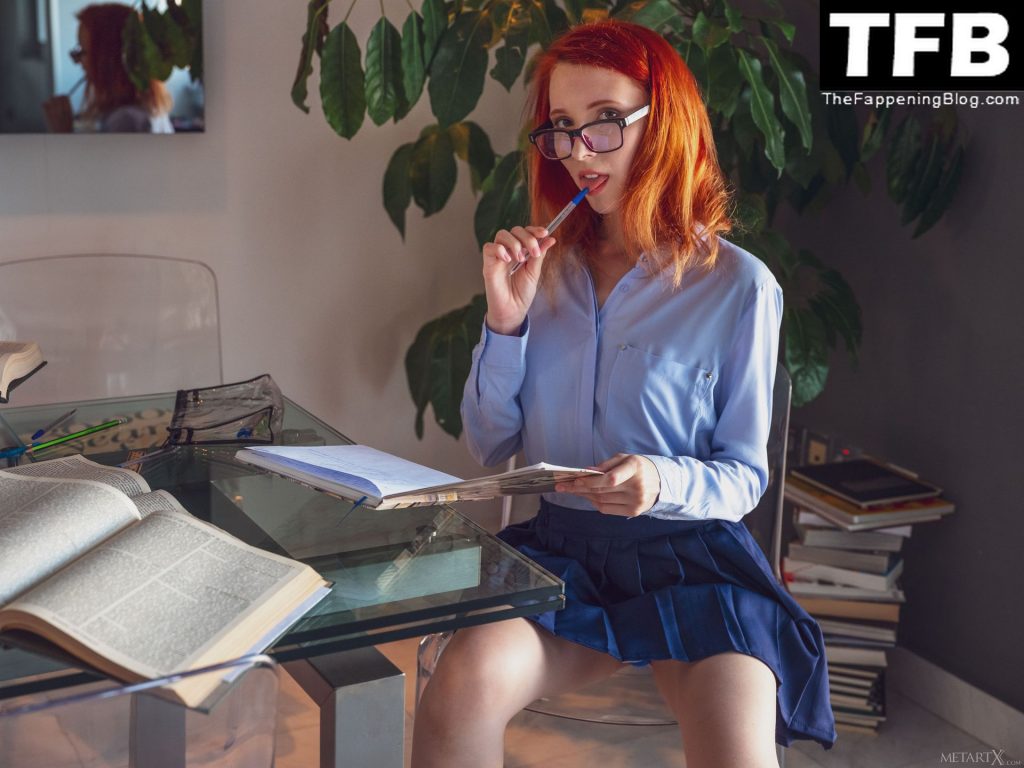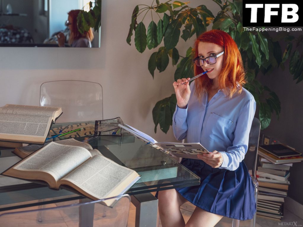 La impresionante modelo Elin Flame posa desnuda nuevamente y muestra sus tetas, trasero y pussy en una sesión de fotos para MerArtX (2020). Esta vez, la belleza pelirroja ha elegido un look nerd: una falda escolar corta y gafas. ¡Querrías follarte a esta chica caliente!