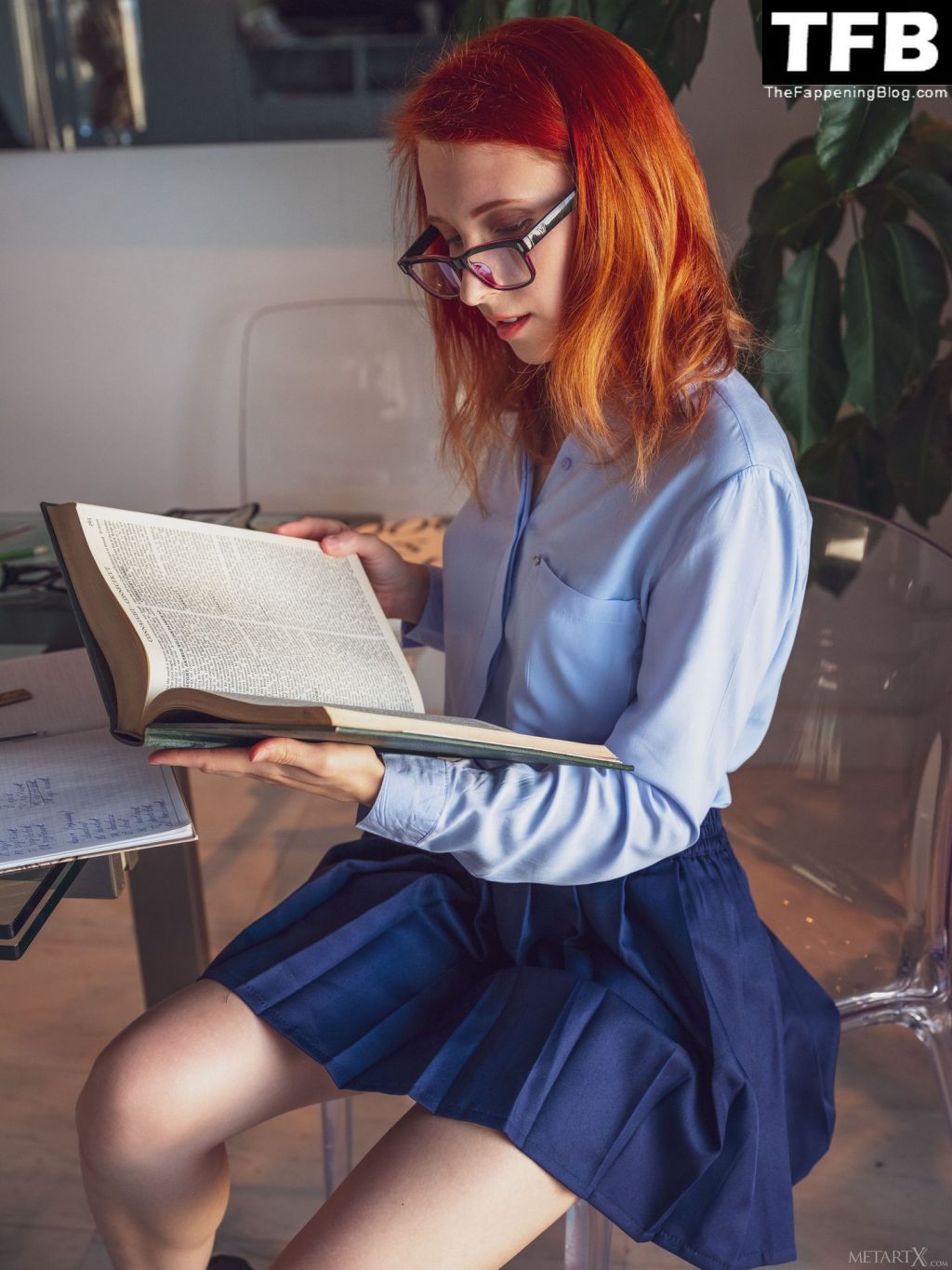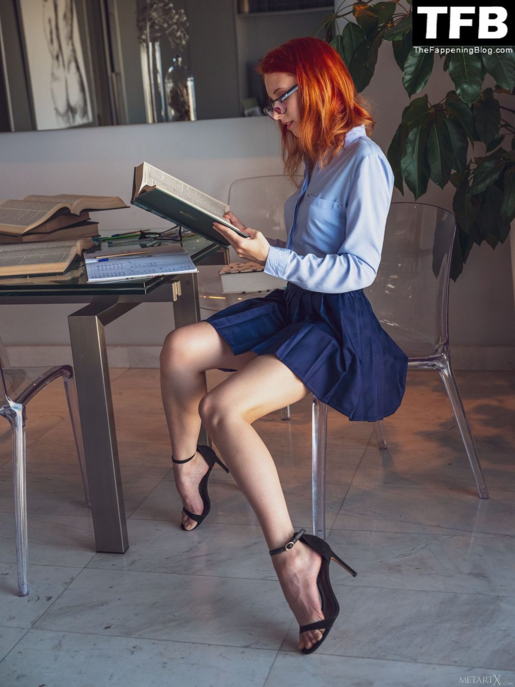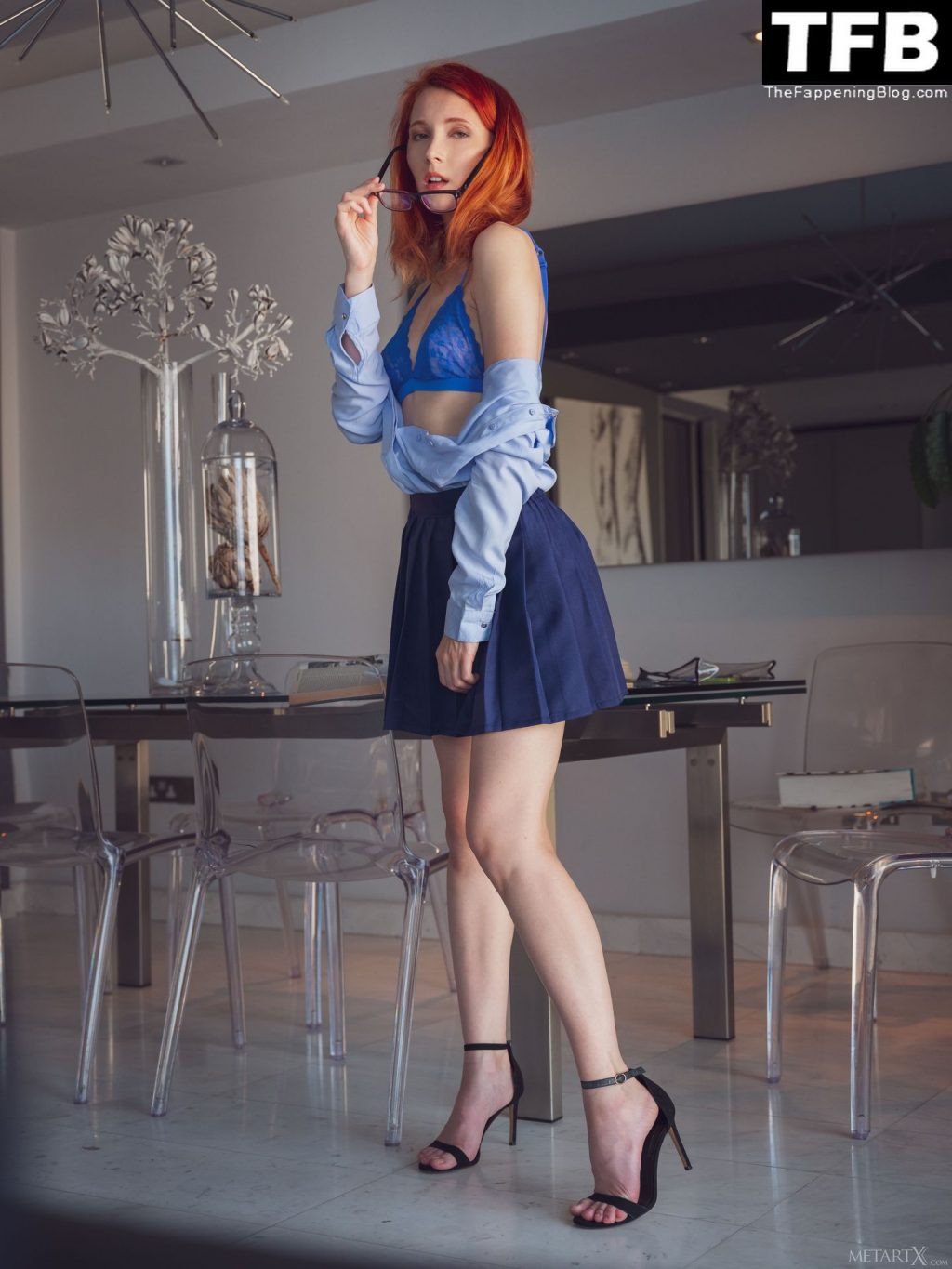 La impresionante modelo Elin Flame posa desnuda nuevamente y muestra sus tetas, trasero y pussy en una sesión de fotos para MerArtX (2020). Esta vez, la belleza pelirroja ha elegido un look nerd: una falda escolar corta y gafas. ¡Querrías follarte a esta chica caliente!