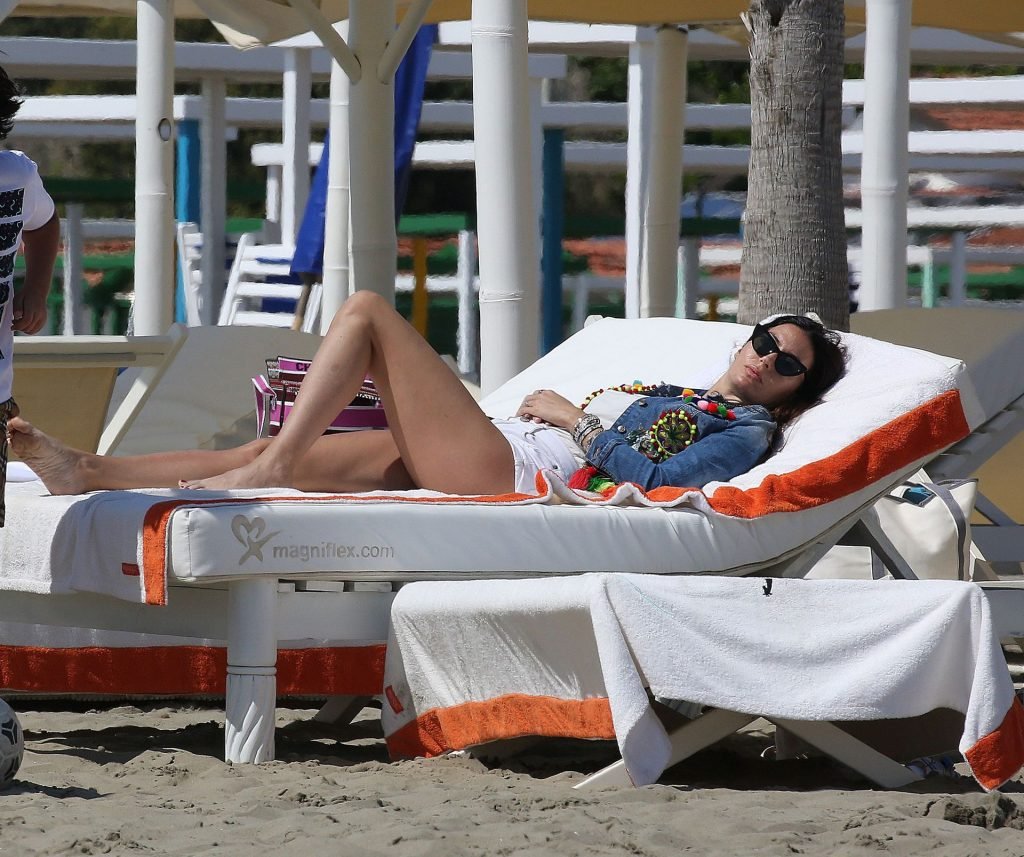 Leggy Elisabetta Gregoraci (ex esposa de Flavio Briatore) fue vista en el Twiga Beach Club con su hijo Nathan Falco Briatore, 23/05/2019.