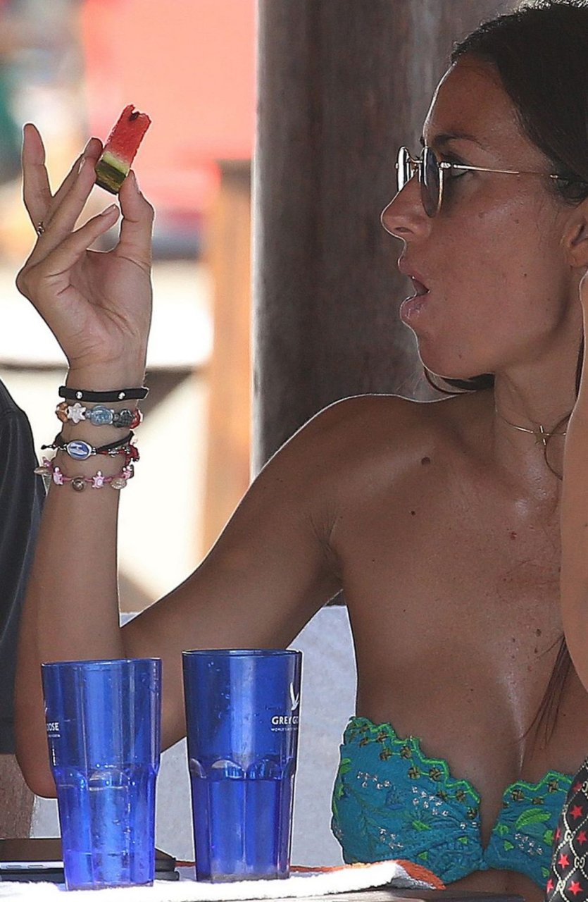 Elisabetta Gregoraci, Flavio Briatore y su hijo Nathan Falco fueron vistos en el Twiga Beach Club Versilia, Marina de Pietrasanta, Italia, 07/12/2019.