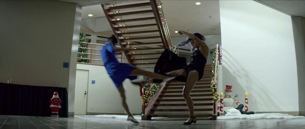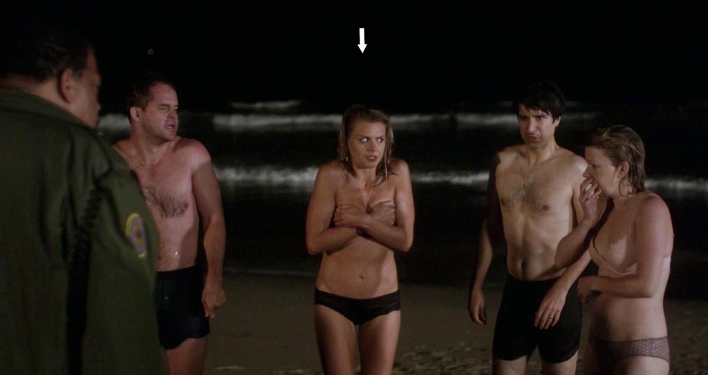 Eliza is bouncing topless in a guy’s lap as they have wild sex, her nipples digitally blurred out so they are never seen.