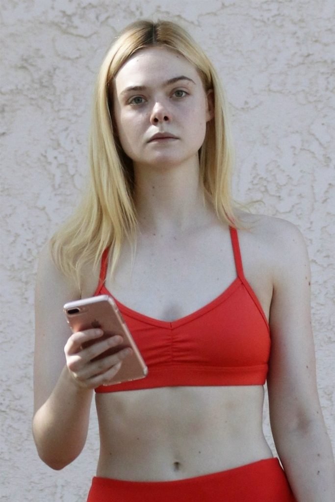 Elle Fanning se ve increíble después de salir de su clase de Pilates en Studio City, 28/10/2017. Elle deslumbra con un sostén rojo y leggings rojos a juego mientras se dirige a su auto. Elle Fanning es una actriz estadounidense (Galveston, 2018). Edad: 19 años (nacida el 9 de abril de 1998).