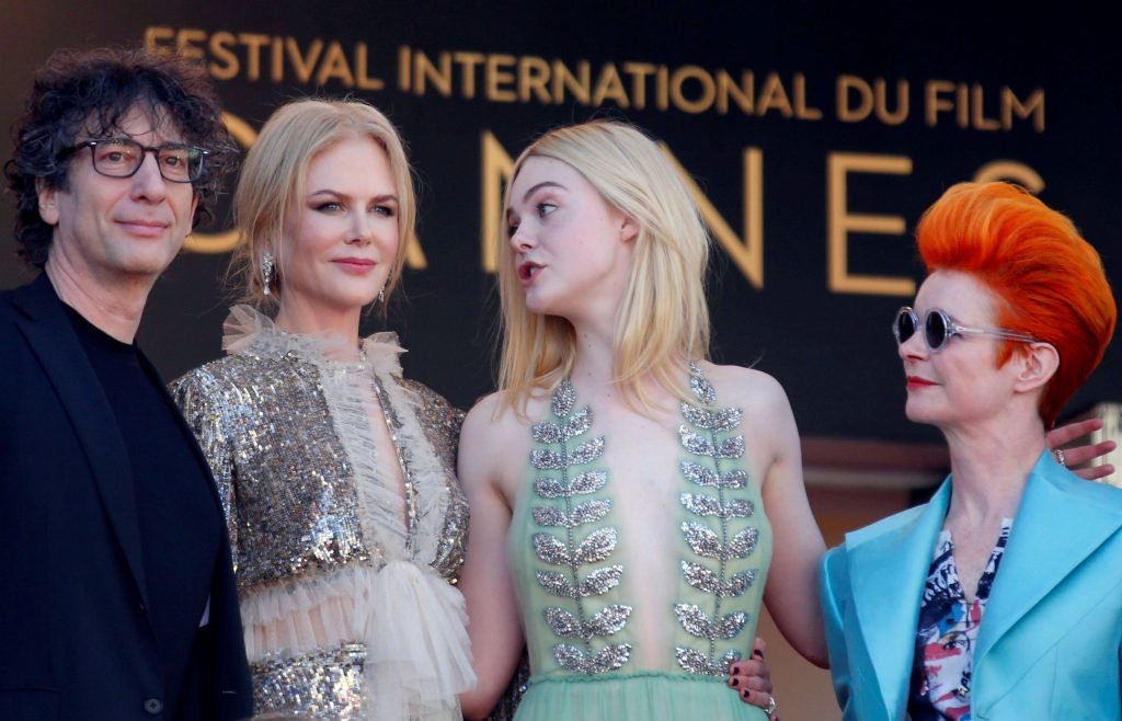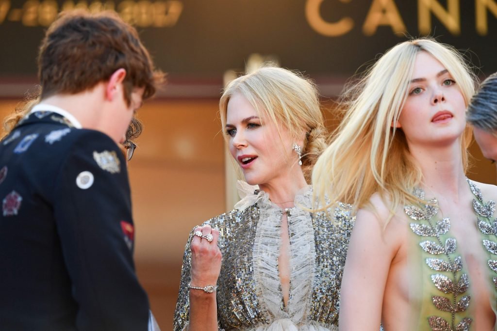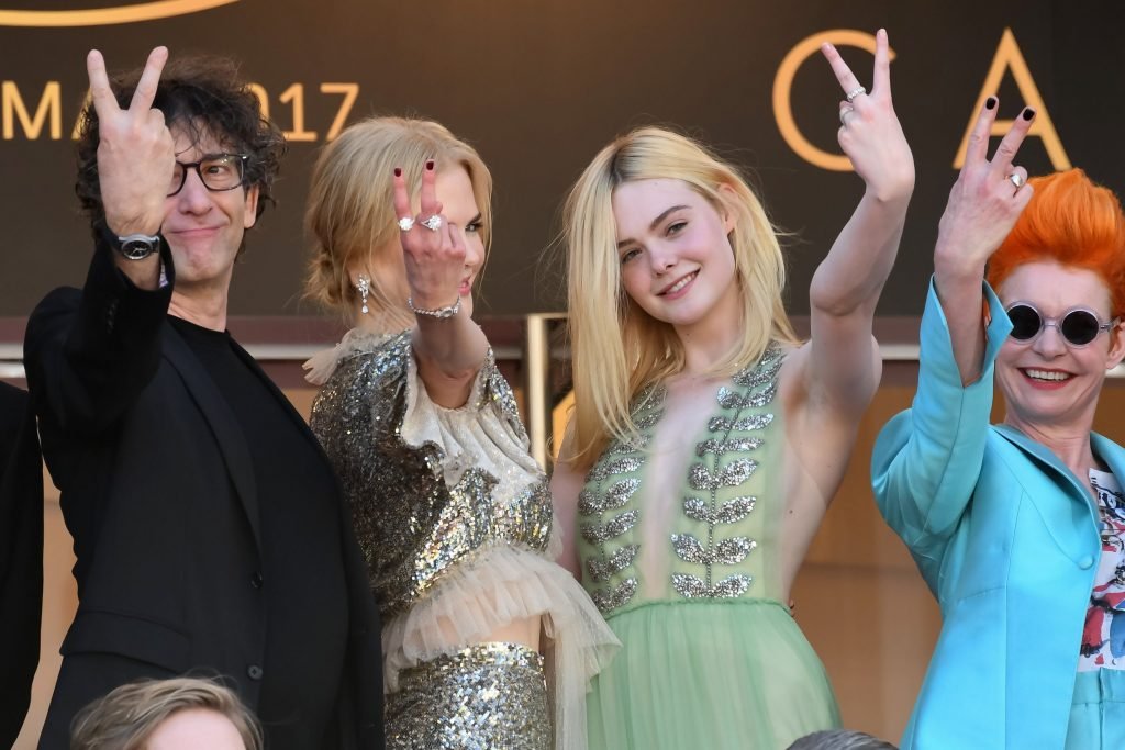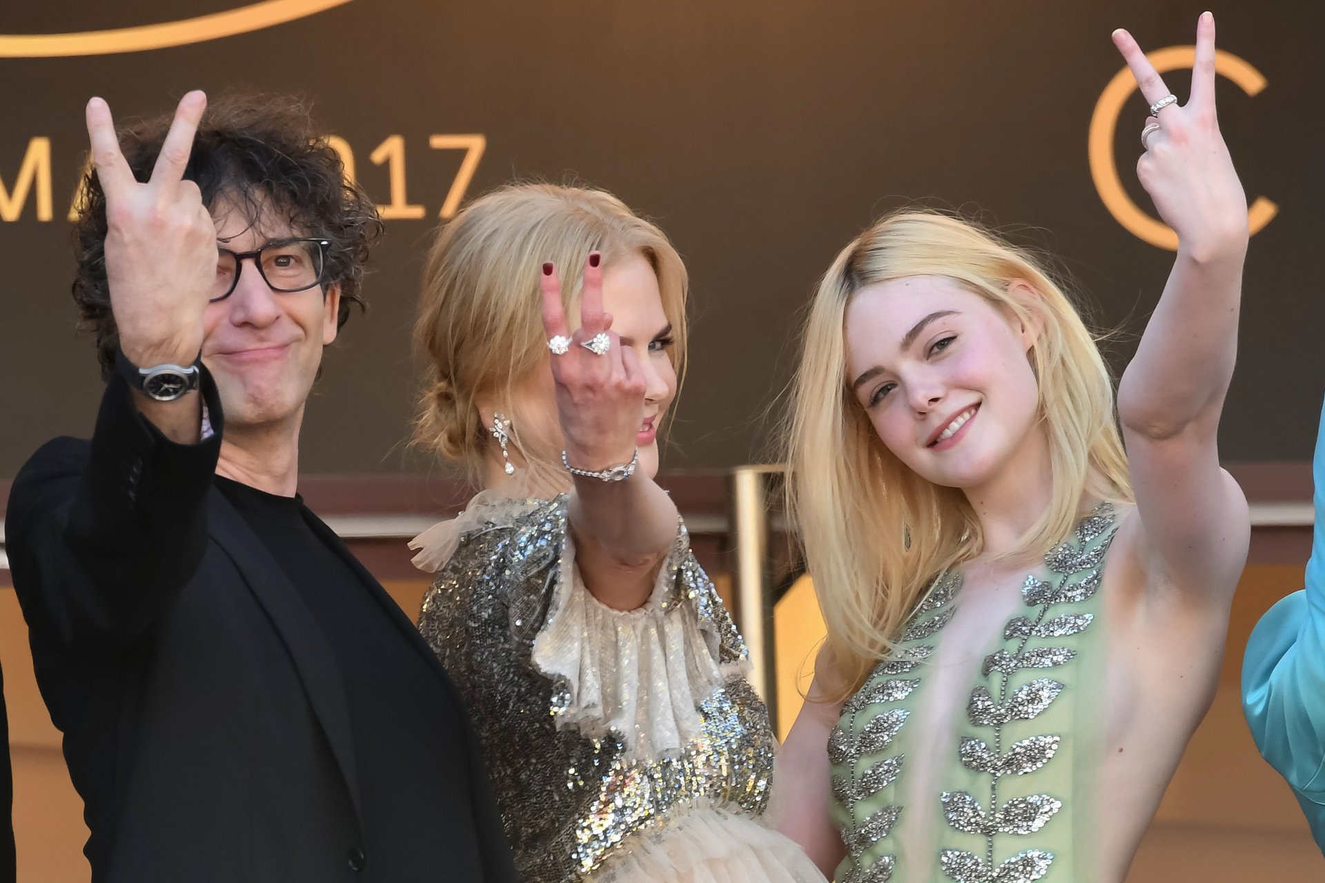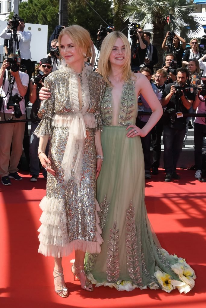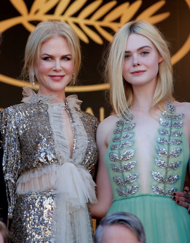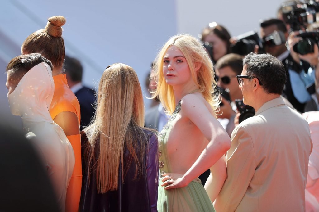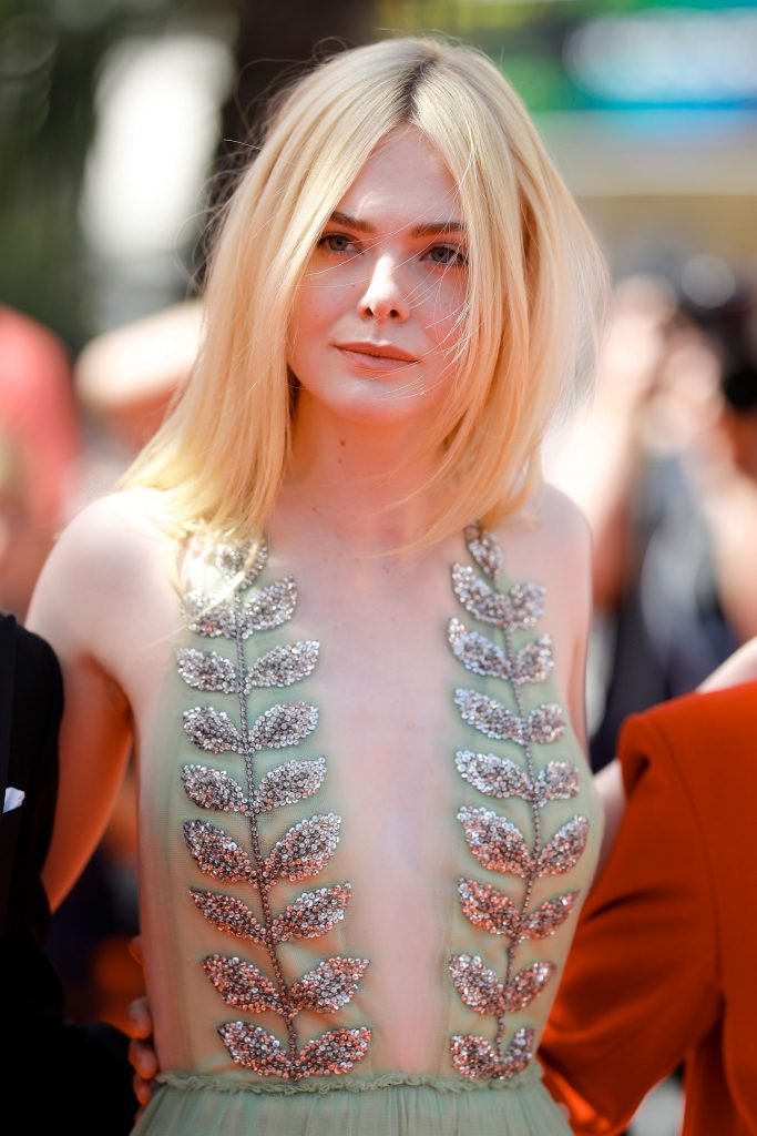 Elle Fanning sin sostén muestra el lateral del pecho con un vestido verde en el estreno de ‘Cómo hablar con chicas en las fiestas’ en el 70º Festival de Cine de Cannes, 21/05/17. Elle Fanning es una actriz estadounidense (Galveston, 2018). Edad: 19.