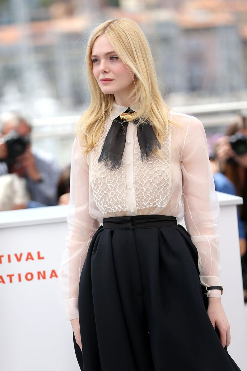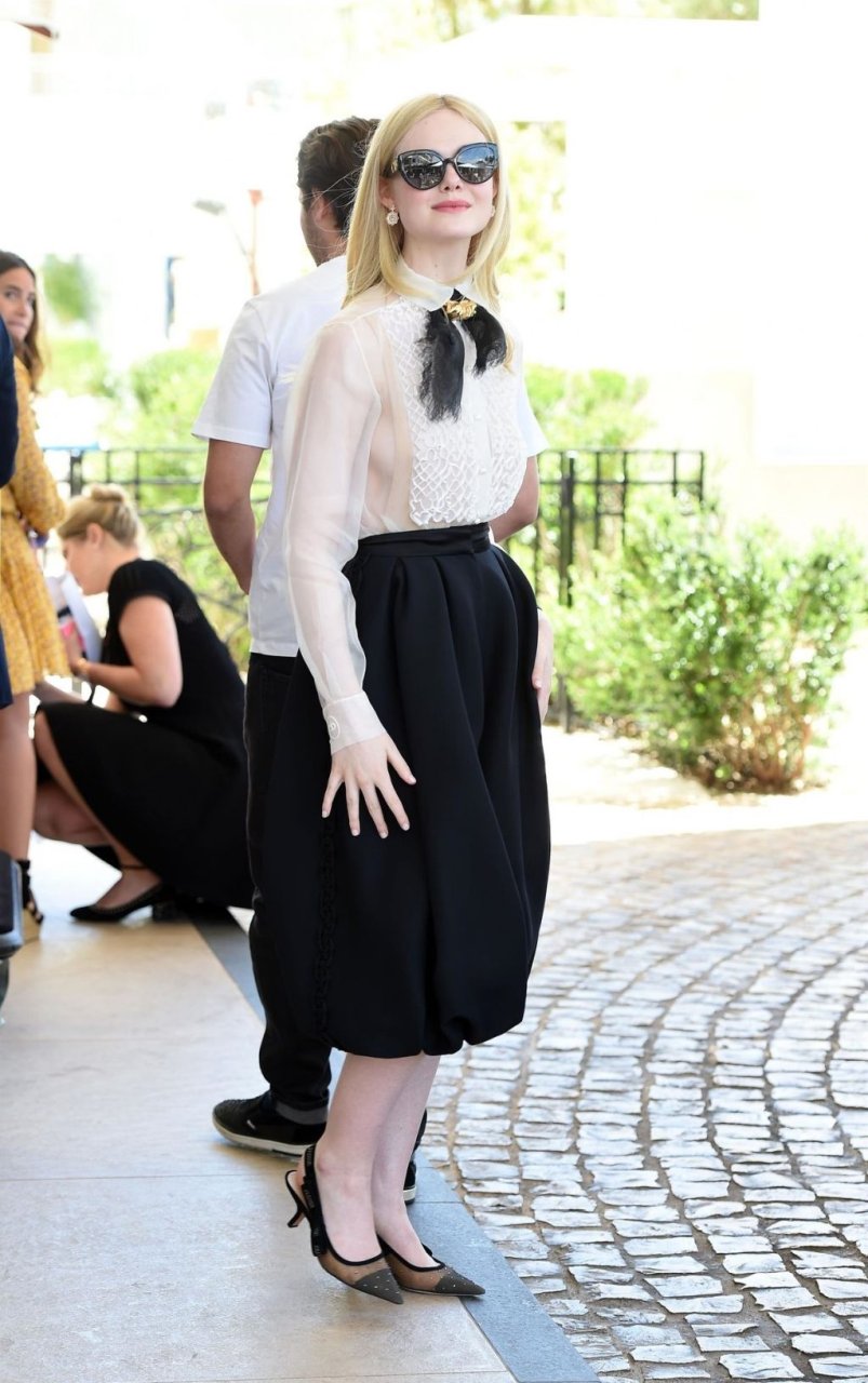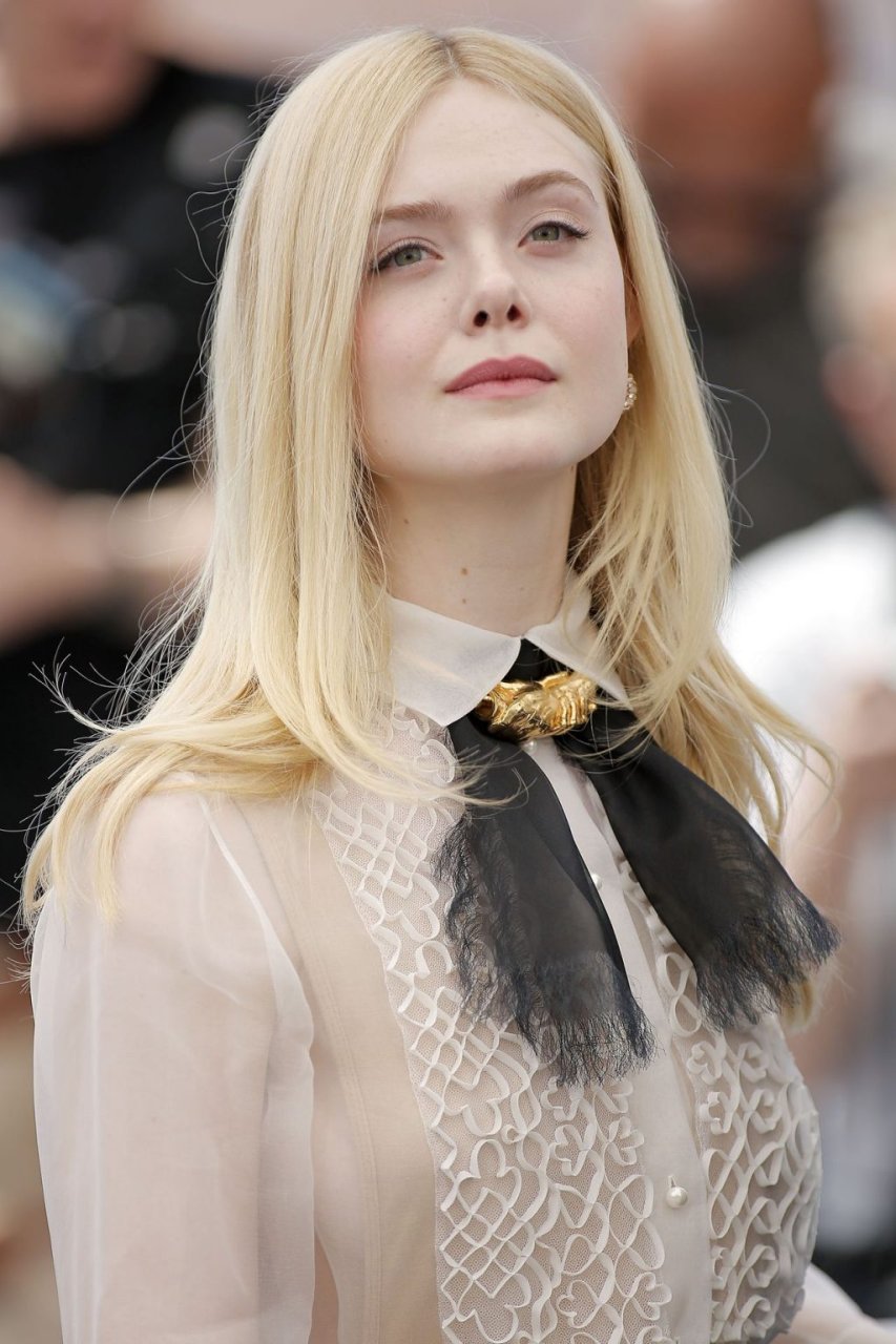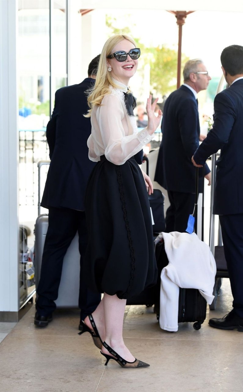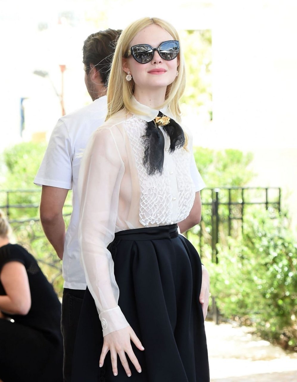 La actriz estadounidense Elle Fanning está sonriendo mientras sale del Hotel Martinez durante el Festival de Cine de Cannes 2019. Luego, Elle fue fotografiada posando en la sesión de fotos.