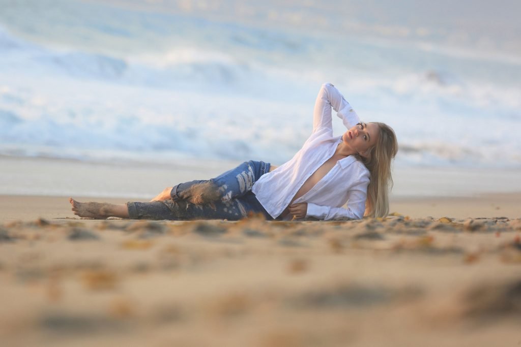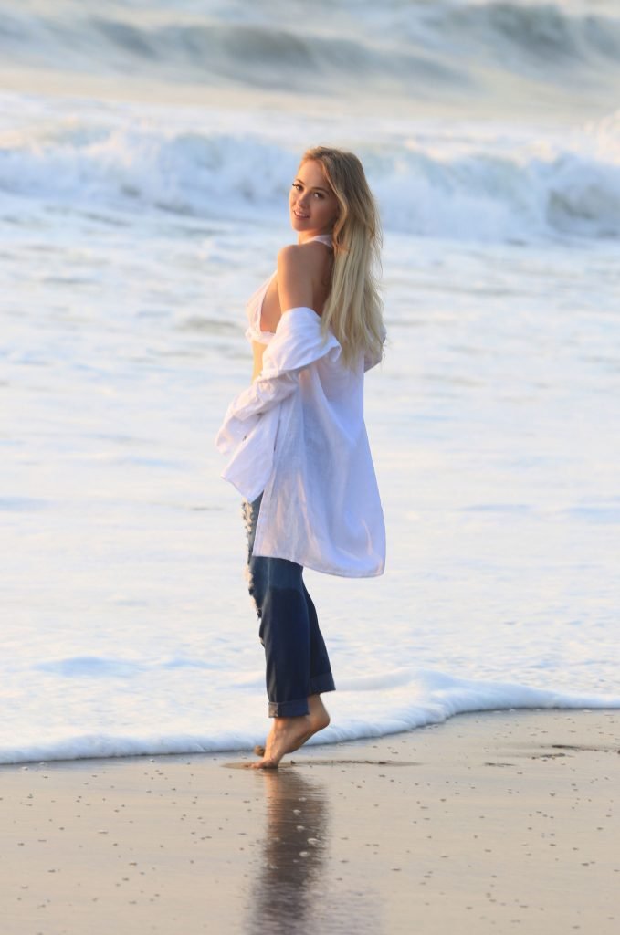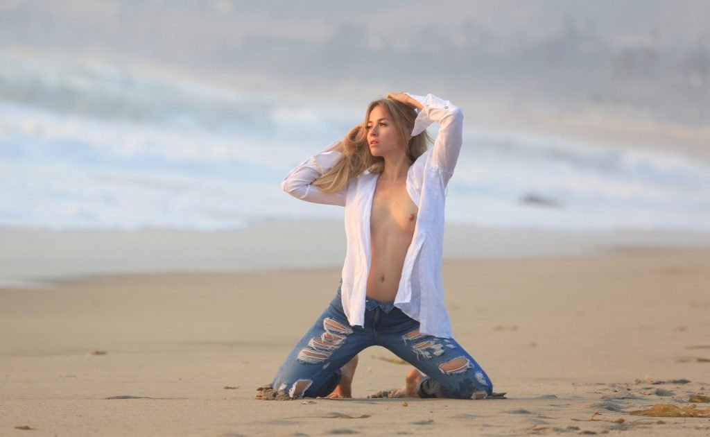 Ellen Alexander se desnuda de pecho durante una nueva sesión editorial para GQ Rusia, vistiendo una chaqueta de mezclilla y jeans retro en la playa de Malibu, 01/03/2018. Ellen Alexander (también conocida como Elena Bugaeva) es una modelo, actriz y productora de Rusia que actualmente reside en Los Ángeles.