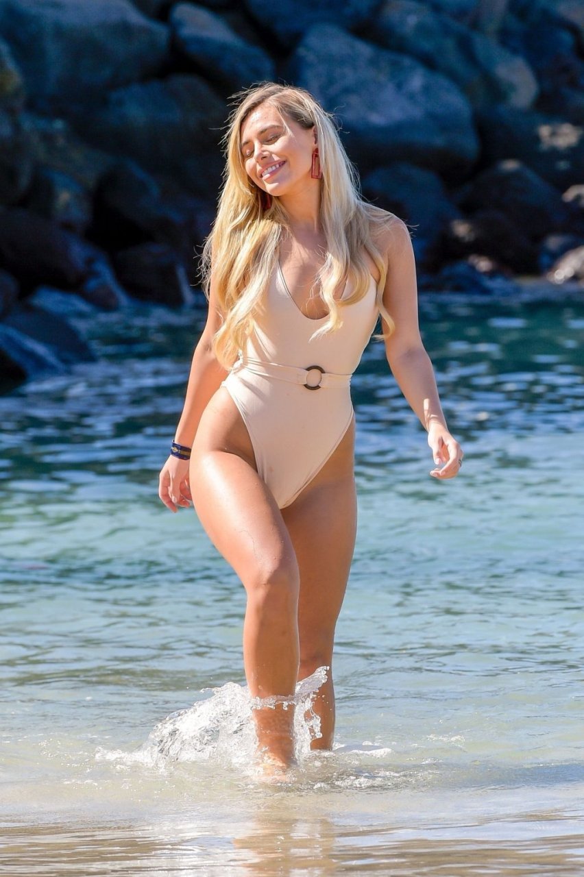 A pesar del reciente desamor por su ex Charlie Brake, la joven de 20 años y estrella de “Love Island” Ellie Brown ofrece una exhibición sensacional con su sexy traje de baño mientras se refresca en el mar durante sus vacaciones en Ibiza, 31/10/2018.