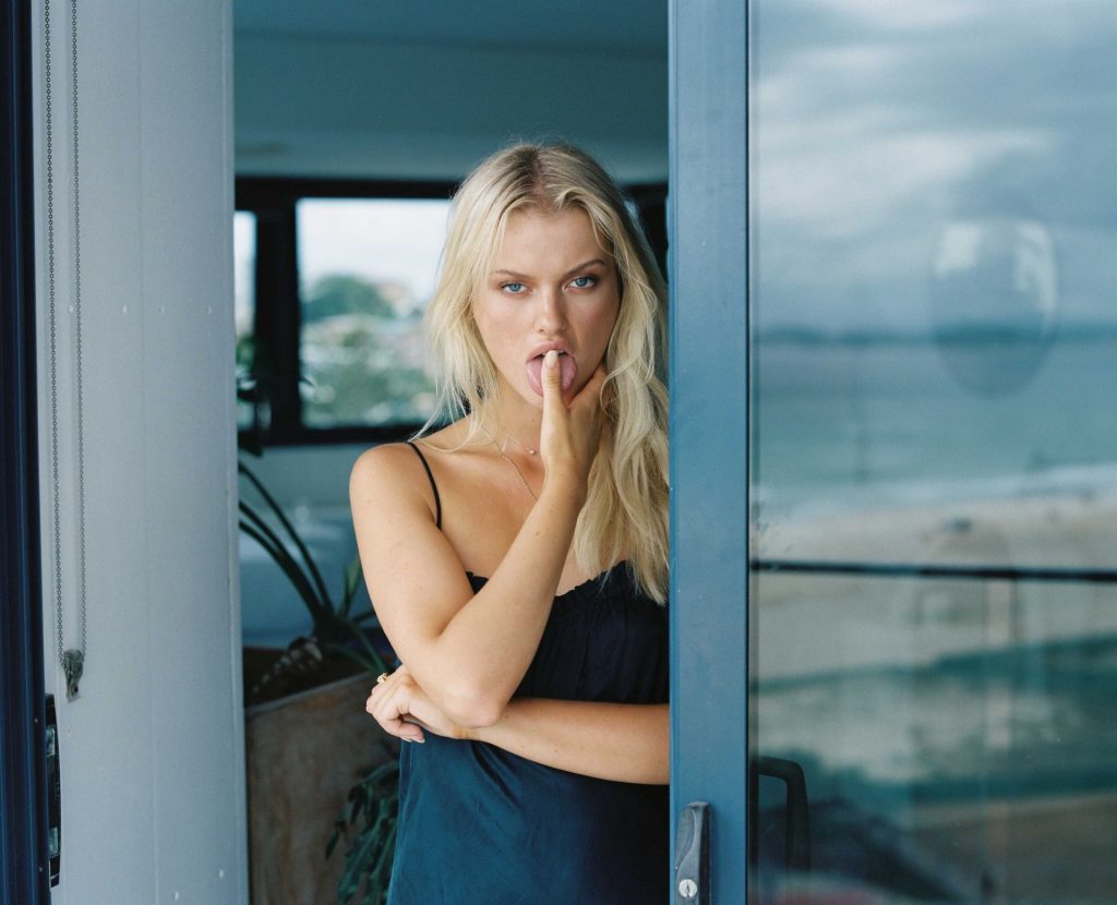 La modelo australiana Elodie Russell muestra sus naturales pechos hinchados y labios grandes en una nueva sesión de fotos de Jellan Merlant-Pilonchery (marzo de 2020).