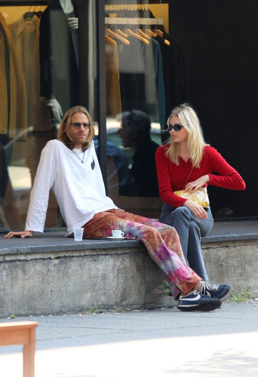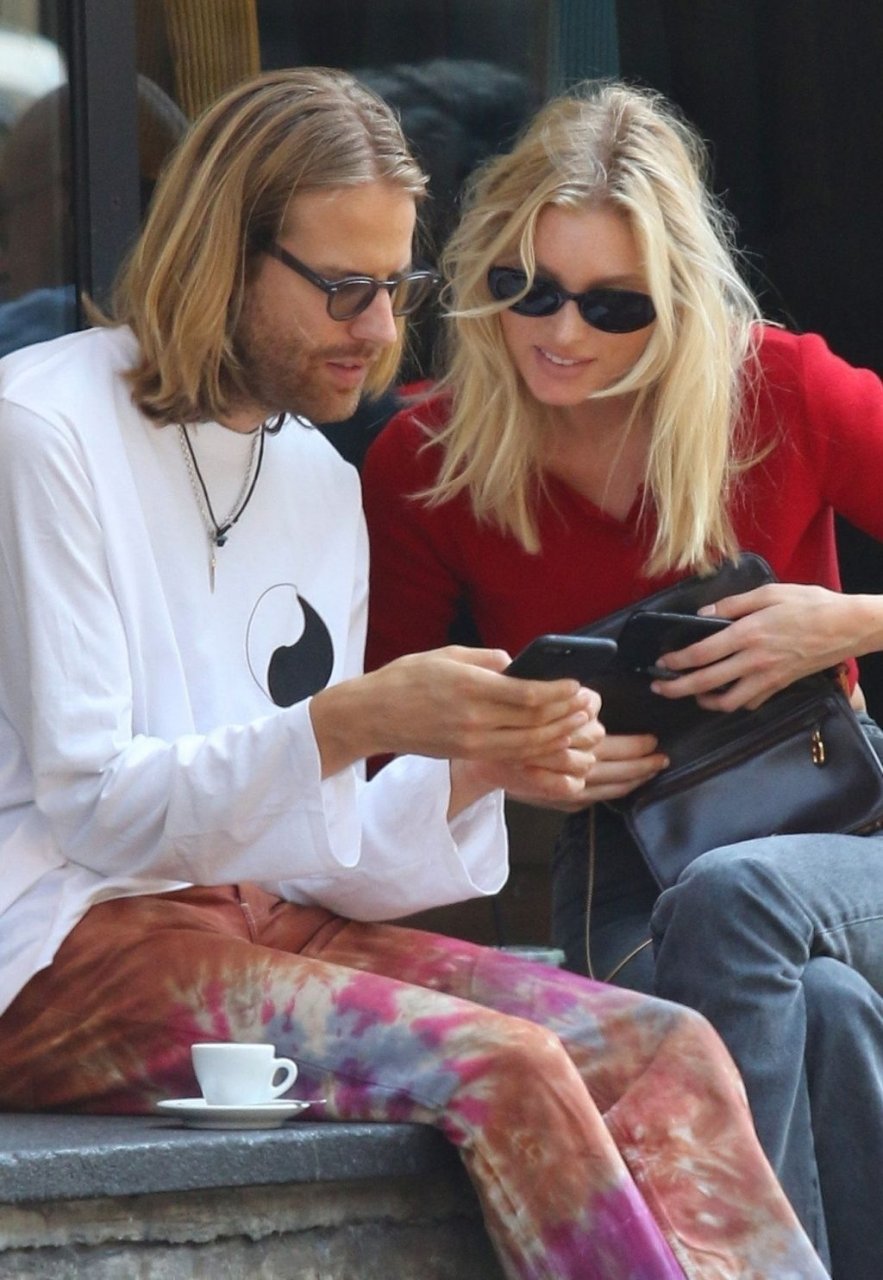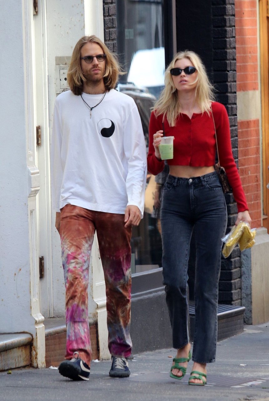 La modelo Elsa Hosk muestra su abdomen tonificado y lleva una bebida energética verde mientras está con su novio Tom Daly en el área de SoHo en Manhattan, 11/09/2019.