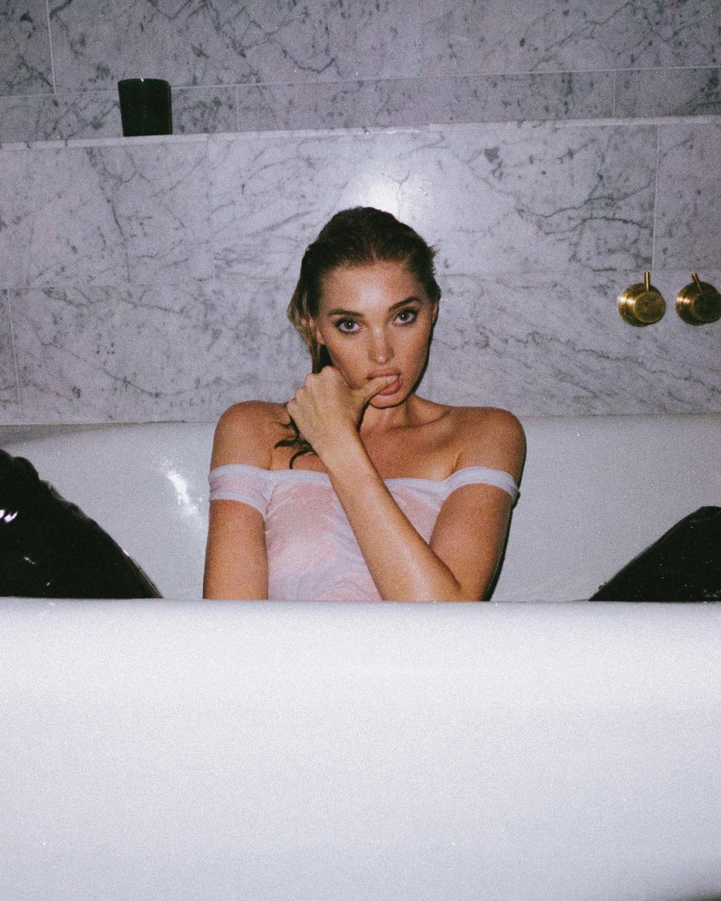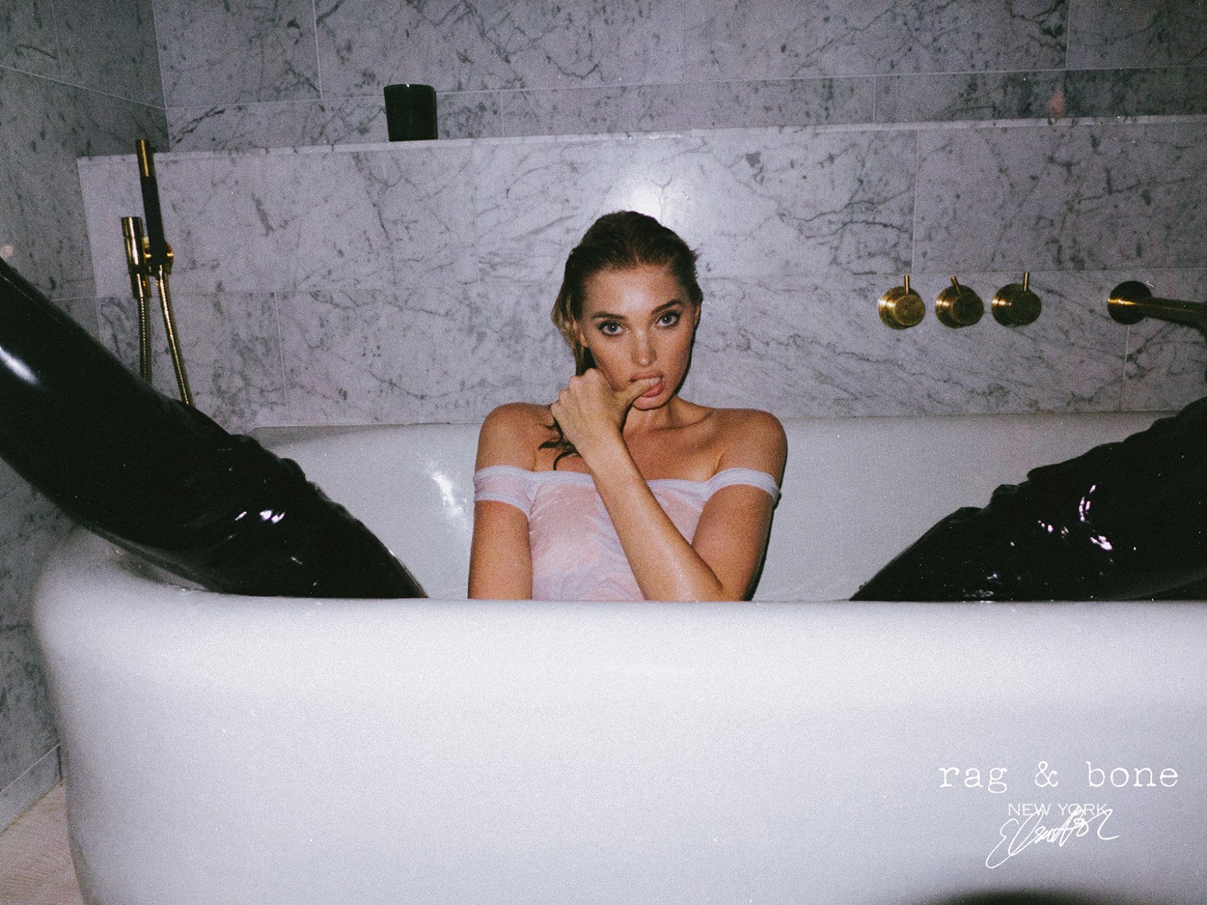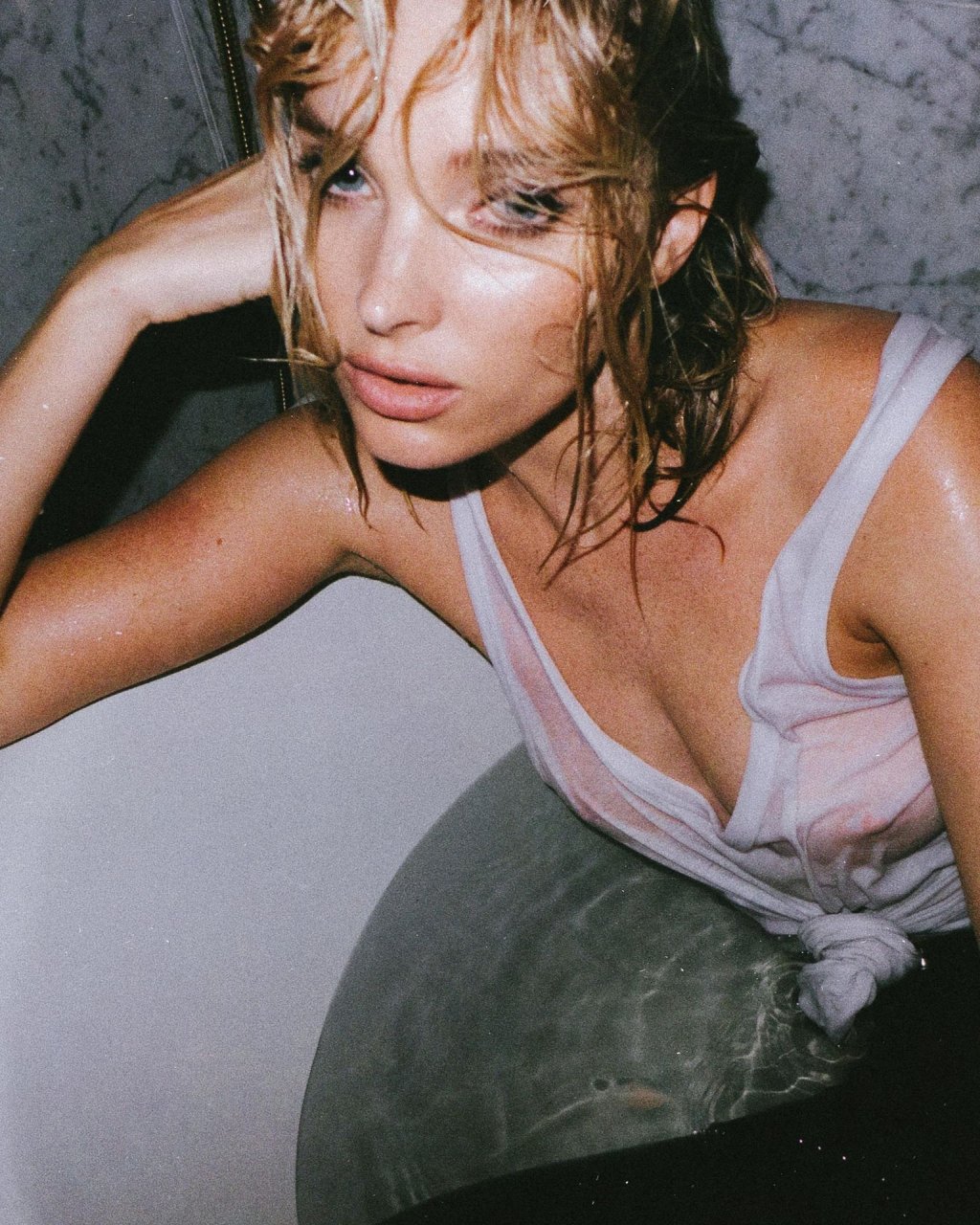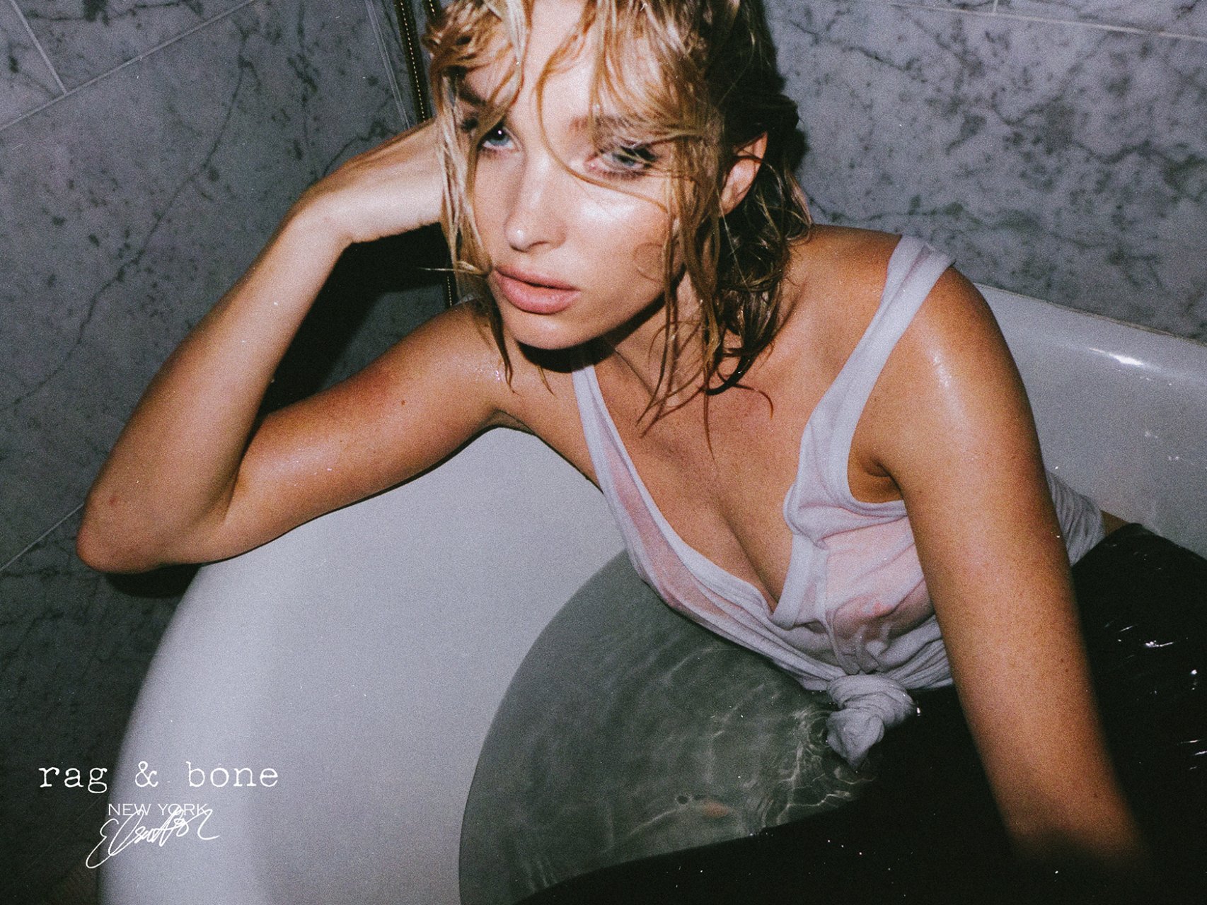 Consulta las recientes fotos ligeramente desnudas y sexys de Elsa Hosk para el proyecto DIY de rag & bone (2018). Esta famosa rubia sueca mostró sus pechos vistiendo una camisa blanca mojada.