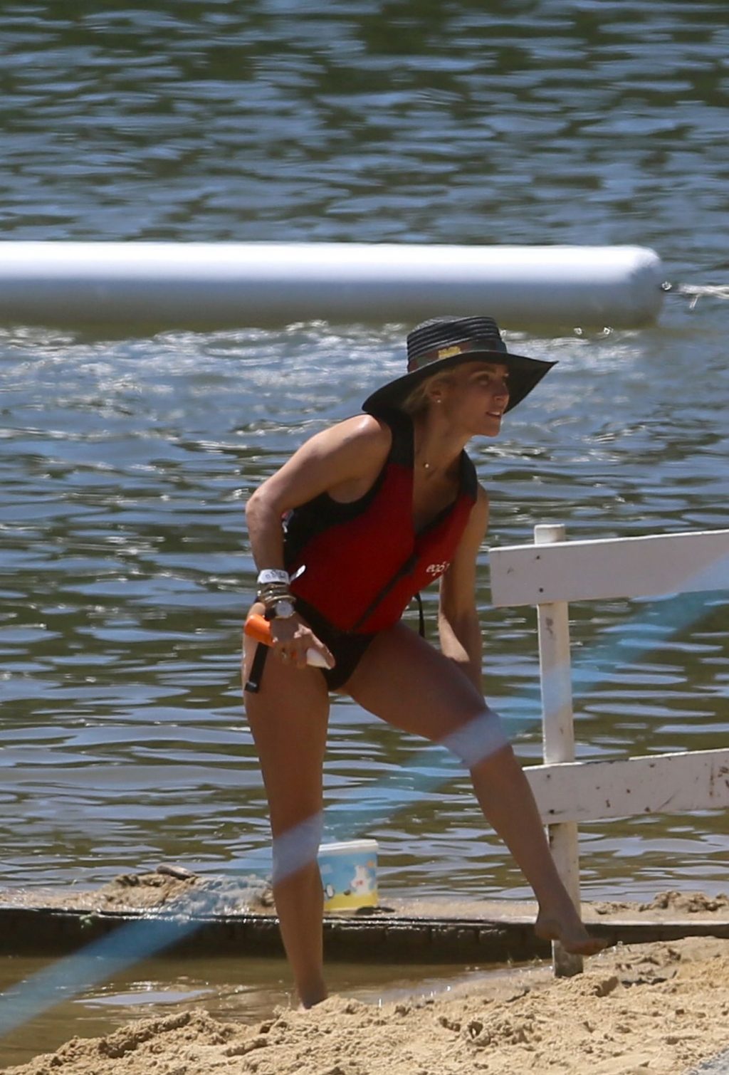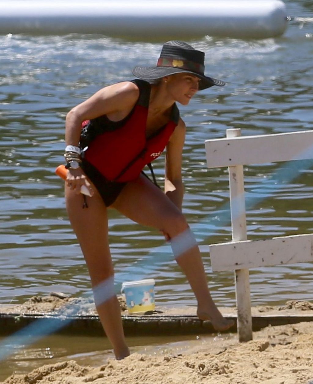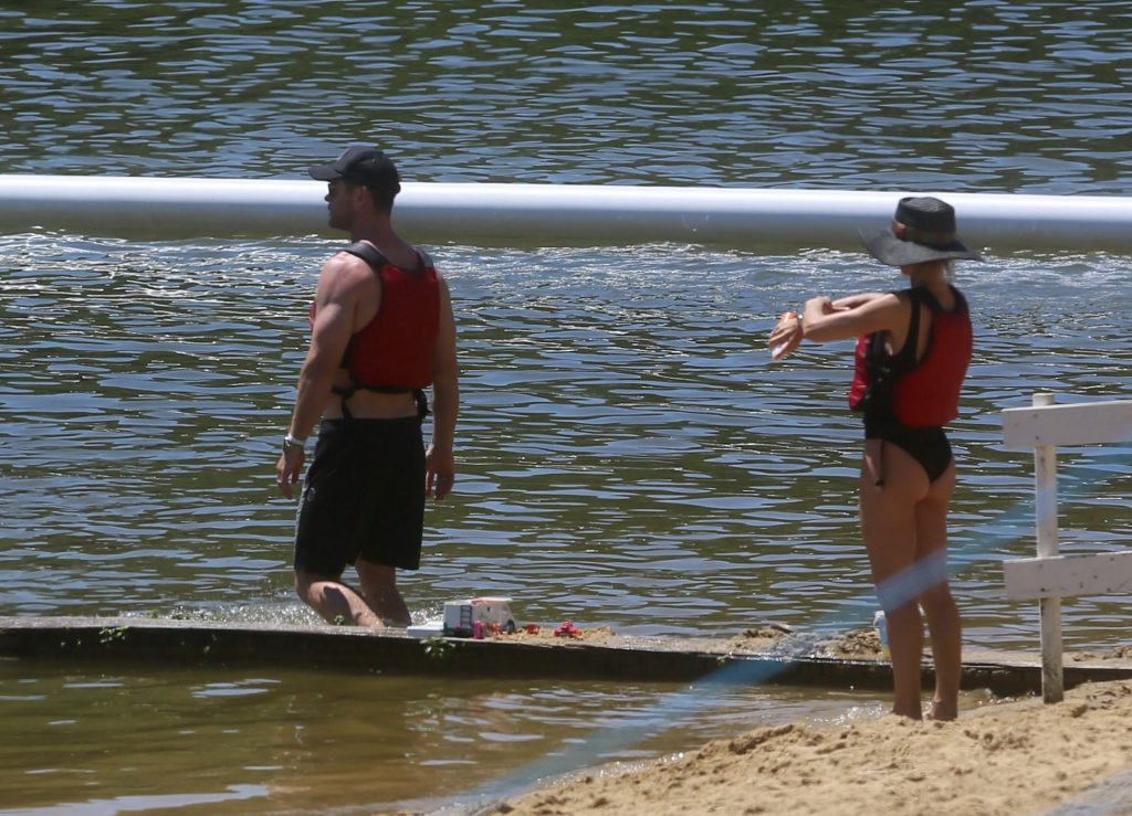 Chris Hemsworth, Elsa Pataky y sus hijos pasan un día divertido en el Lago Senpere en el sur de Francia, 07/12/2019. Elsa mostró su cuerpo sexy y en forma luciendo un traje de baño negro.