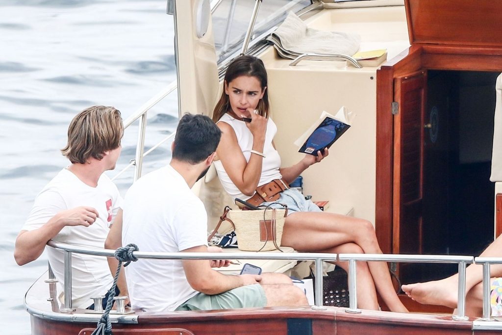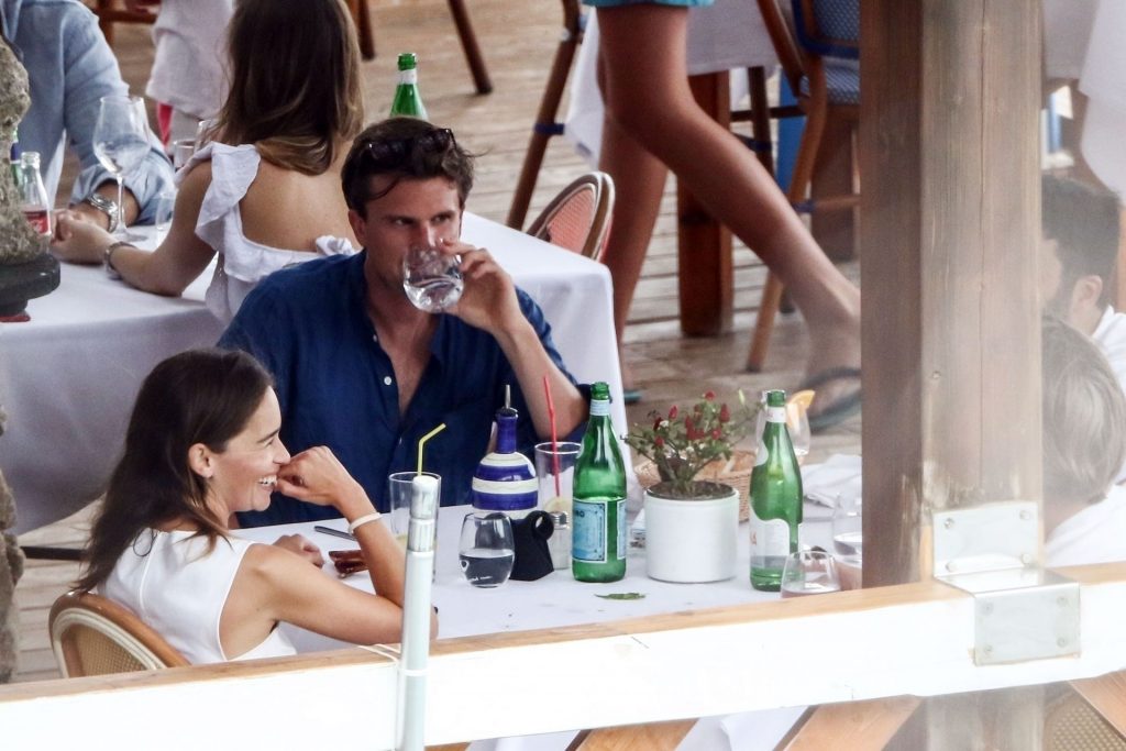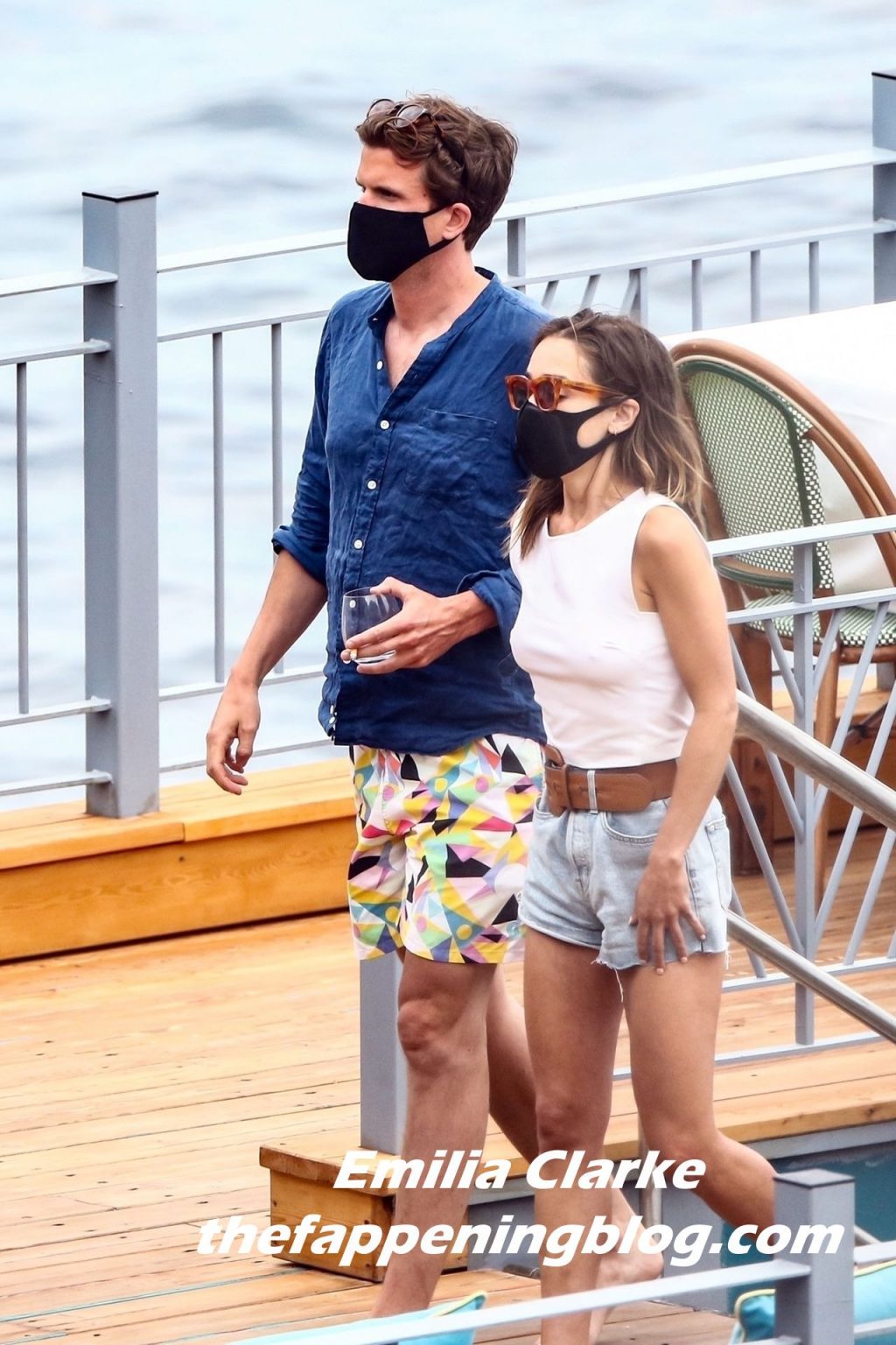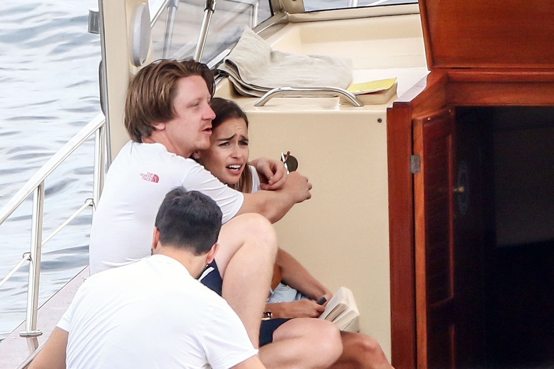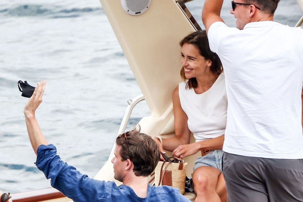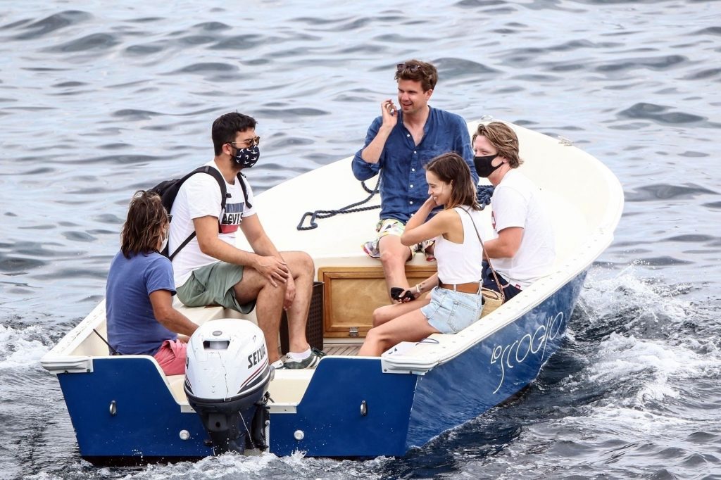 “Game of Thrones” actriz Emilia Clarke es fotografiada con amigos mientras disfruta de sus vacaciones de verano en Italia, 08/07/2020.