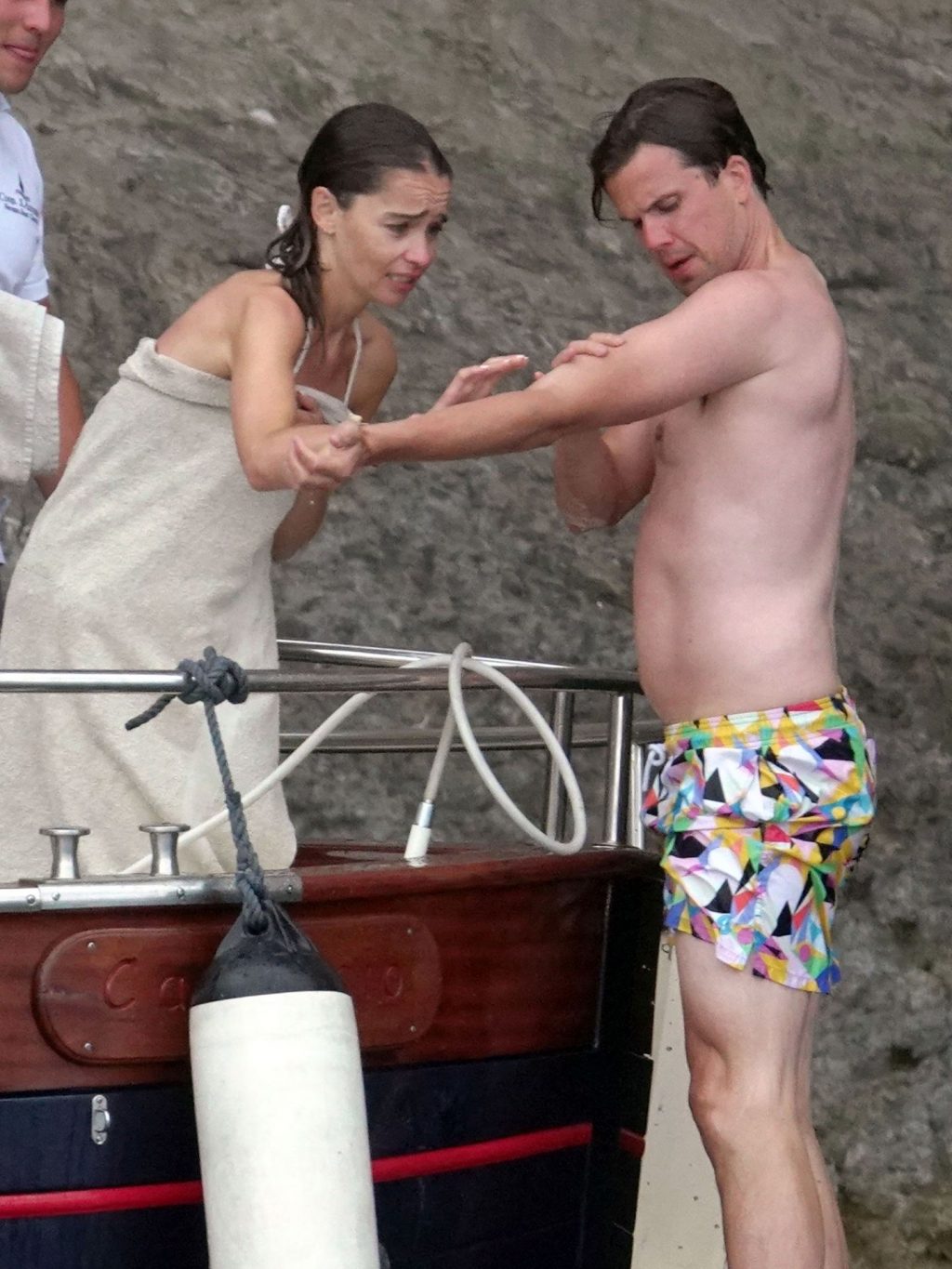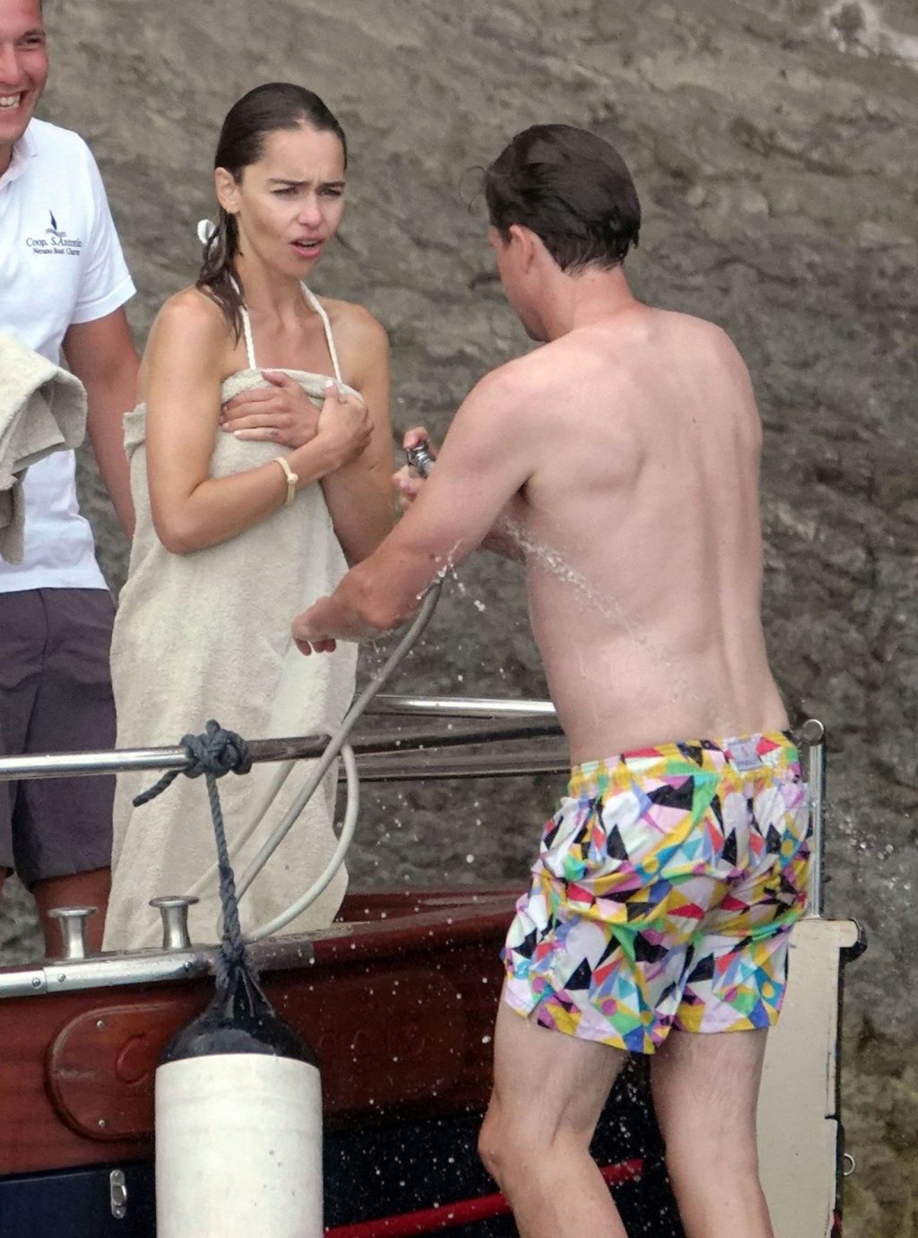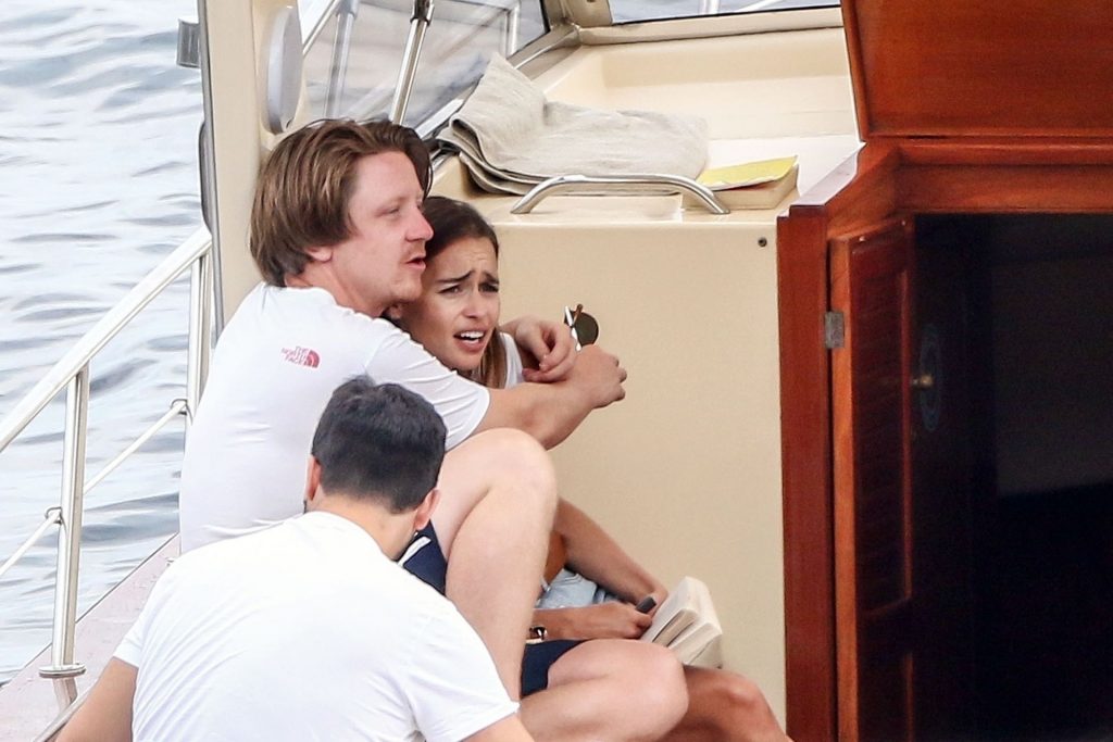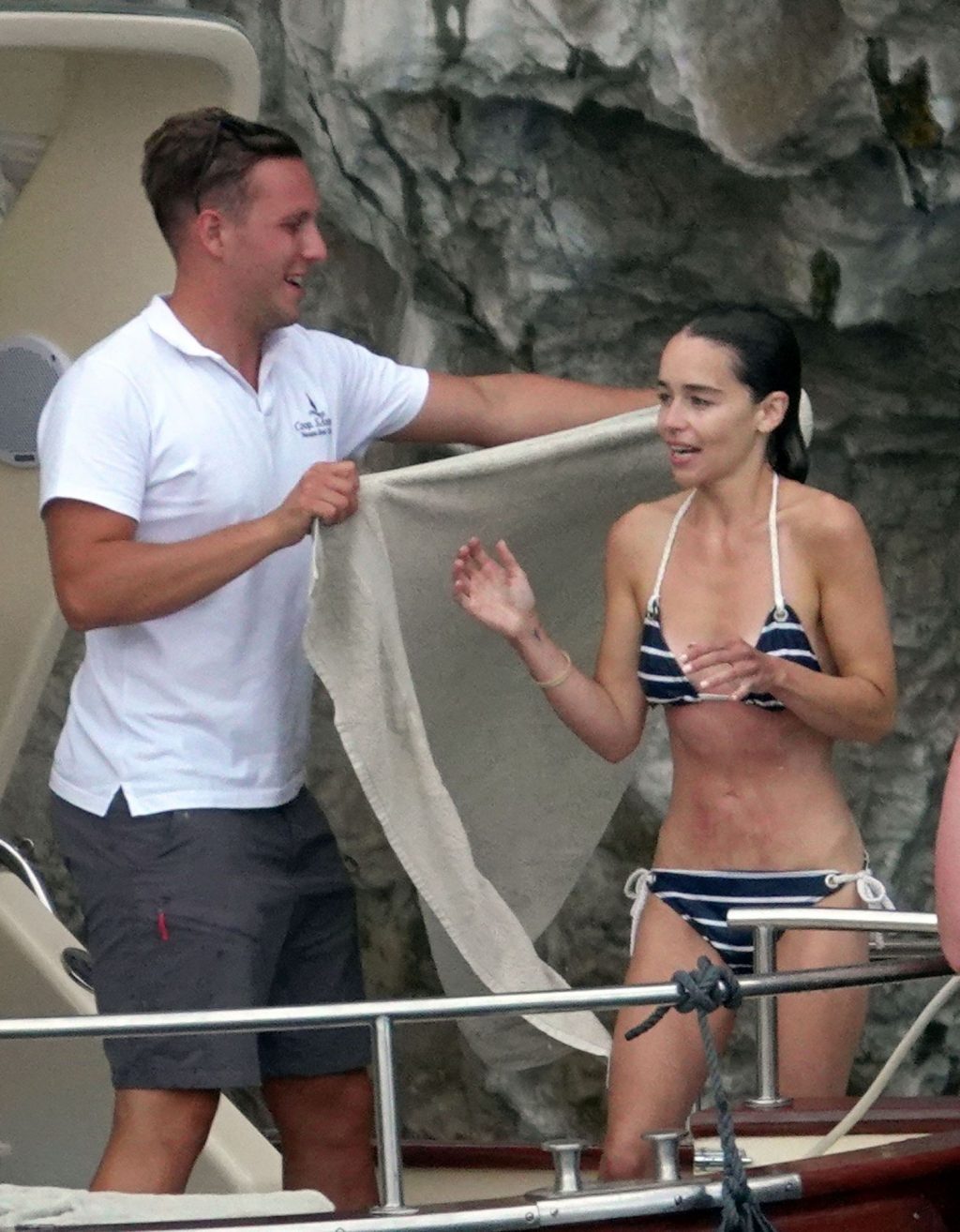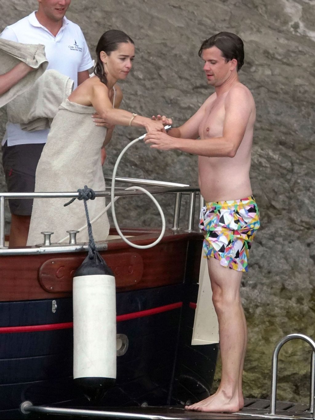 “Game of Thrones” actriz Emilia Clarke es fotografiada con amigos mientras disfruta de sus vacaciones de verano en Italia, 08/07/2020.