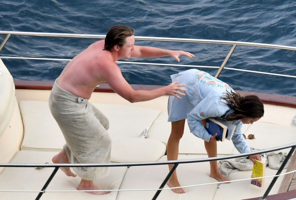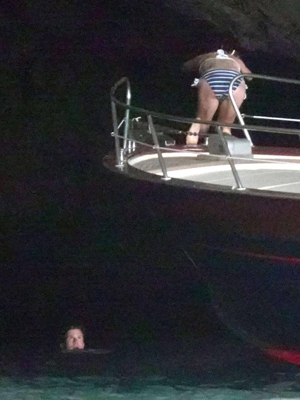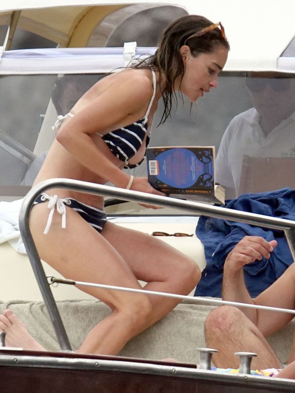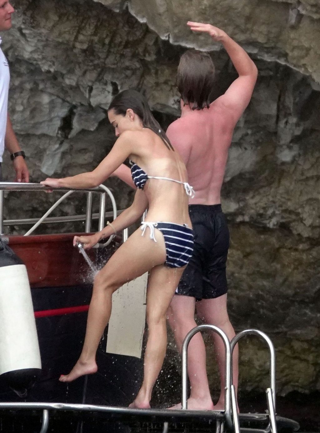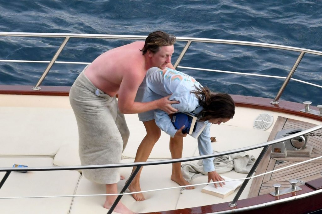 La actriz inglesa fue vista disfrutando de un paseo en barco con sus amigos masculinos y se dio un baño en bikini a rayas mientras el grupo visitaba algunas cuevas durante su paseo en barco disfrutando del verano en Italia!