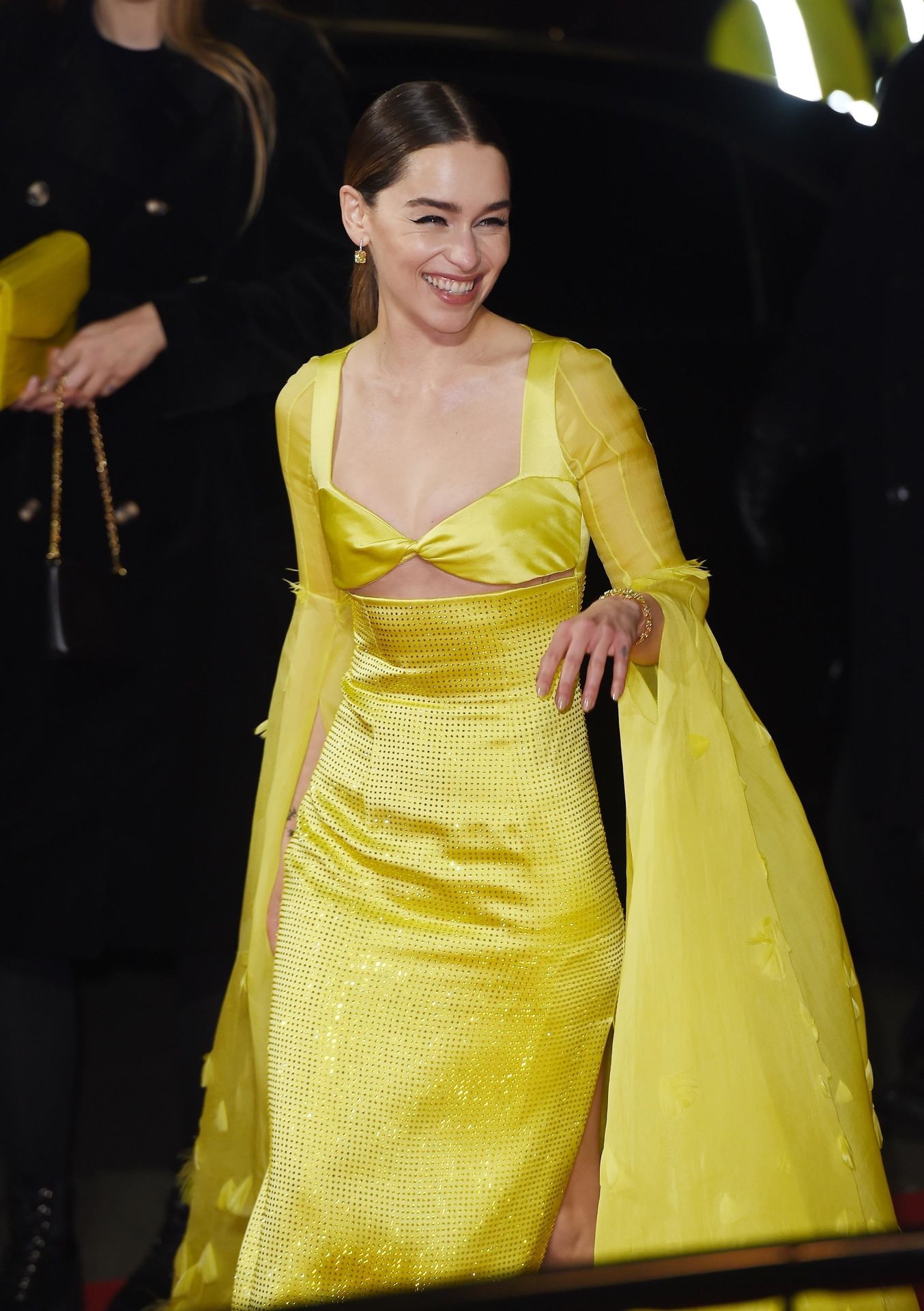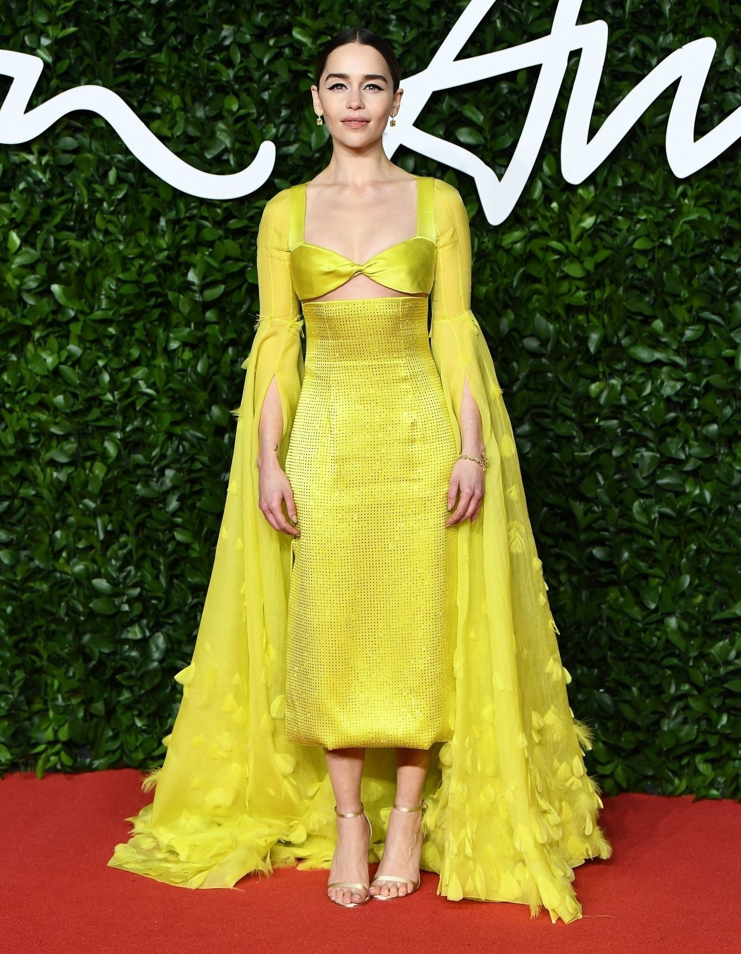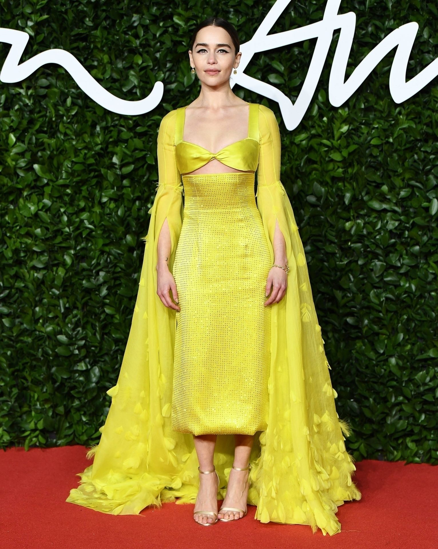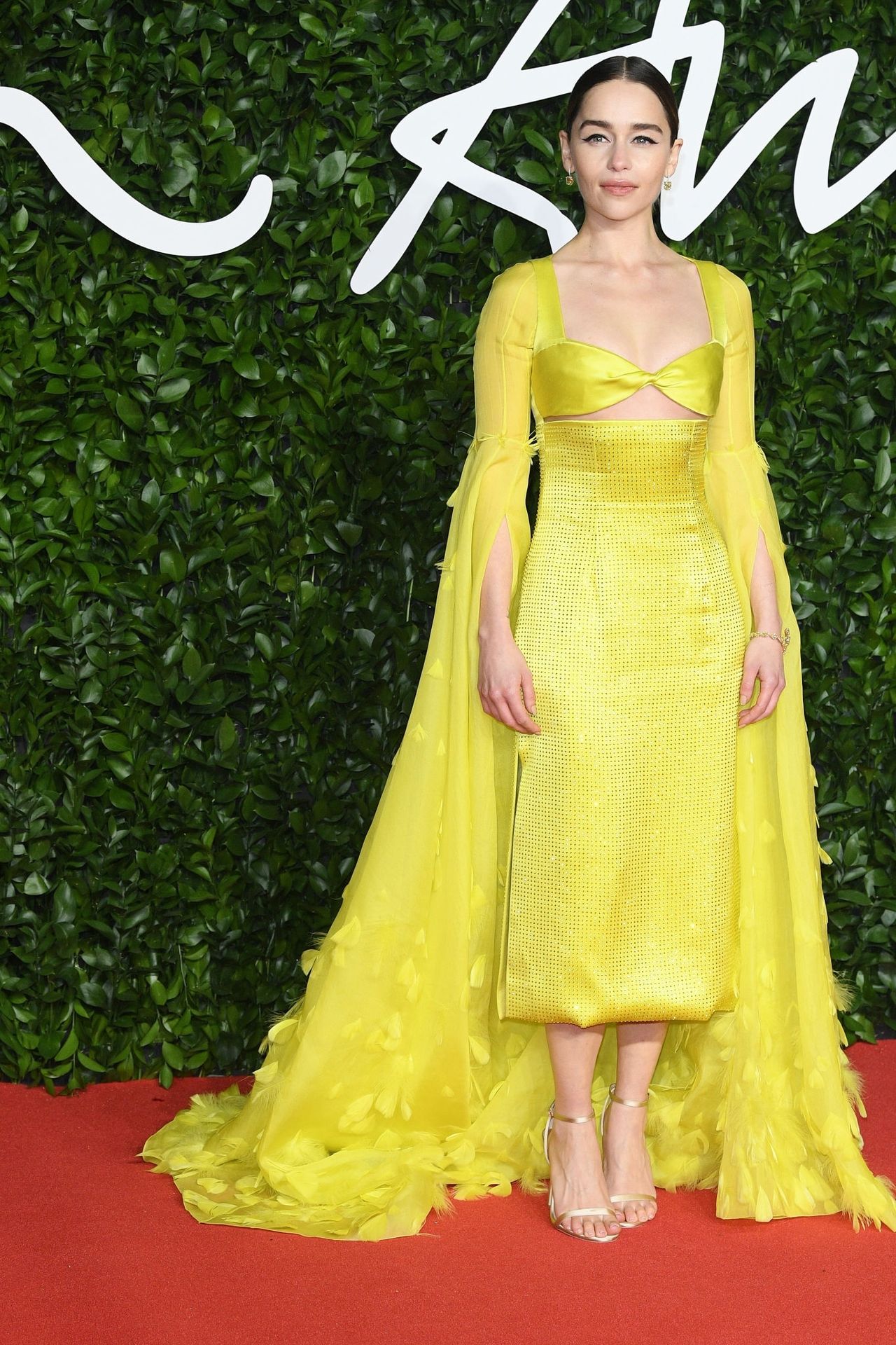 La actriz inglesa Emilia Clarke posa con un vestido amarillo en la alfombra roja a su llegada a The Fashion Awards 2019 en Londres, 12/02/2019.