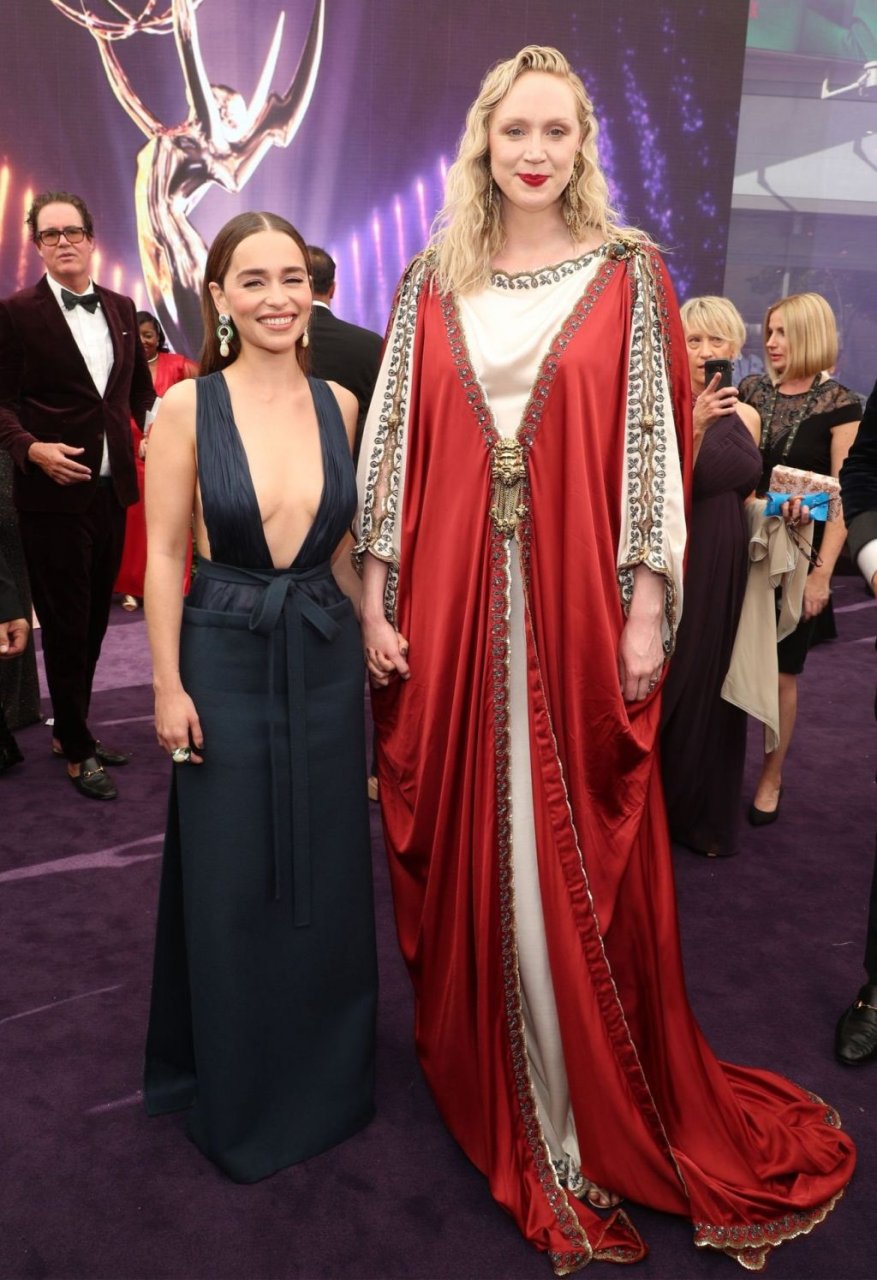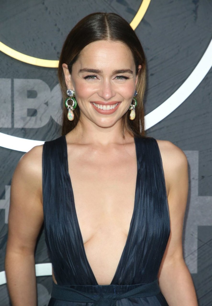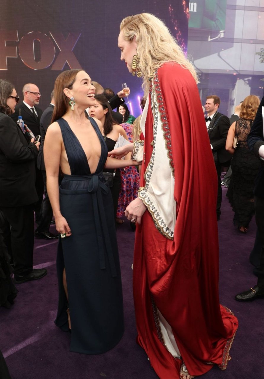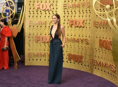 Esta alfombra de los Emmy 2019 es especial para Emilia. La actriz está por última vez en los prestigiosos premios. ¡Un evento histórico necesita un vestido icónico! Emilia apareció con un atuendo provocativo de Valentino Haute Couture, mostrando sus pechos naturales para todos los invitados.