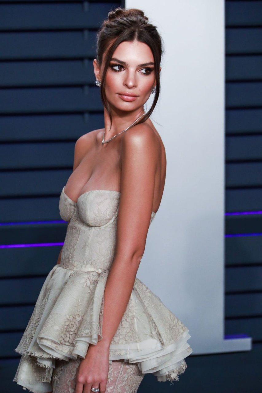 Model/Actriz Emily Ratajkowski apareció con un vestido crema de encaje en la Fiesta de los Oscar Vanity Fair 2019 en Beverly Hills, 24/02/2019.