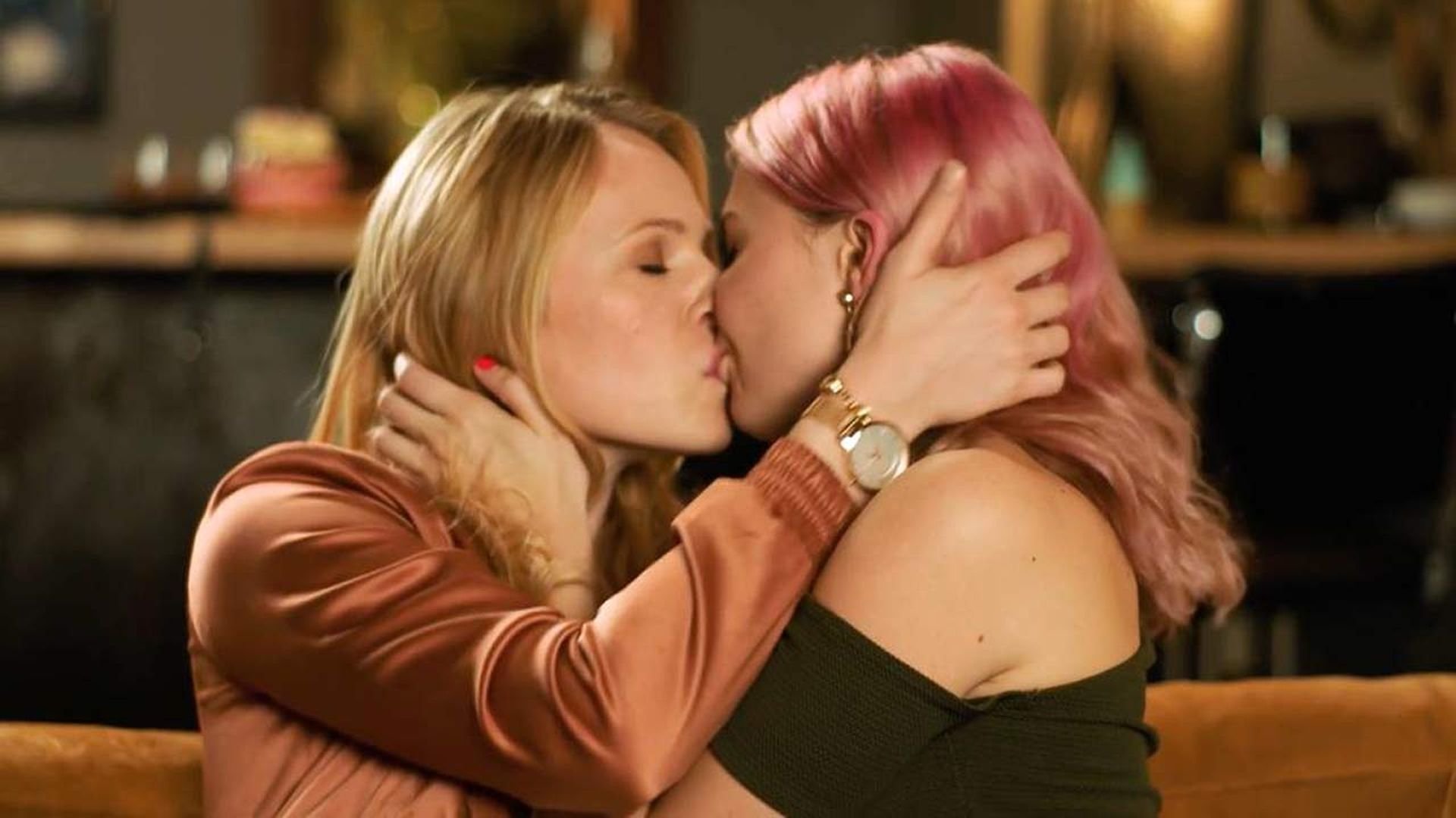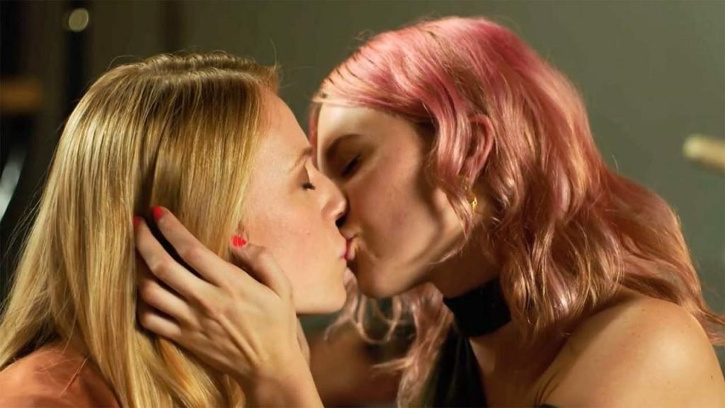 Muchos aficionados prefieren ver rubias o morenas en escenas lésbicas, pero hoy tenemos a la rubia y a la chica de cabello rosa besándose! Mira el beso lésbico de Emma Bell y Paige Elkington en la edición Nudogram de “Relationship Status” (2017) Temporada 2 Episodio 7 (s02e07), donde estas dos chicas están sentadas en la sala con un hombre. Al principio, vemos a la rubia besando al hombre. Después de un rato, las dos mujeres aprovechan la oportunidad y comienzan a besarse frente a este afortunado hombre!