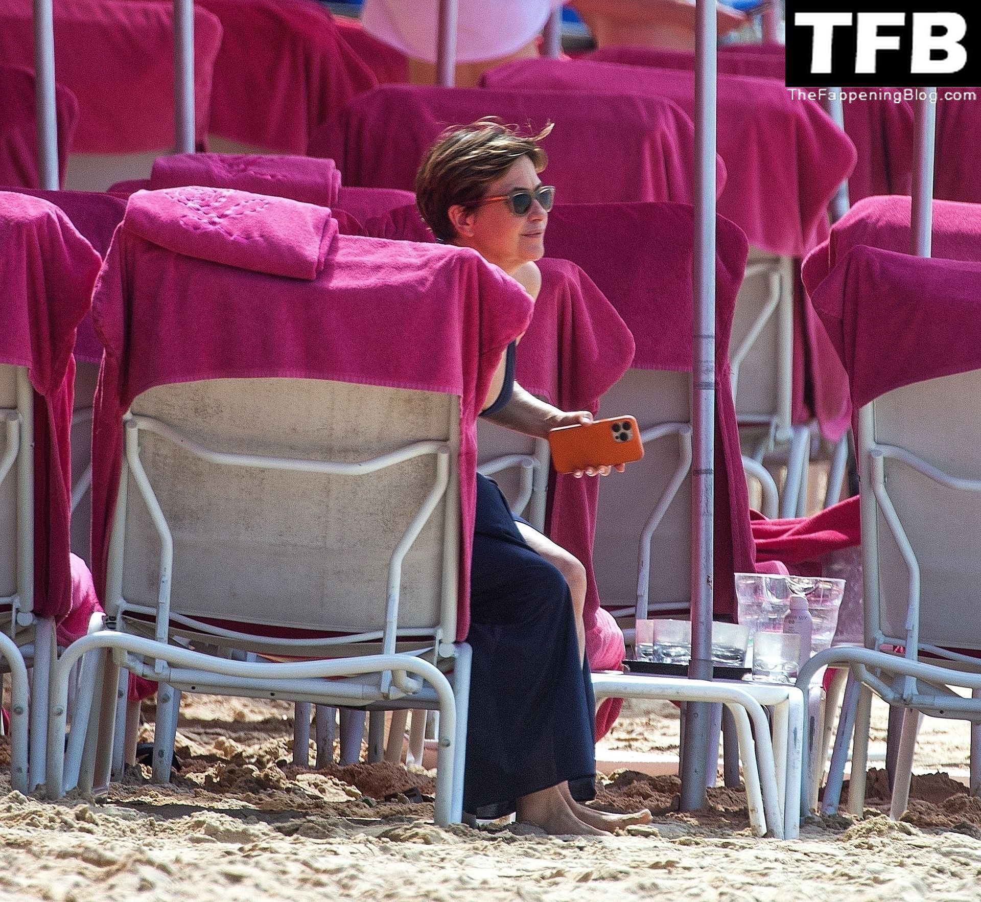 La presentadora de televisión Emma Forbes muestra su sexy físico luciendo su traje de baño negro durante sus vacaciones bañadas por el sol, vista en la playa del Hotel Sandy Lane en Barbados, 22/12/2022.