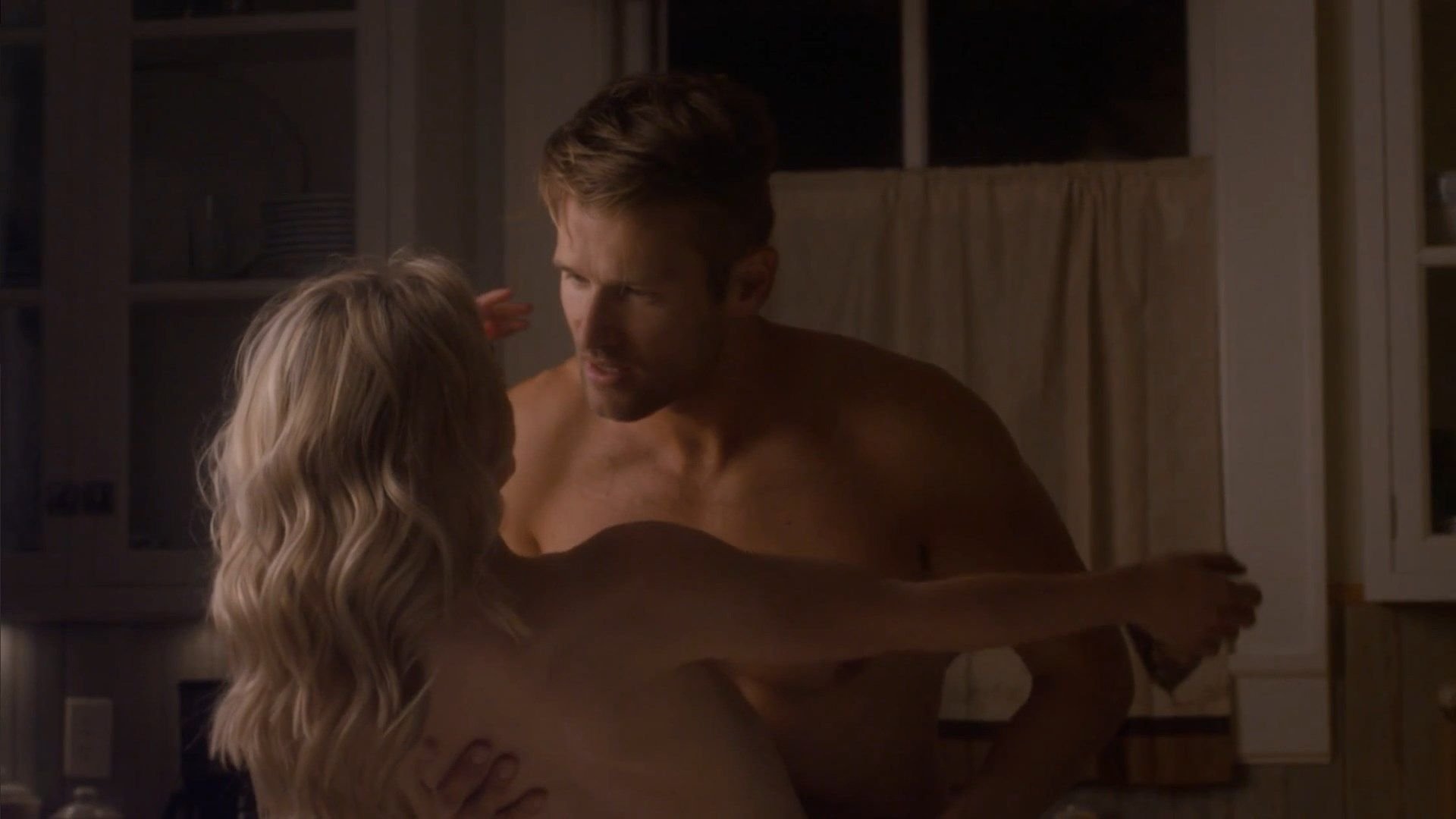 Emma Rigby le da pelea a Devon Ogden cuando vemos una toma de cerca de su trasero en su traje de baño. Ella salpica en el agua, dejando que sus pechos reboten en el traje que nos muestra bastante. Emma tiene una escena de sexo telefónico muy sexy con Johann mientras yace en la cama con las cobijas sobre su pequeño cuerpo. Gime al teléfono y se toca aunque no podemos ver nada. ¡Qué provocación! Esto debe ser por lo que lo llaman el sur sucio. Finalmente, su hombre la desnuda y la folla en la cocina, sirviéndonos deliciosas tomas de su pecho.Dinner is served!