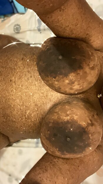 Si miras sus pezones asomándose en la mayoría de las fotos, puedes ver que su pezón derecho está un poco más bajo. Las fotos del baño se ven igual. Al menos a mí me parece así.