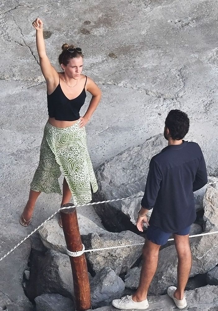 English actress Emma Watson was seen in Positano. She enjoyed the sunshine on her holidays in the picturesque village in Italy. She was out with a friend and sunbathed in her skimpy little outfit. Emma Watson lounged on her sunbed and tried to cool off from the heat. But her ass wanted out. So she showed nude ass while trying to fix the bikini. Also, in several pics, we can see Emma trying to reach something, as she showed whole nude boobs seen from the paparazzi perspective! Well done!