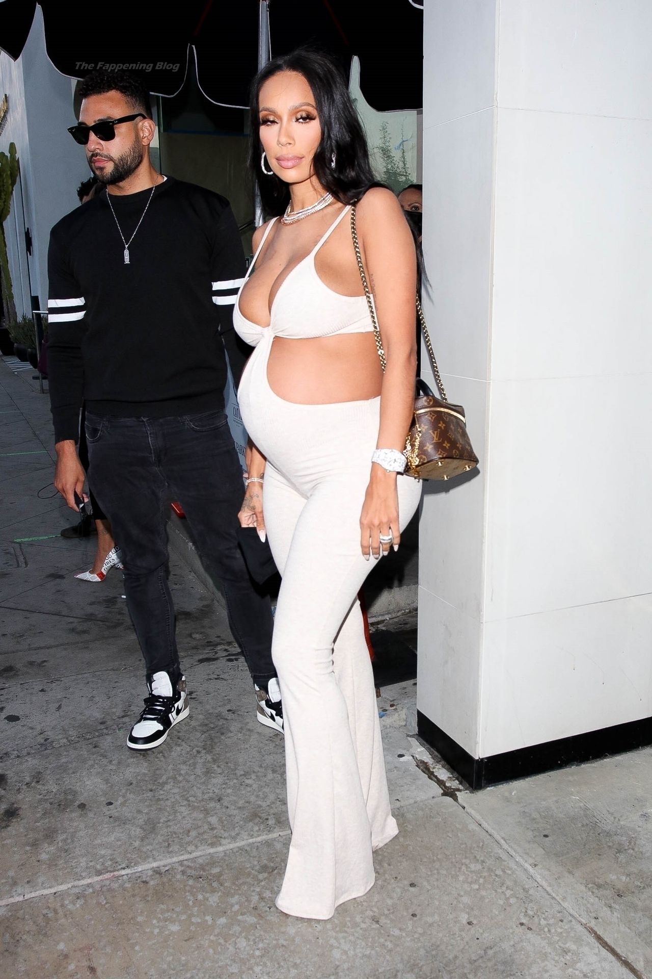 Una Erica Mena muy embarazada se muestra presumiendo su creciente barriga de bebé con un mono blanco revelador mientras llega a Catch LA en West Hollywood, 09/05/2021.