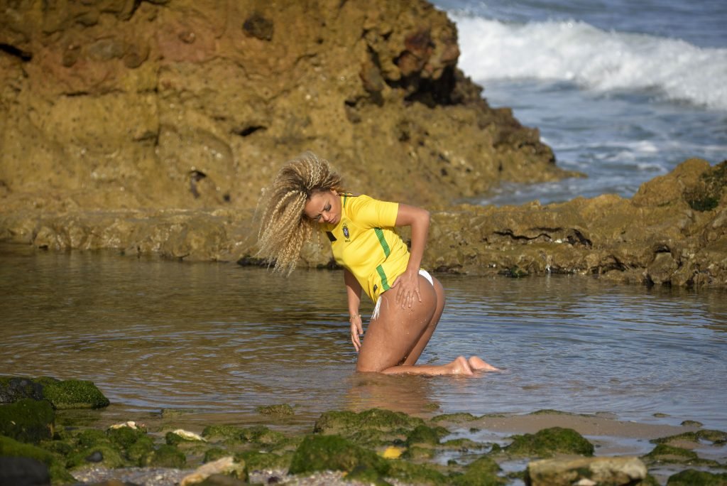 Miss Bumbum Erika Canela fue captada topless en la playa mientras se publica en Portugal la supuesta historia de encuentro con Cristiano Ronaldo, 28/03/2017.