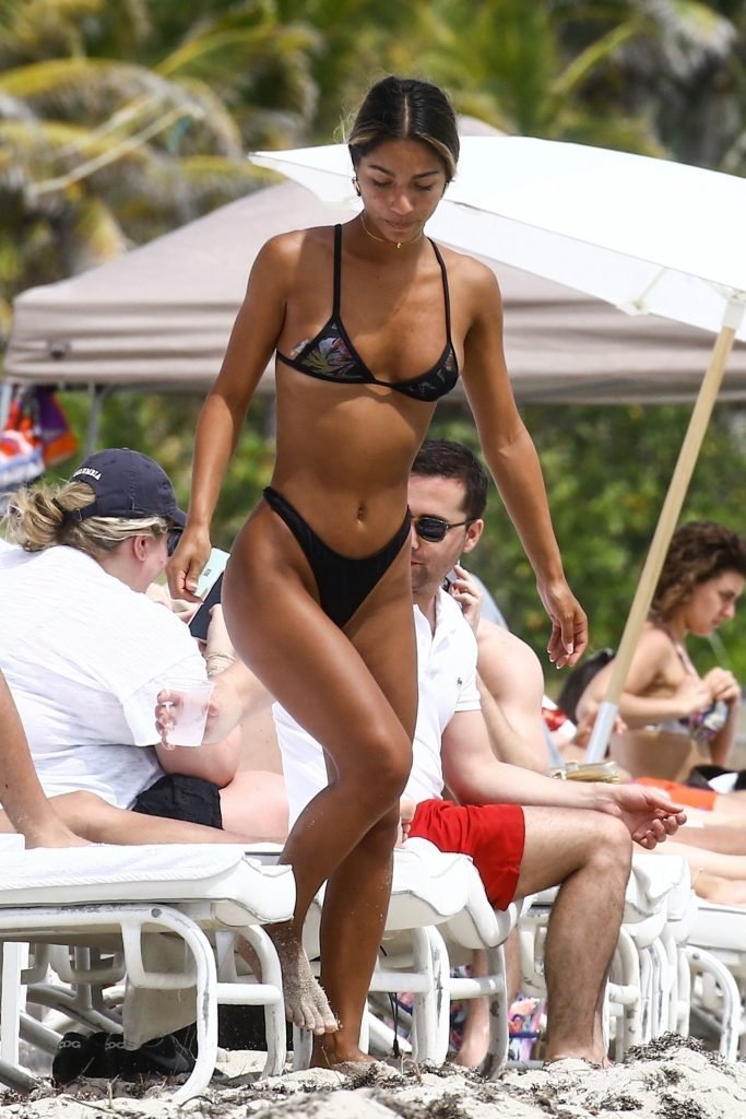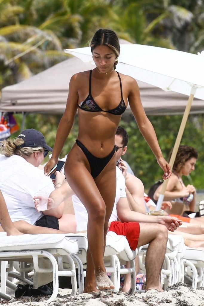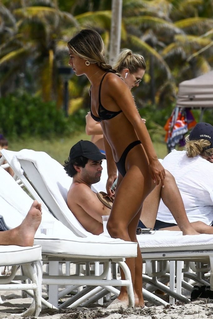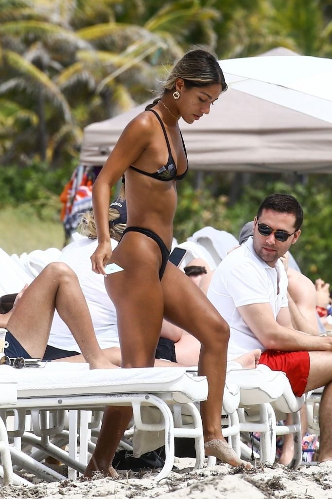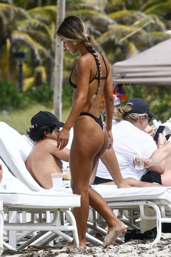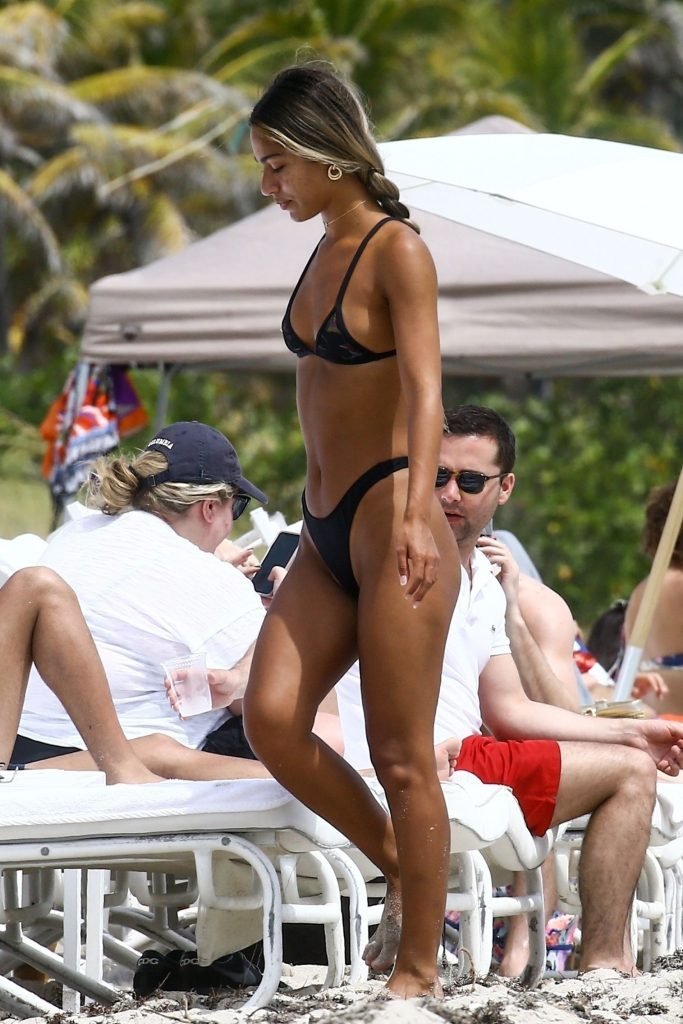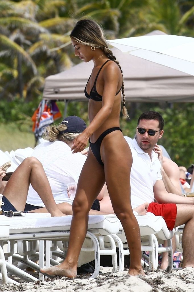 Erika Wheaton muestra su figura tonificada con un bikini mientras disfruta de sus vacaciones junto a la playa en Miami, Florida, 31/03/2018. Erika luce genial con un pequeño bikini negro mientras toma el sol. Erika Wheaton es una modelo colombo-estadounidense. Edad – 20 años.