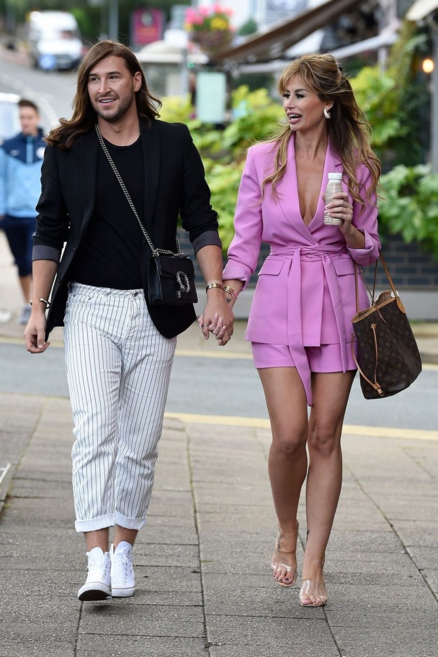 The Real Housewives of Cheshire’s Ester Dee pone una exhibición voluptuosa mientras evita por poco un fallo de vestuario al probarse zapatos en una zapatería en Alderley Edge Cheshire, 09/04/2019.