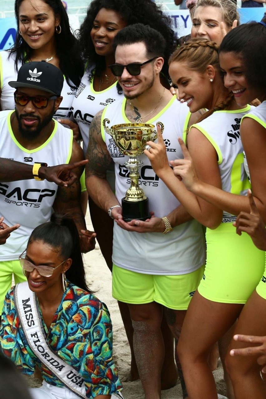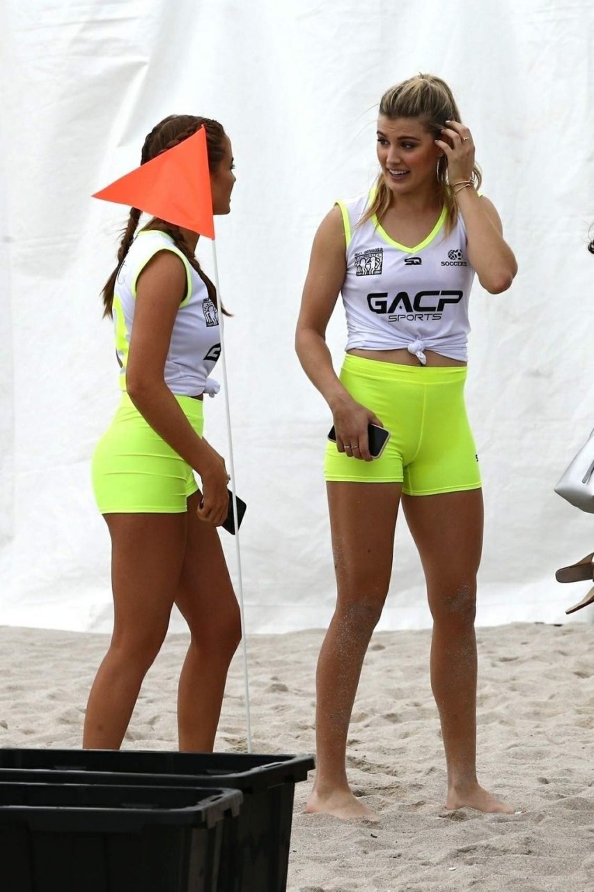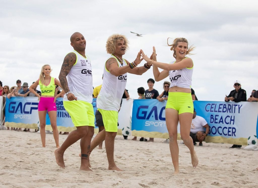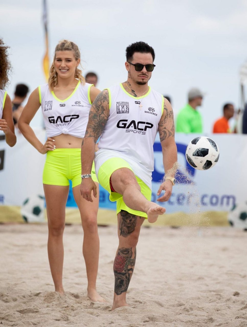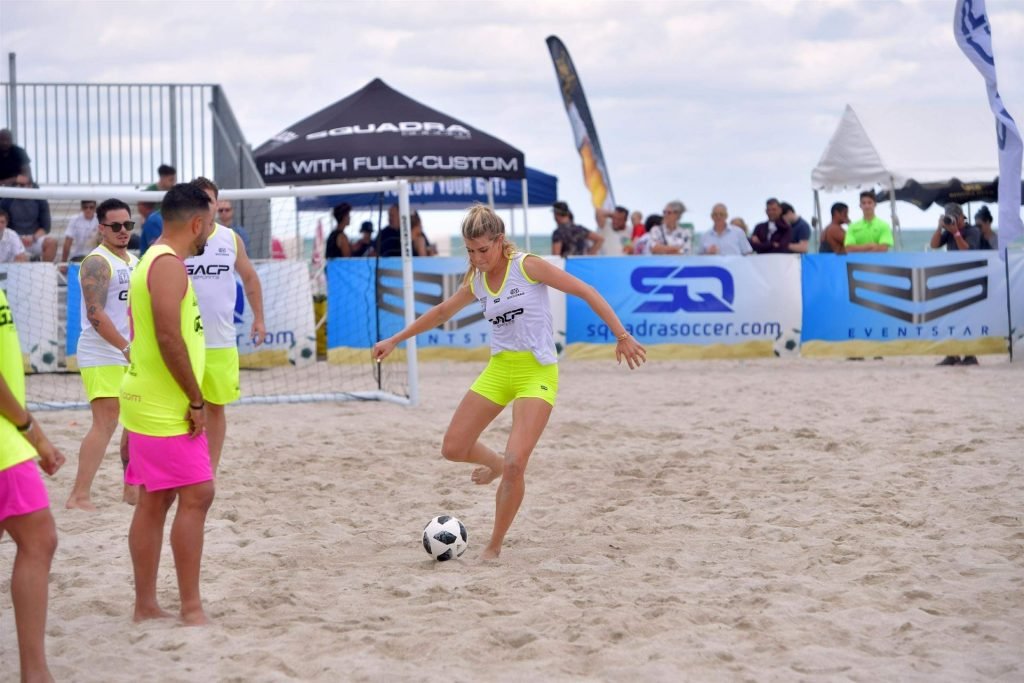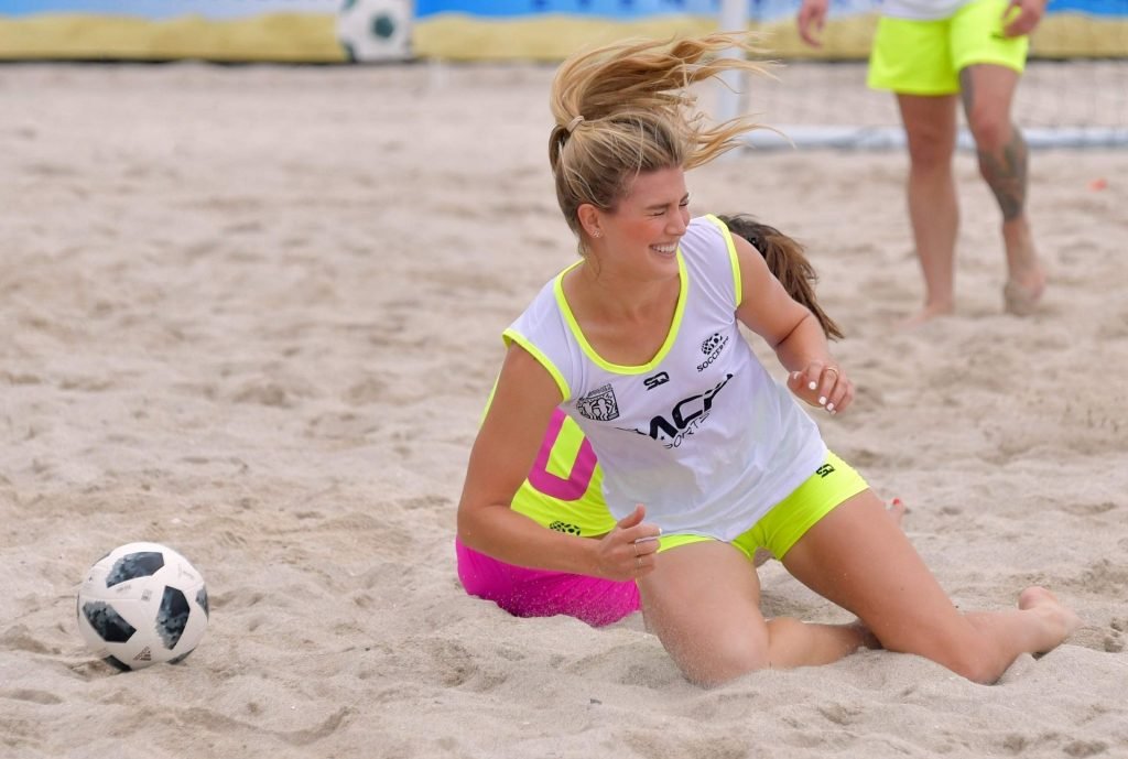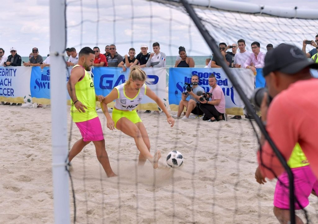 La tenista Eugenie “Genie” Bouchard (24) sorprendió a todos durante el Partido de Fútbol Playa de Celebridades de Sports Illustrated en Miami, 17/11/2018. Ella llevaba una camiseta sin mangas blanca y pantalones cortos neón que mostraban sus pezones y camel toe.