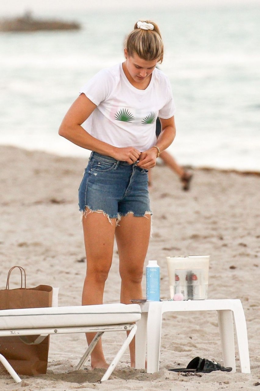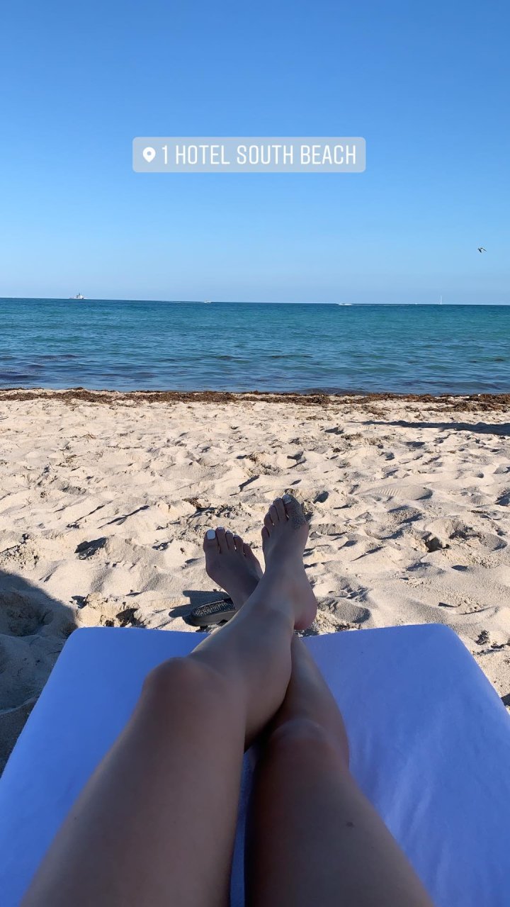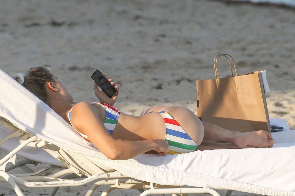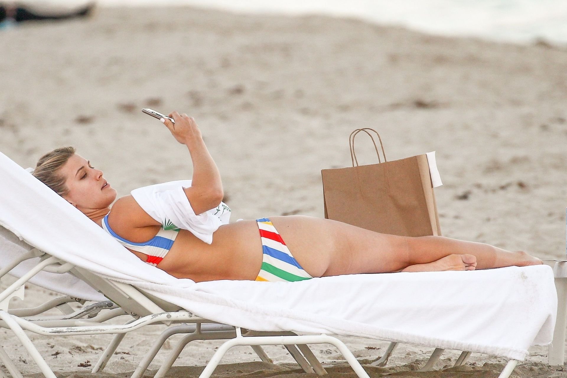 Tennis pro Eugenie Bouchard muestra su figura atlética con un bikini Solid and Striped Elle en Miami Beach. Miami, 02/03/2019.
