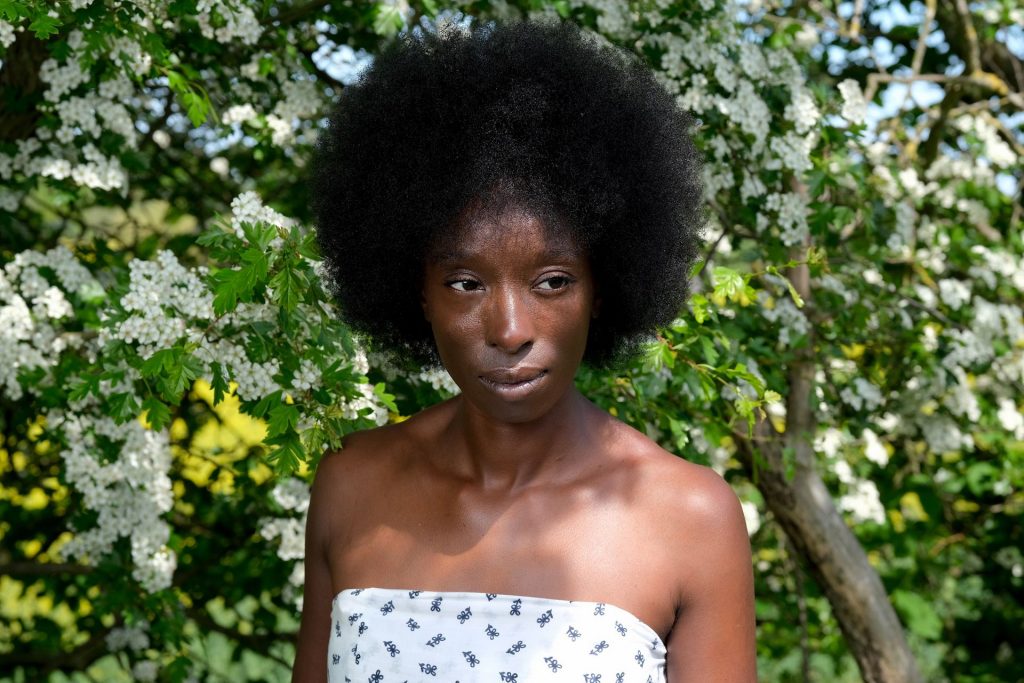 Modelo escocesa, presentadora de televisión y DJ Eunice Olumide (32) posa en una nueva sesión de fotos en Edimburgo, 20/05/2020. Esta hermosa negra sexy tiene un rostro muy inusual.