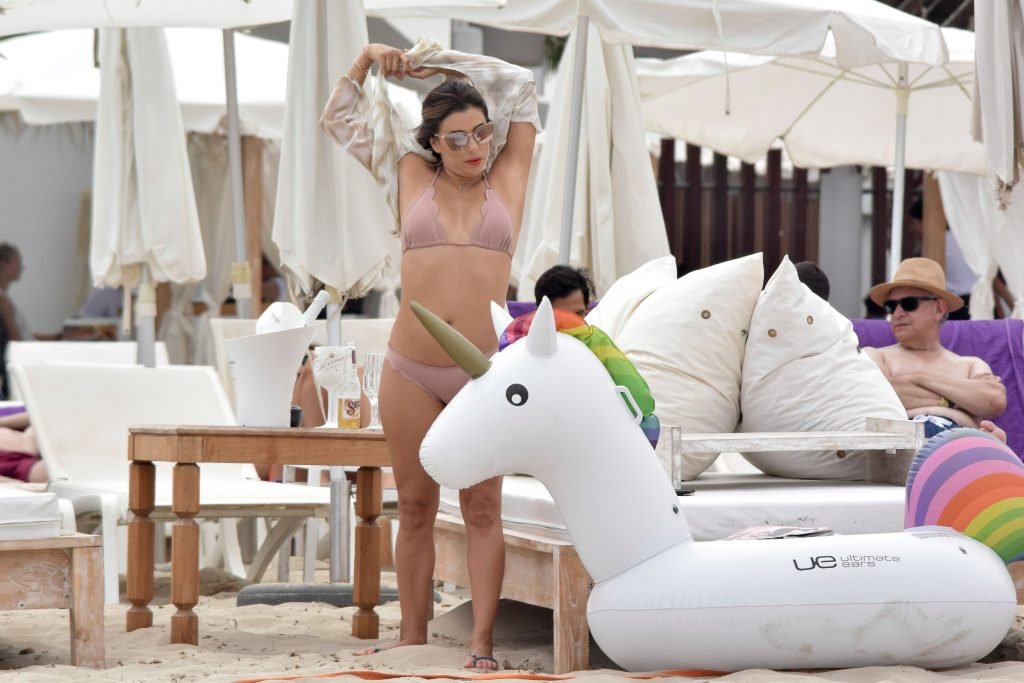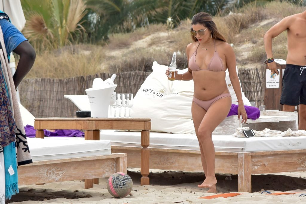 Eva Longoria, vestida con bikini, bebe una cerveza y juega al fútbol mientras continúa sus vacaciones en España en Ibiza, 20/07/2017. Eva Longoria es una actriz estadounidense (Overboard (post-producción) – 2018). Edad – 42.