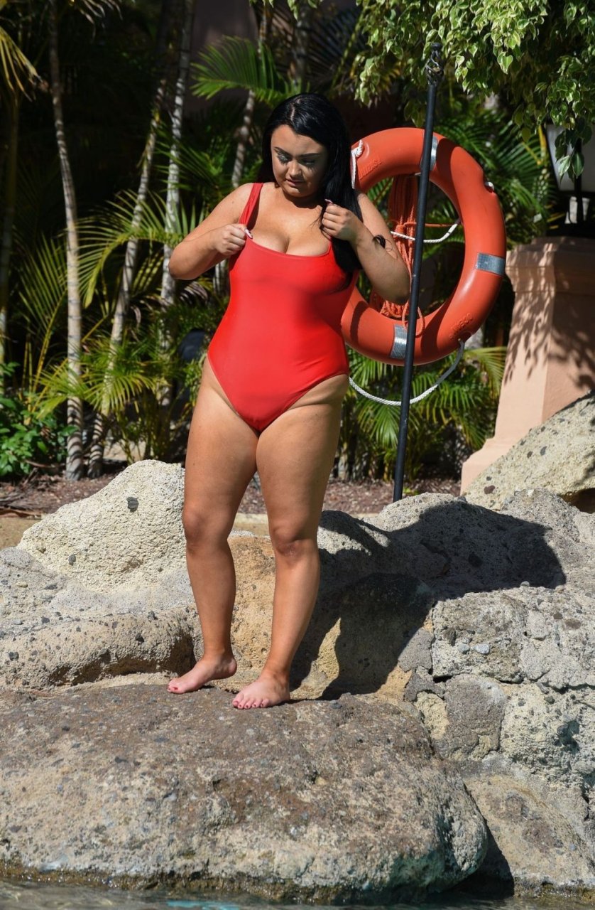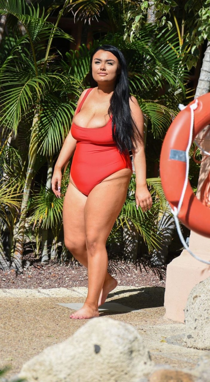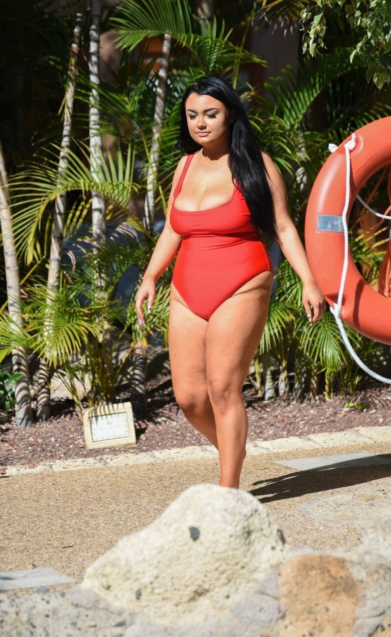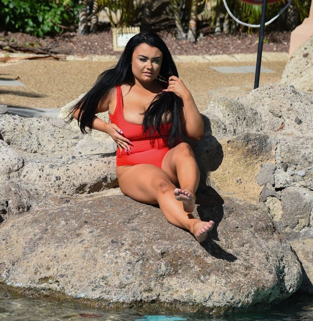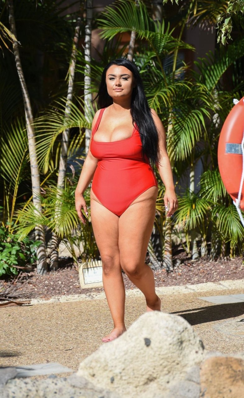 “Geordie Shore” estrella, la Princesa Plus Size Faith Mullen se ve de vacaciones en Lanzarote, 03/06/2019. La estrella de reality se muestra desbordando de su traje de baño rojo mientras se relaja alrededor de la piscina de su hotel.