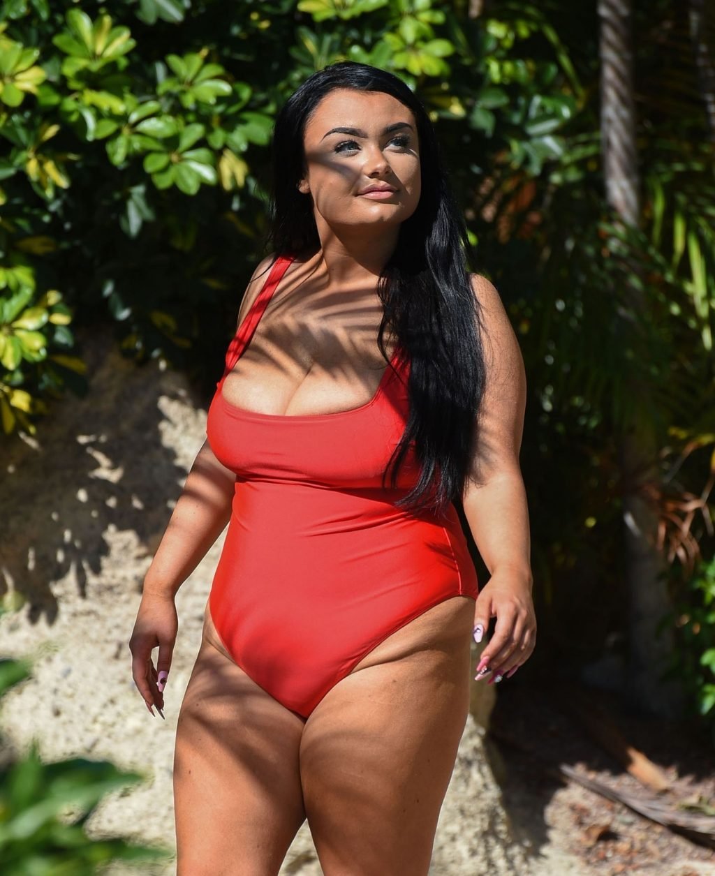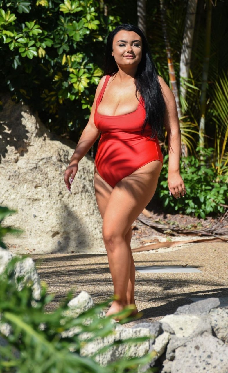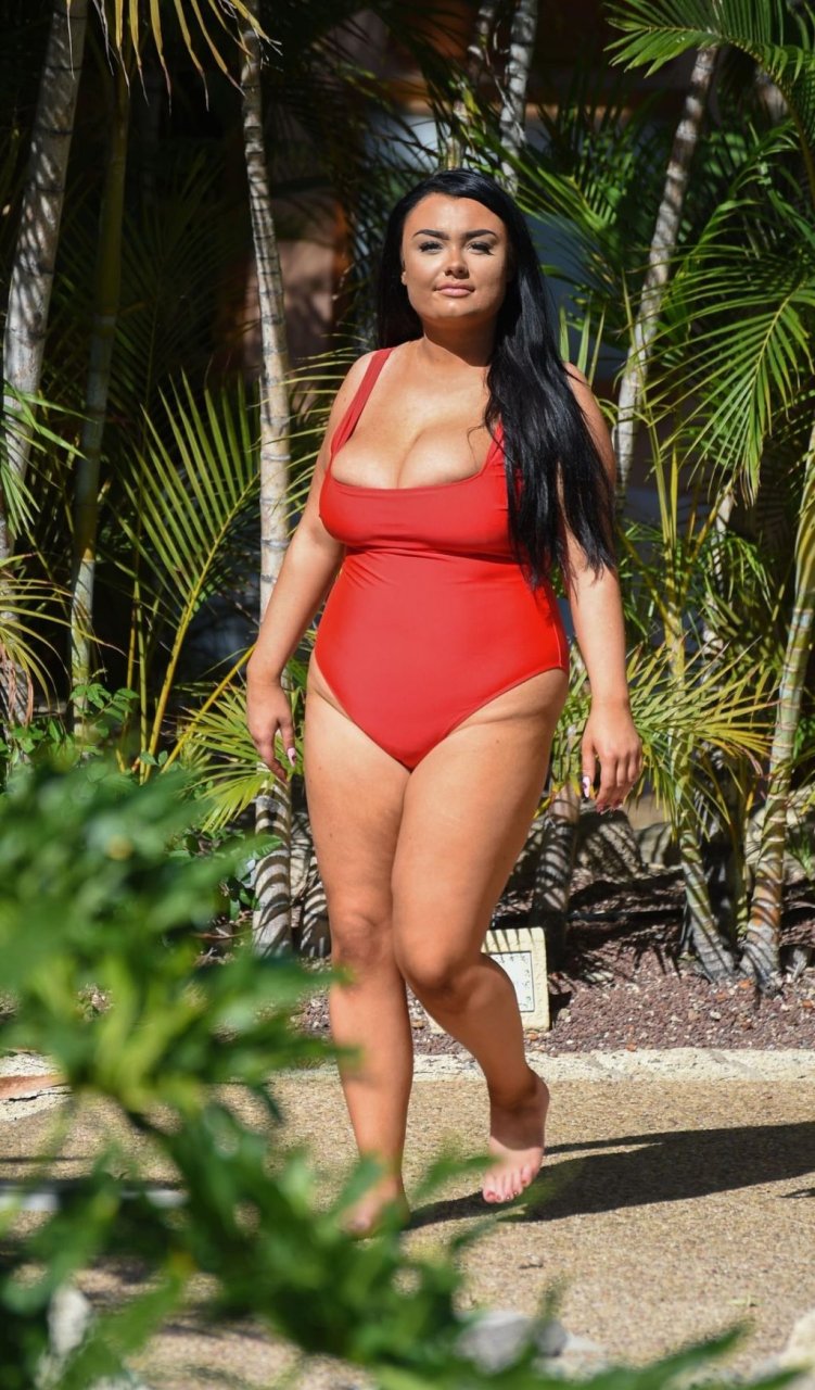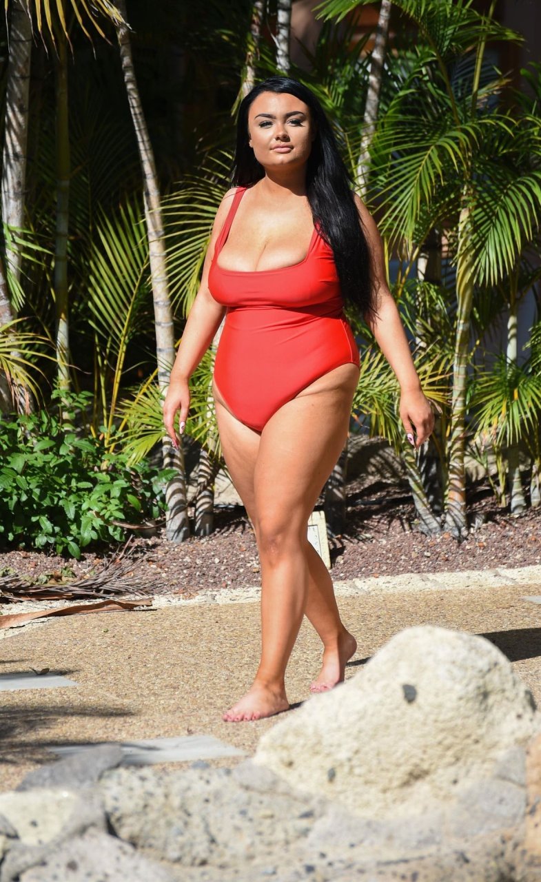 “Geordie Shore” estrella, la Princesa Plus Size Faith Mullen se ve de vacaciones en Lanzarote, 03/06/2019. La estrella de reality se muestra desbordando de su traje de baño rojo mientras se relaja alrededor de la piscina de su hotel.
