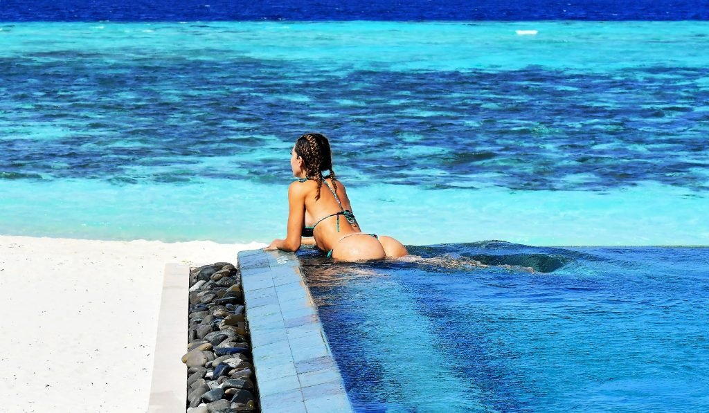Farrah Abraham se dio un baño en la piscina infinita del Ayada Resort, mostrando su cuerpo en bikini mientras vacacionaba en las Maldivas, 15/11/2018. La estrella de 27 años de “Teen Mom” y reality TV se escapó rápidamente después de su desastroso combate de boxeo.