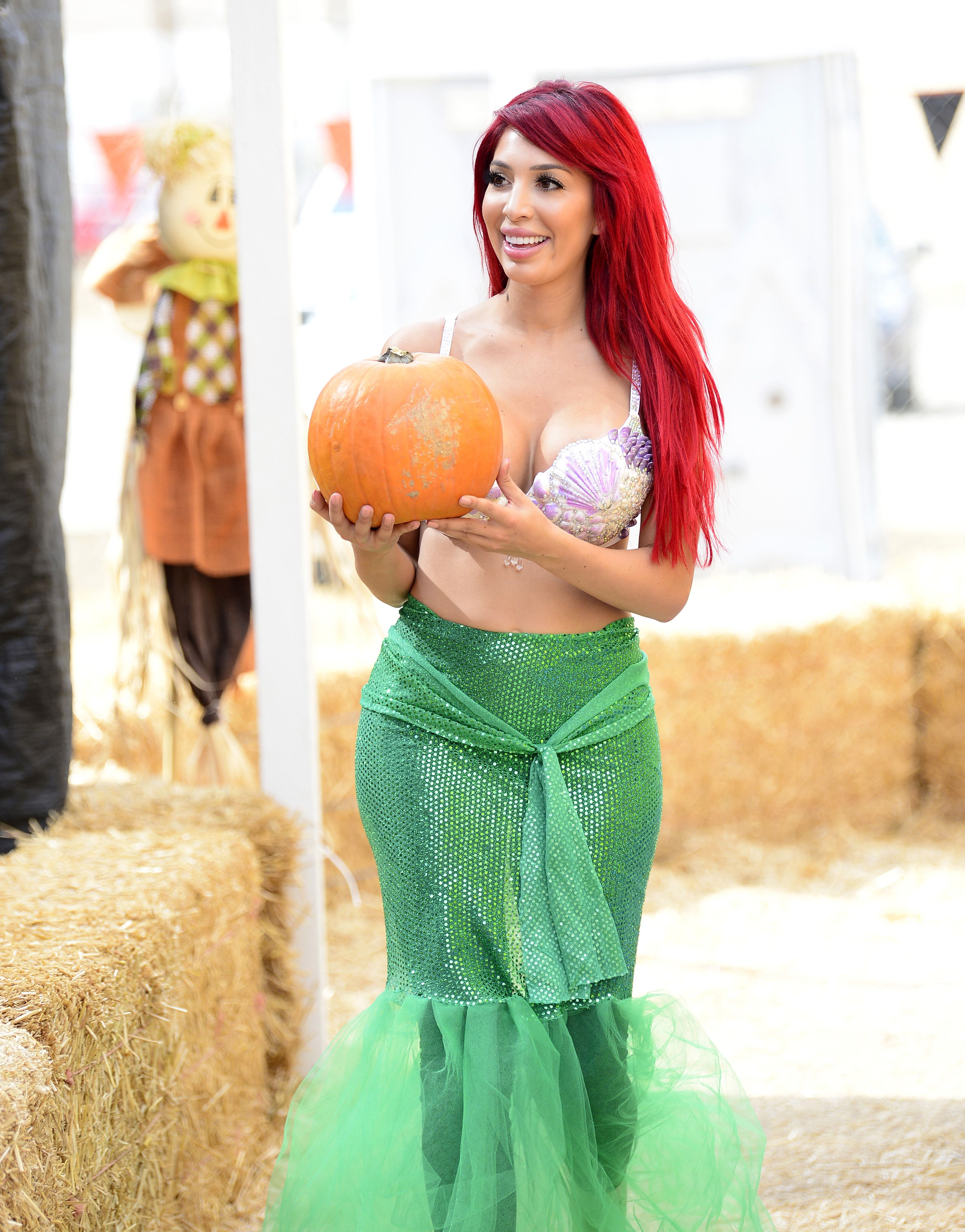 Farrah Abraham luce un atrevido disfraz de sirena para Halloween en un campo de calabazas en Los Ángeles, 27/10/2017. Farrah Abraham es una estrella estadounidense de reality TV, modelo y actriz adulta. Edad – 26 años (31 de mayo de 1991).